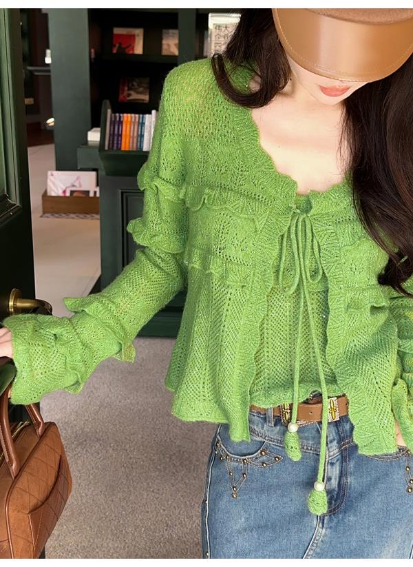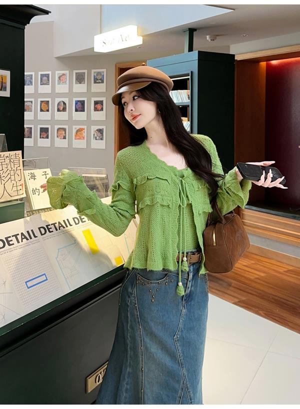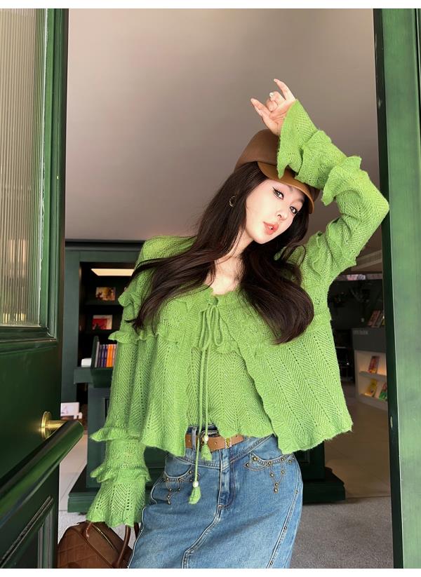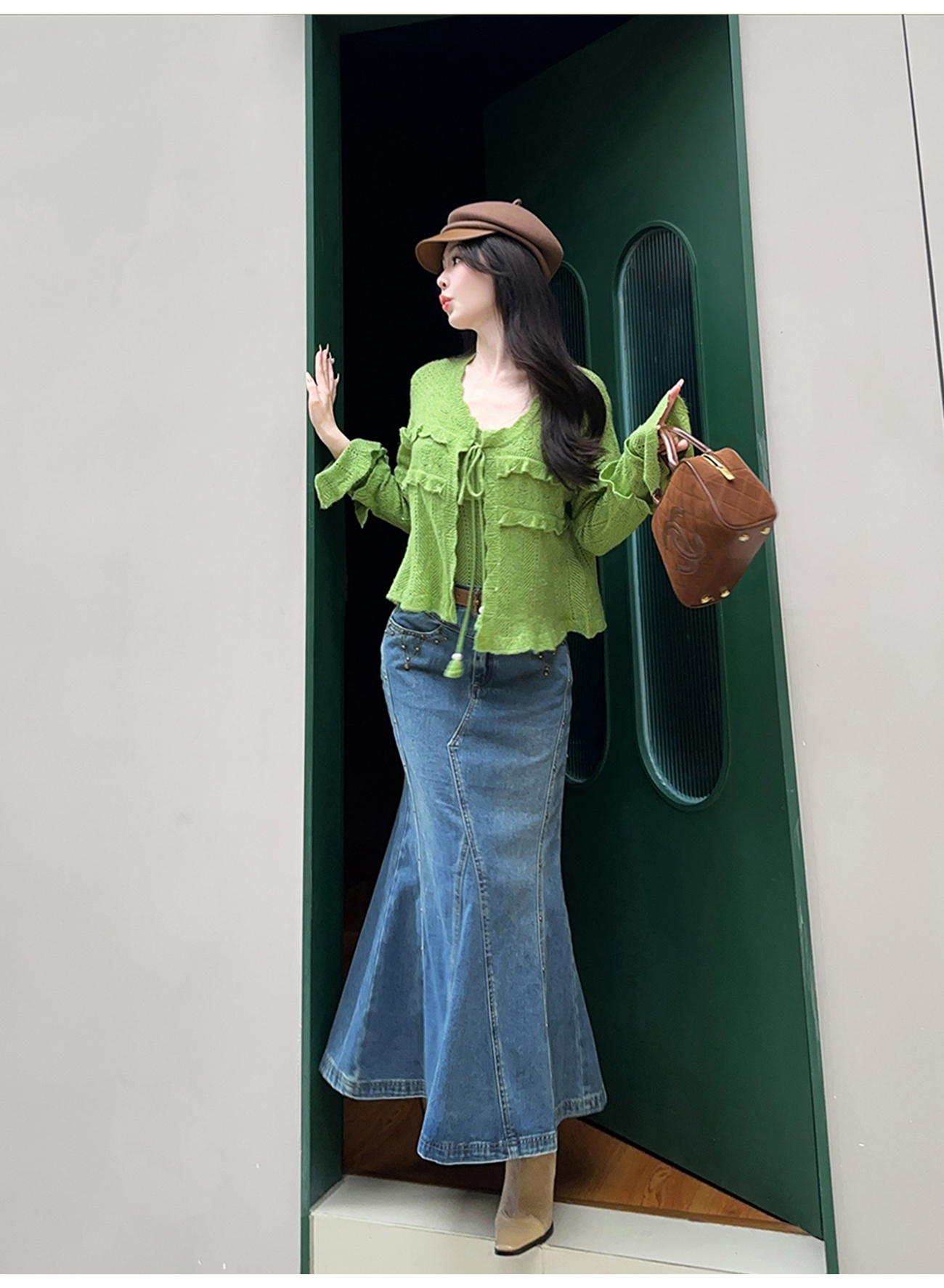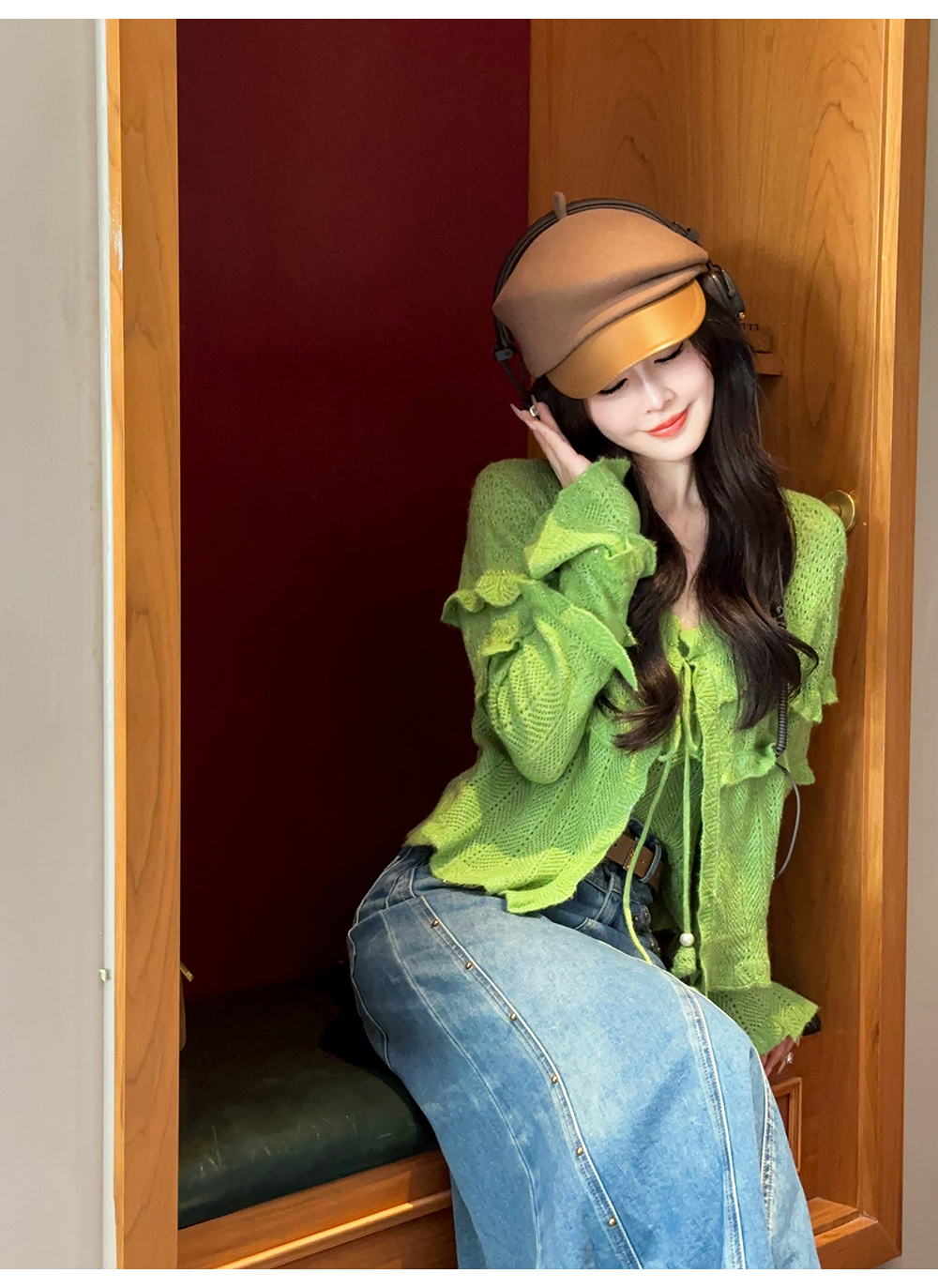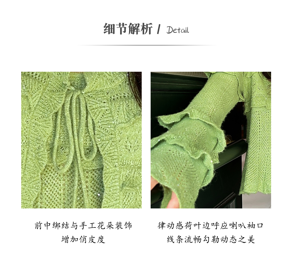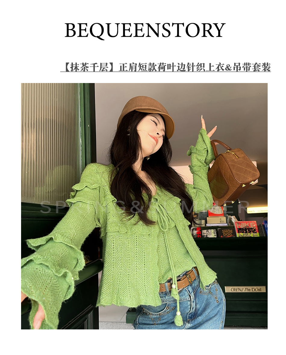 【年终福利,不退不换】 【抹茶千层】设计感荷叶边针织正肩短款上衣&吊带套装