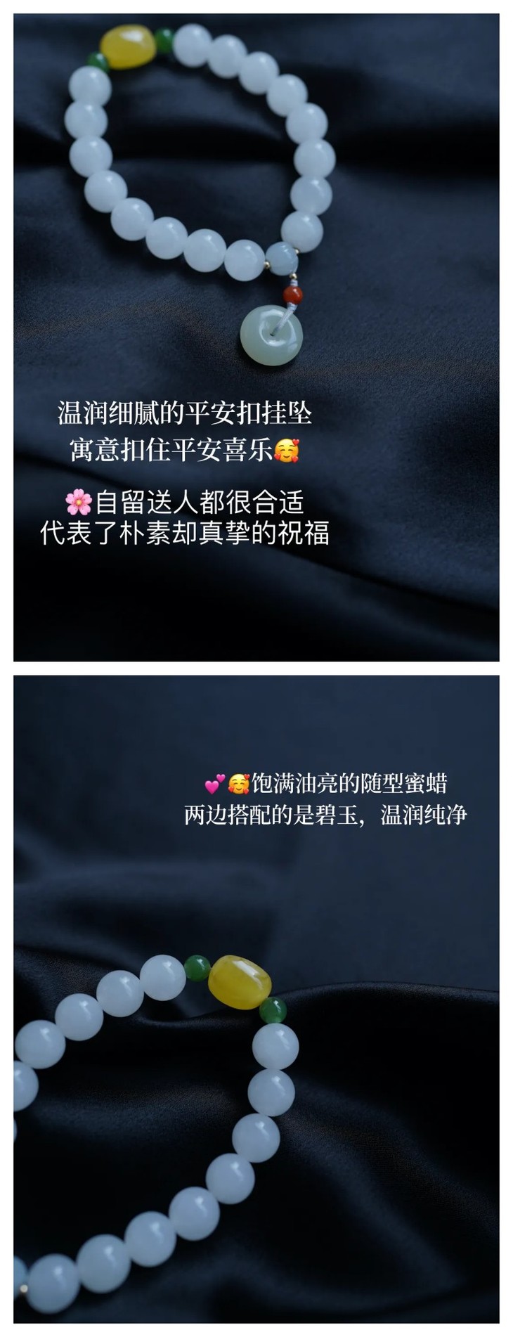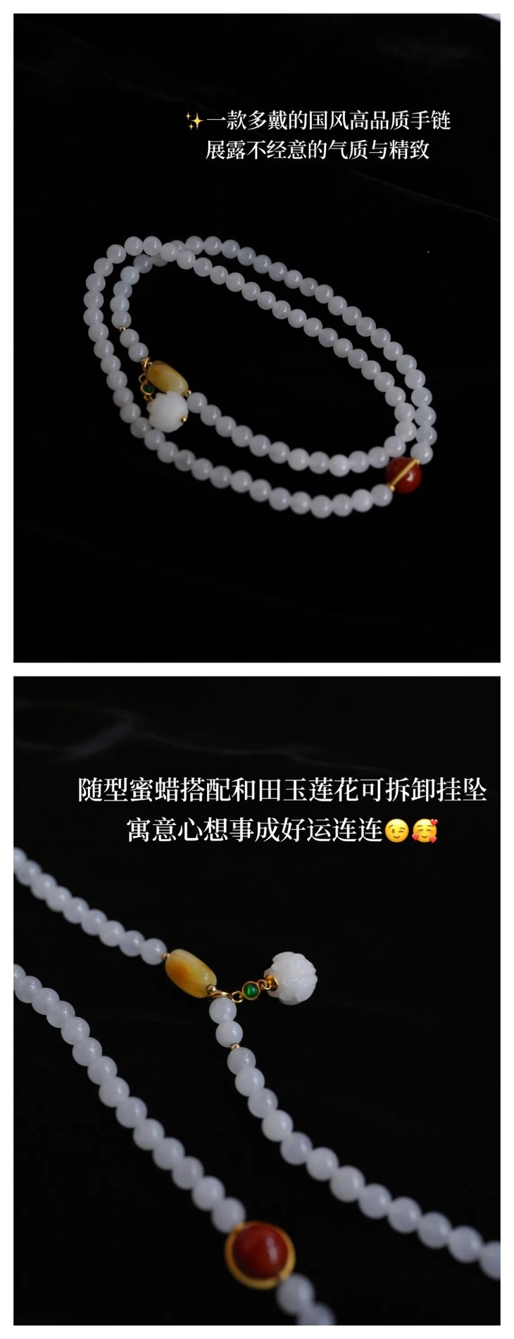 新款的项链和手链💕我们同事看到直呼好美!简约高级的配色设计,和田白玉本身的通透润泽,真的很美!😍