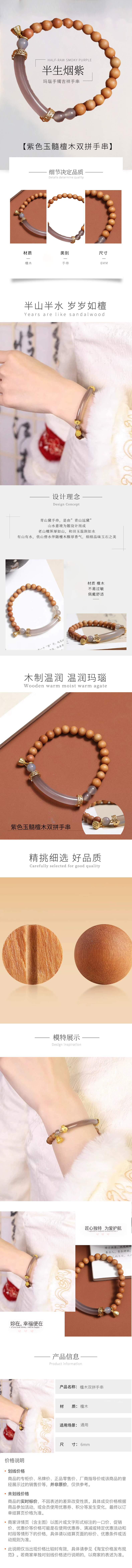 半生烟紫。奶香檀小木双拼单圈手串 新中式国风时尚