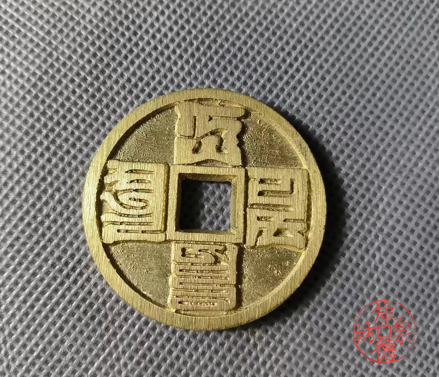 古法翻砂铸造,非遗传承。限量制作。 纯铜古法母钱翻砂铸造而成,容易上包浆。可用于文房镇纸、茶宠、杯子托、文玩垫、手把件…… 直径约41毫米,厚约2.7毫米,重约18.8克(手工作品有少许误差,请知晓)。 所用的原材料采用纯铜,遵循古法、严格按照古代官铸配比;矩德泉坊手作铜币所使用的母版,采用古代真母钱直接复刻,或利用钱币拓片,纯手工雕刻母版,按照古代翻砂工艺制作,铸造后的每一枚钱币,采用手工打磨,修刀所用照片无任何优化、美图。手作铜币严格遵循古代翻砂铸造、打磨工艺进行复刻,不是现代量产的冲压工艺,所以很难做到每一枚的表面痕迹保持一致。 为了尽量还原古代钱币的文字神韵与时代铸造特征,每一枚都进行手工修刀、打磨。会有打磨痕迹、刻刀痕迹,铸造气孔或者微小沙眼,这正是手工与机器制作的区别,并非瑕疵。
