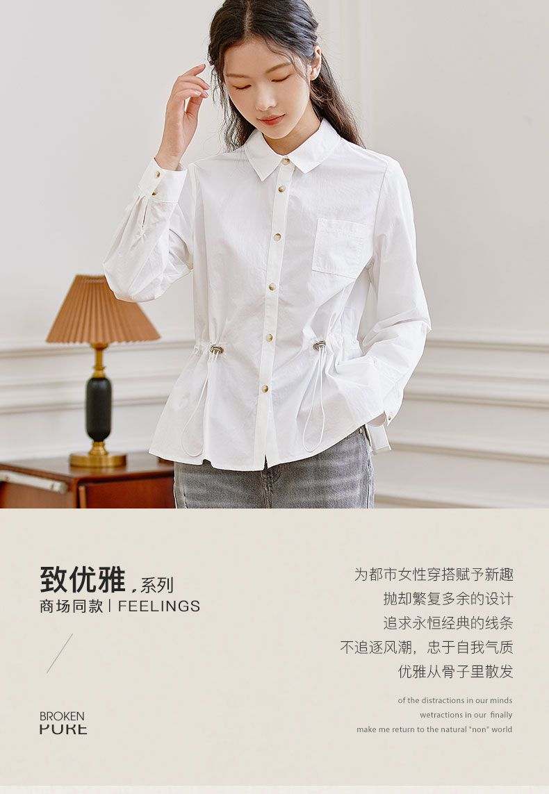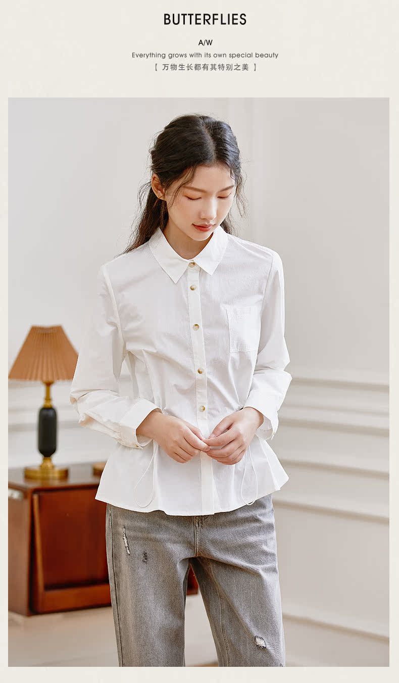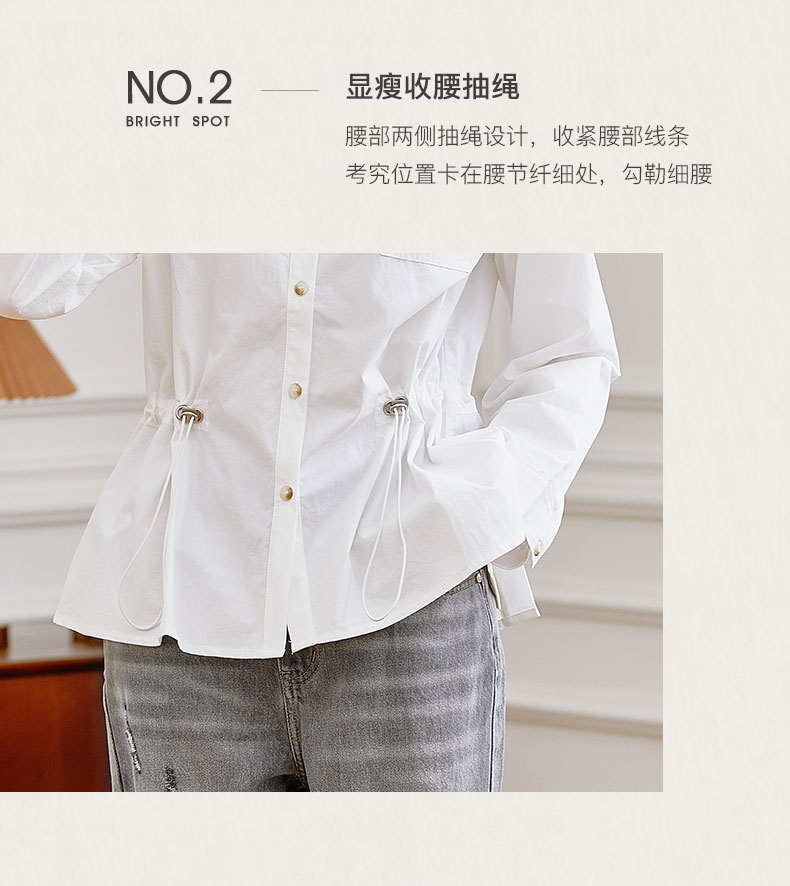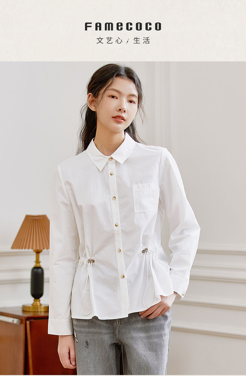 Famecoco范可儿时尚通勤白衬衫设计感收腰显瘦短款上衣DAB6BA007