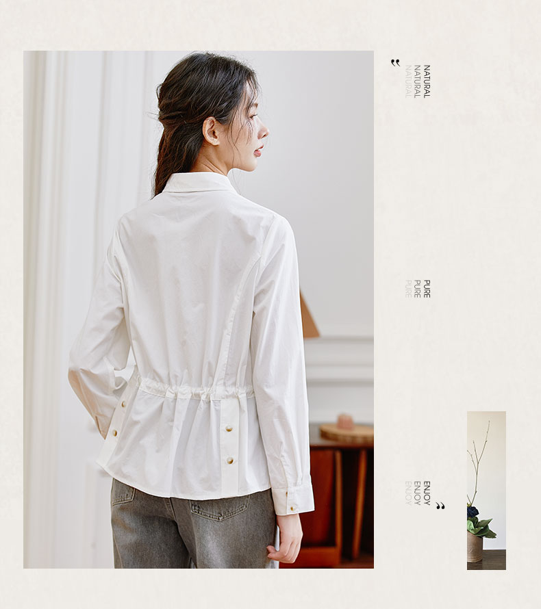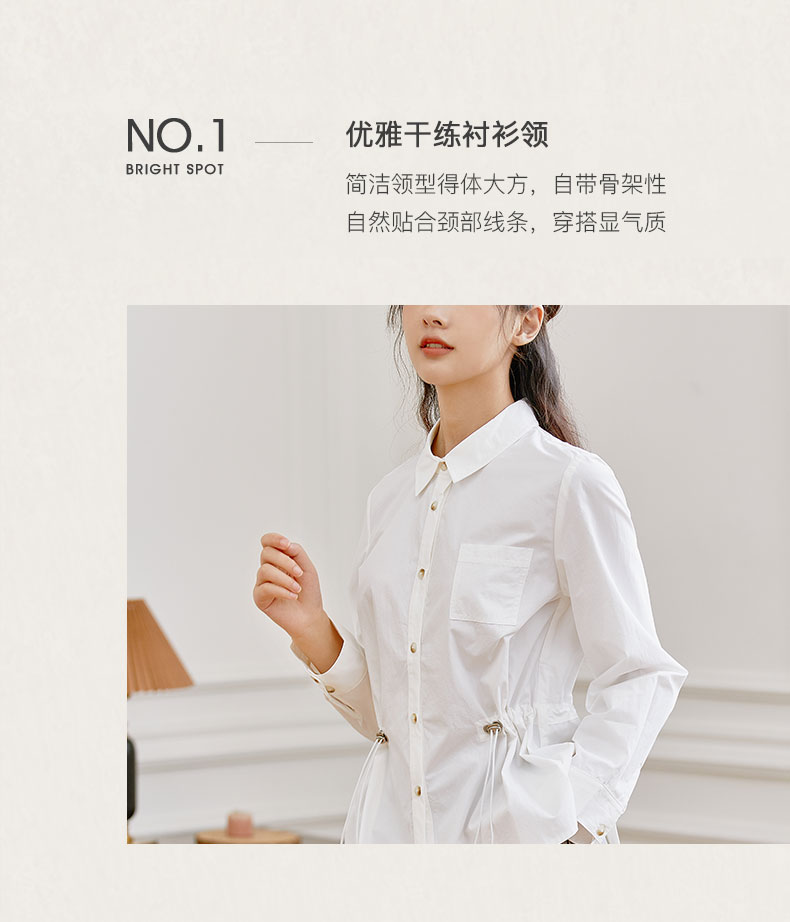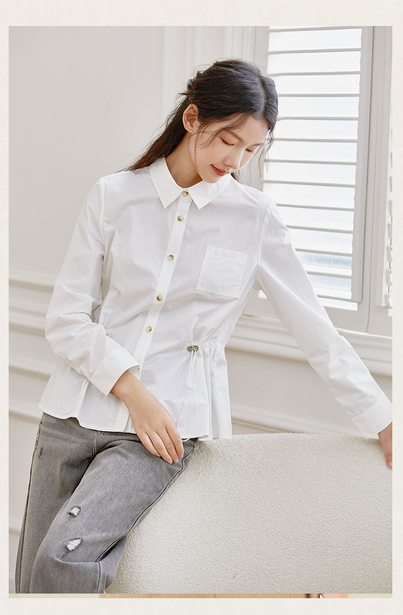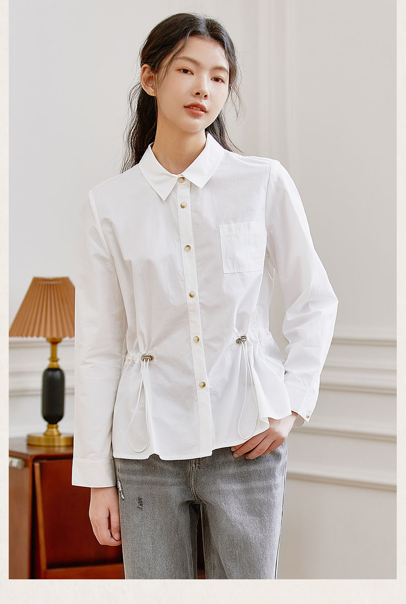 Famecoco范可儿时尚通勤白衬衫设计感收腰显瘦短款上衣DAB6BA007