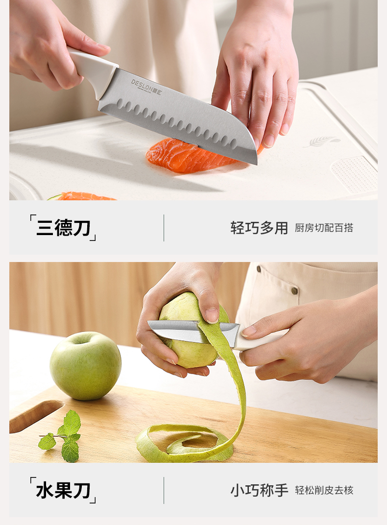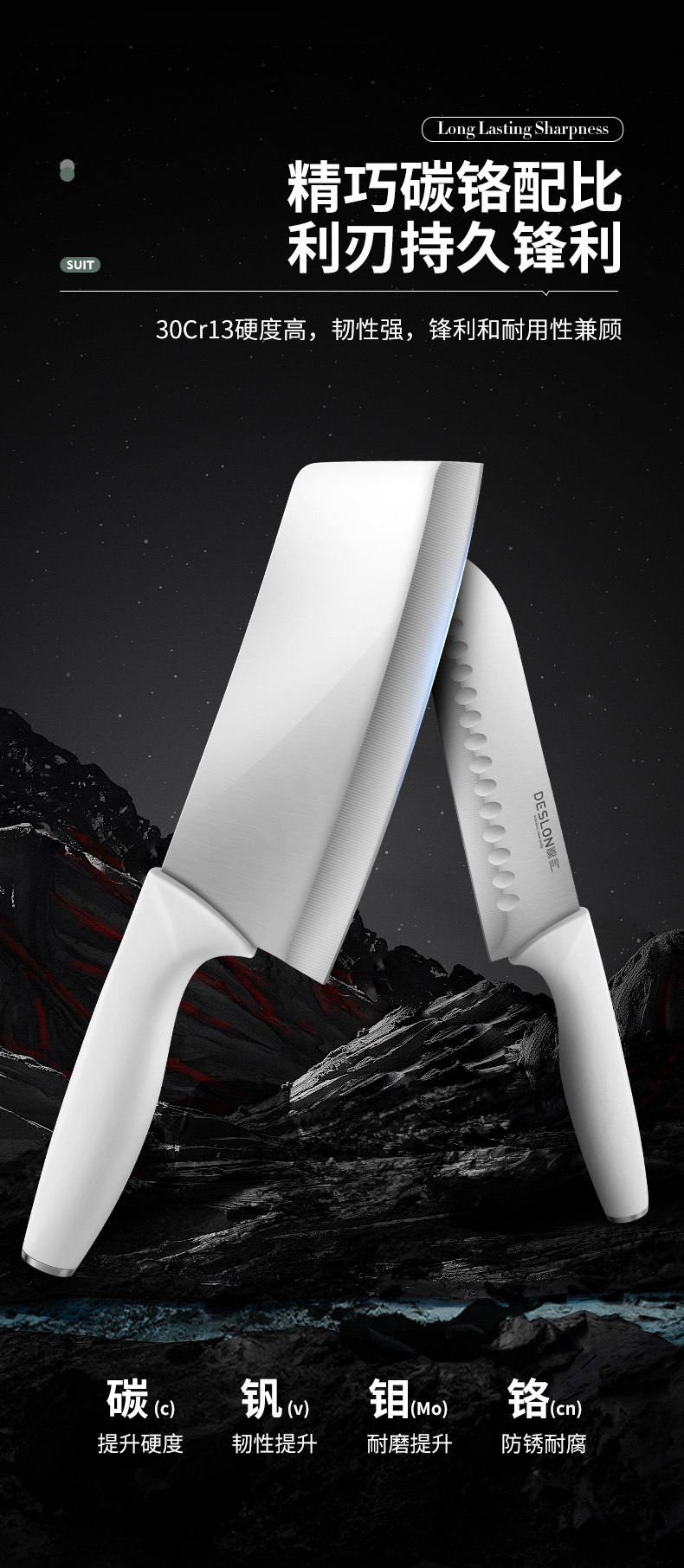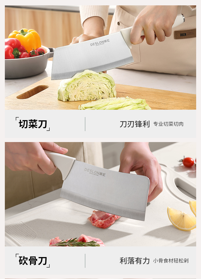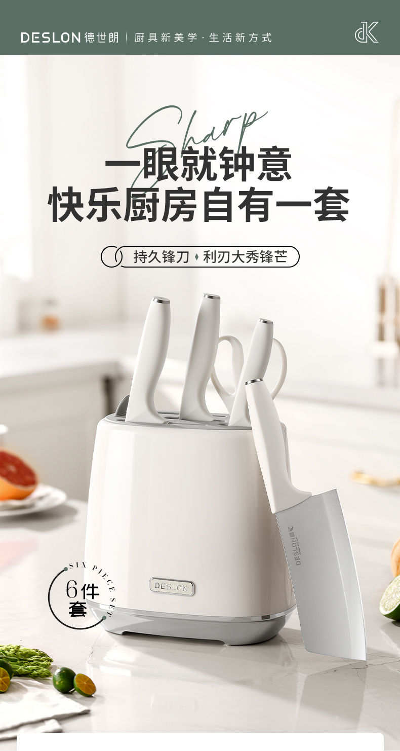 【DESLON 德世朗刀具超值6件套 】 一套即可满足切、划、斩、剁、剪,专刀专用,生熟分切 不串味