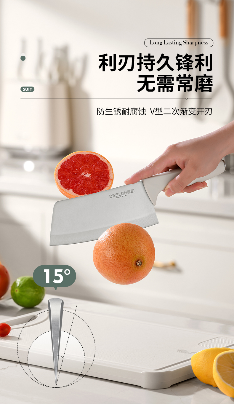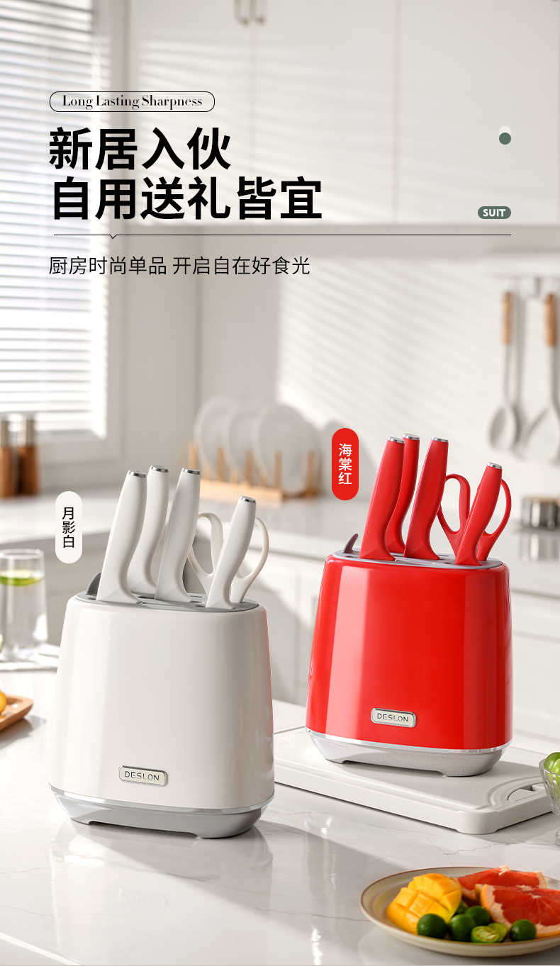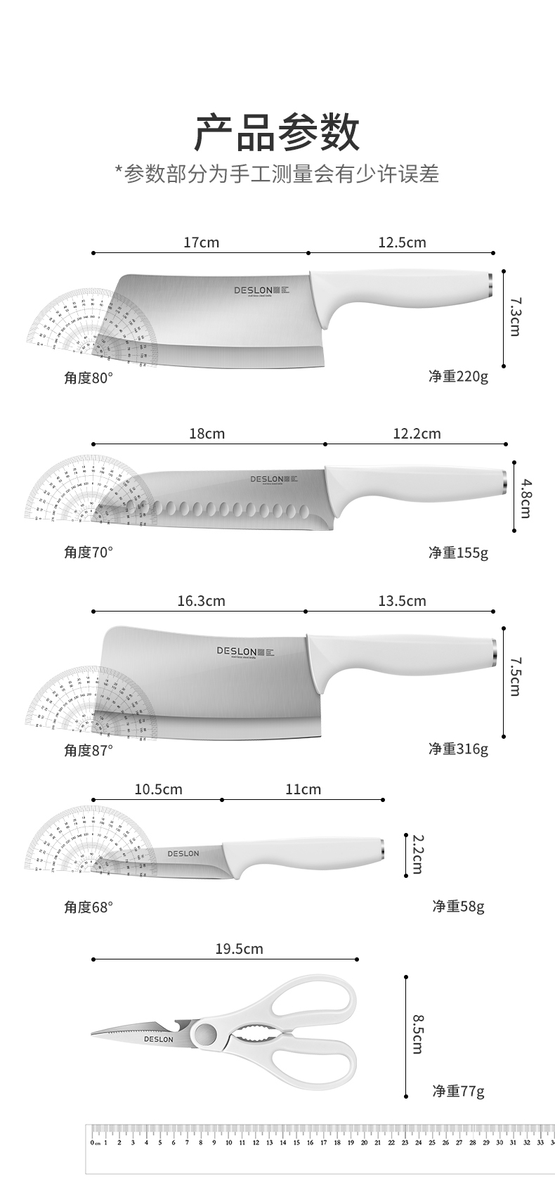 【DESLON 德世朗刀具超值6件套 】 一套即可满足切、划、斩、剁、剪,专刀专用,生熟分切 不串味