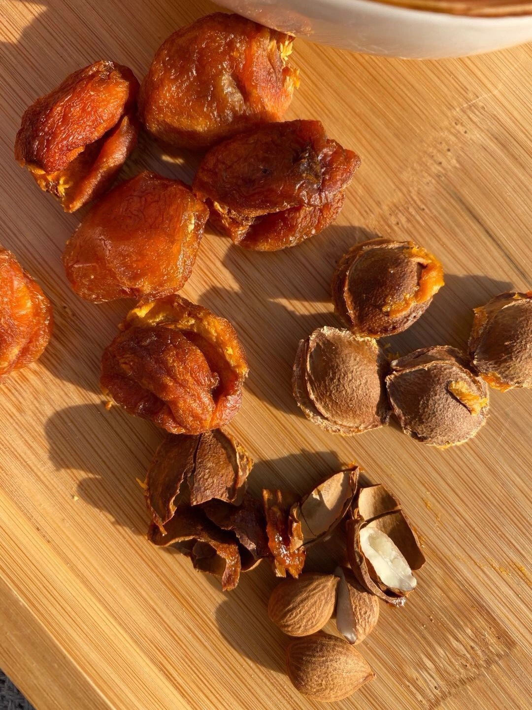 剥出来一颗新鲜的杏仁,一嚼,满口留香~
