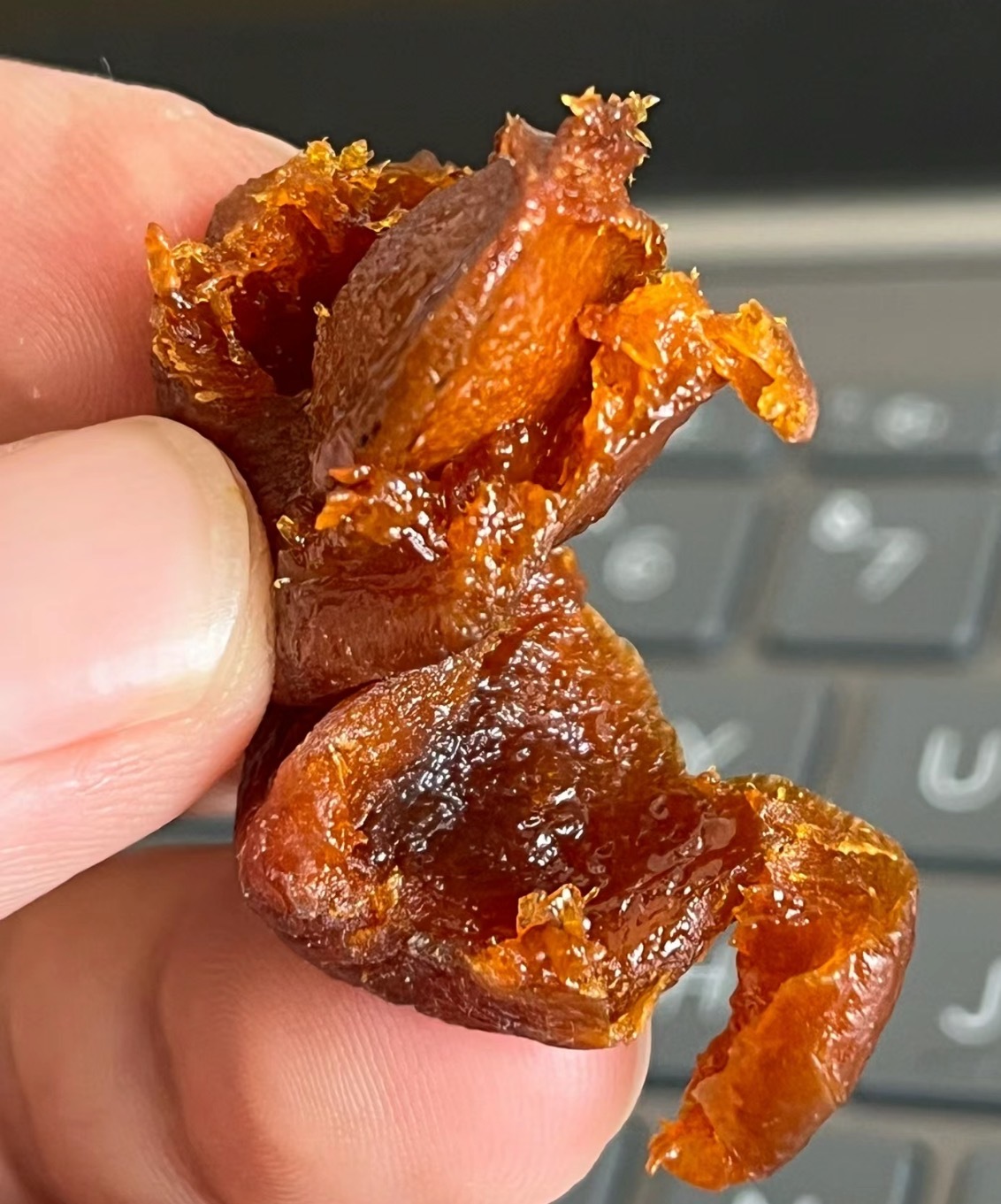 完整保持了树上杏干的甜香味和营养成分,丑萌的杏干一口咬下,饱满爽口,特有的果肉纤维在口中化开,让整个口腔瞬间充满杏子的味道,特别过瘾‼️