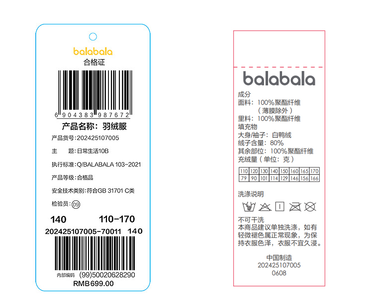 【hellokittyIP】巴拉巴拉童装儿童羽绒服女童2025年冬季