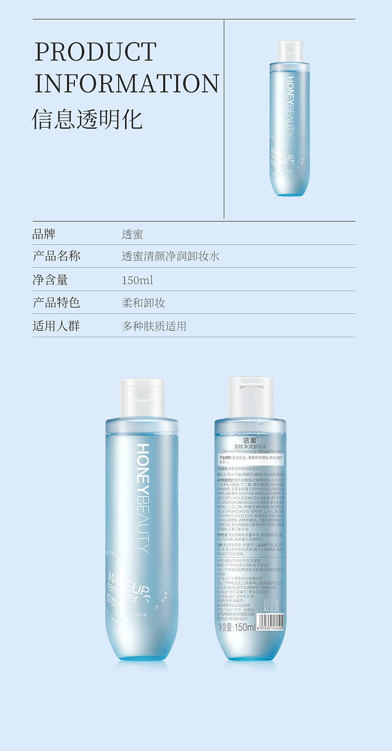 【内购特惠¥9.9】透蜜 清颜净润卸妆水150ml 蜂胶提取物+7重植萃精华深层清洁