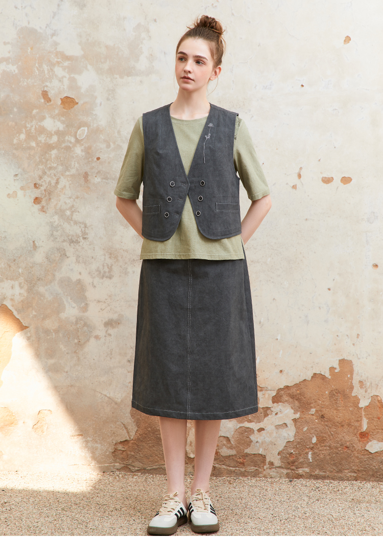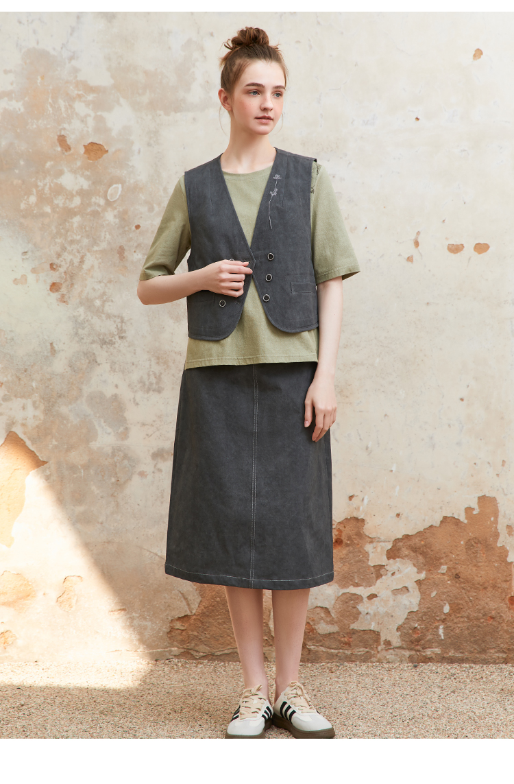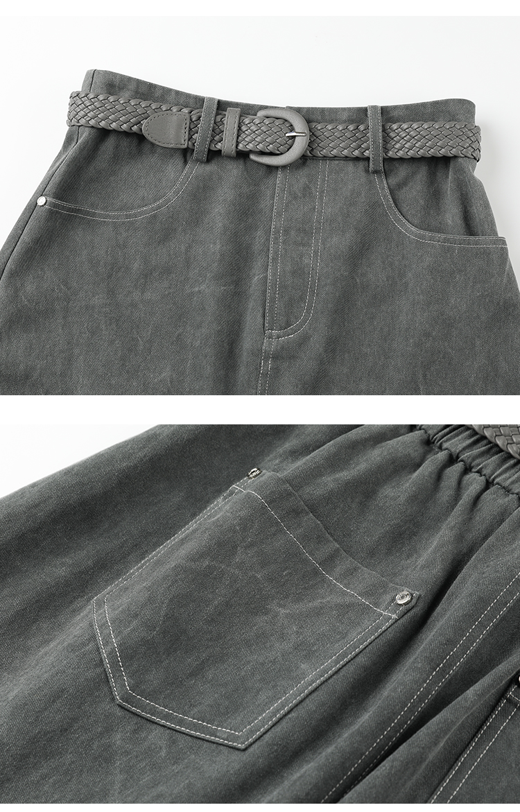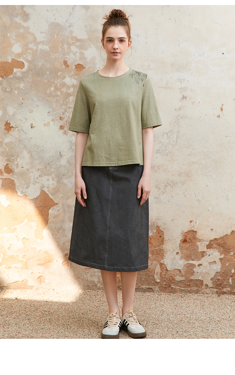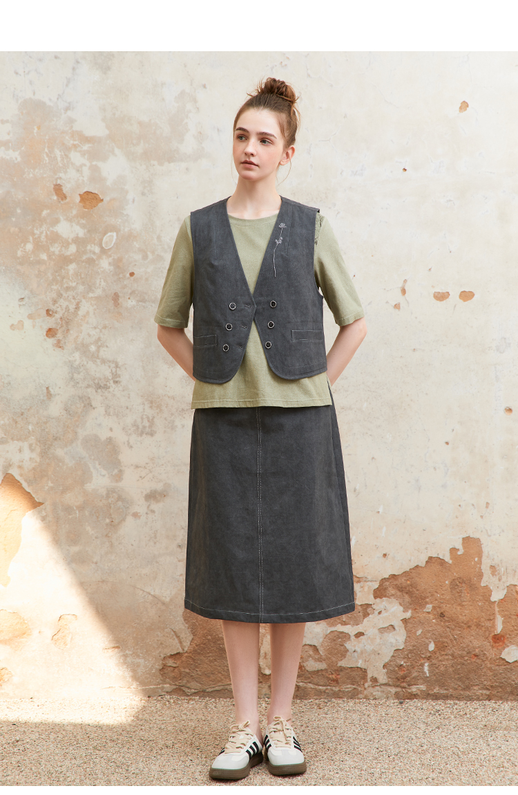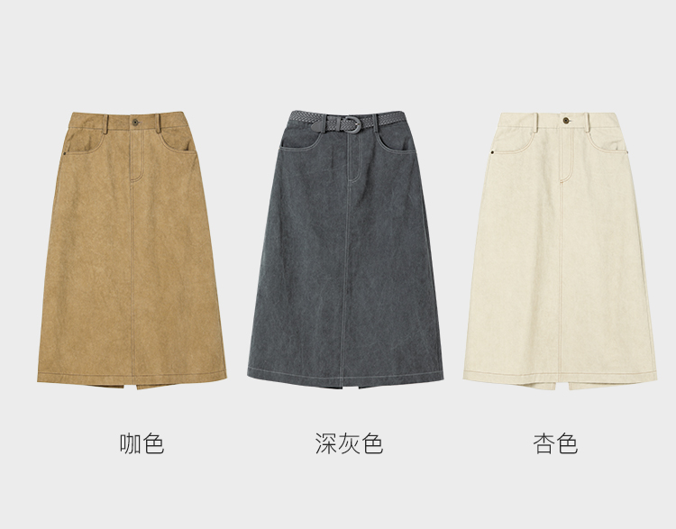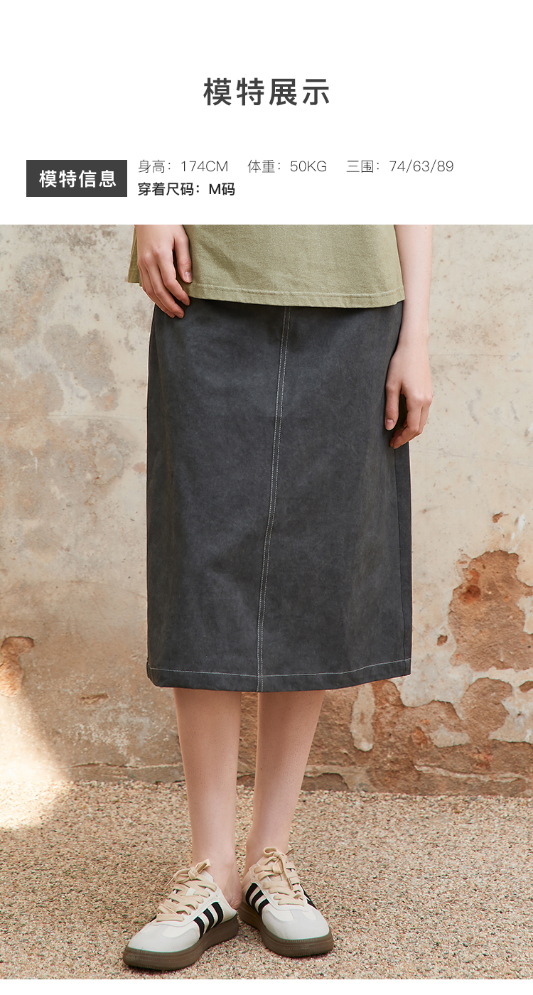 Famecoco范可儿纯棉牛仔包臀裙女士开叉半身裙中长款FAC1HA028