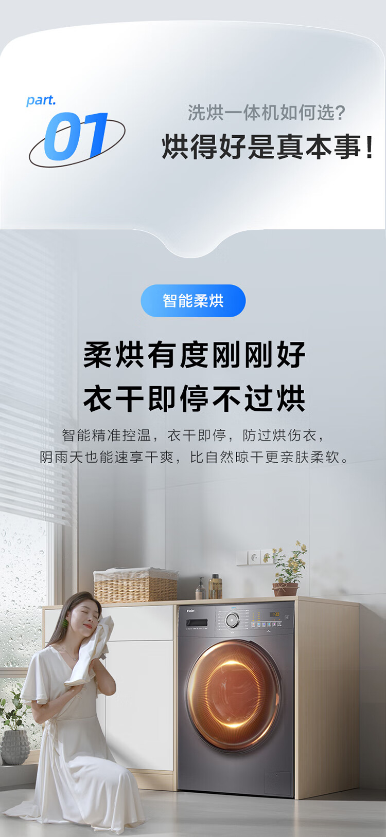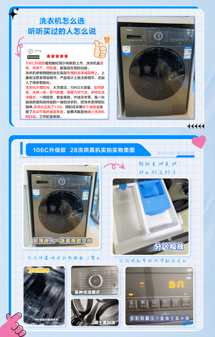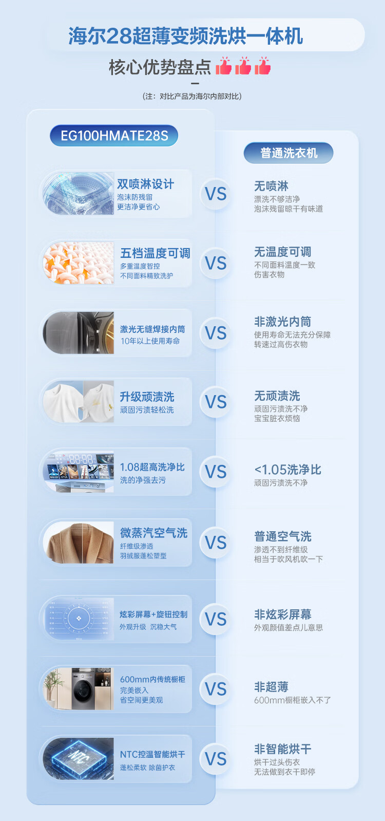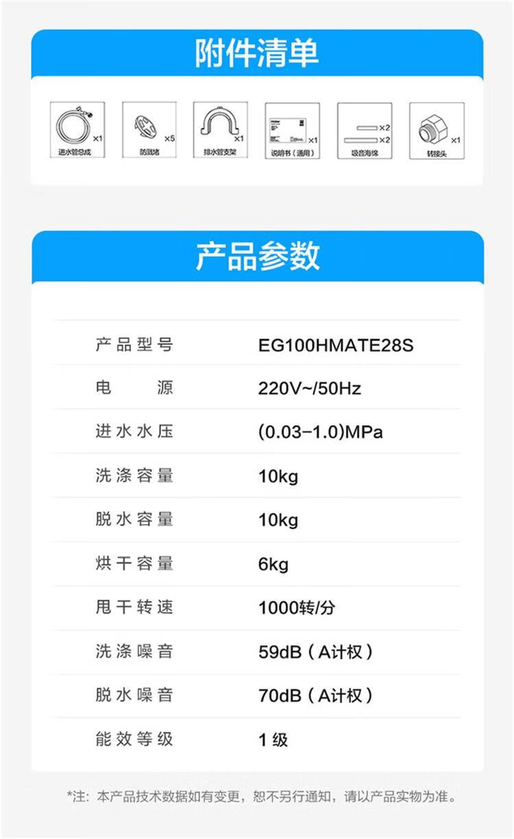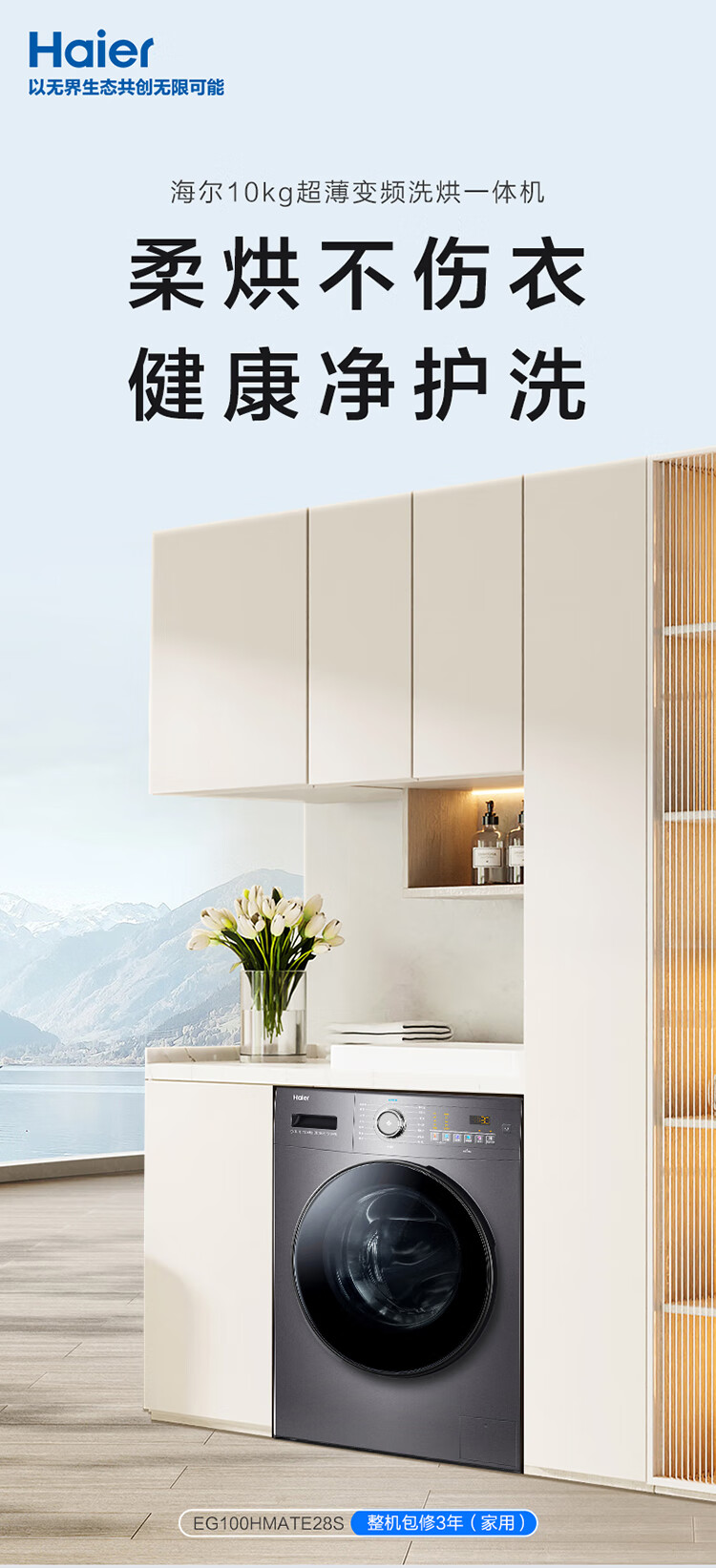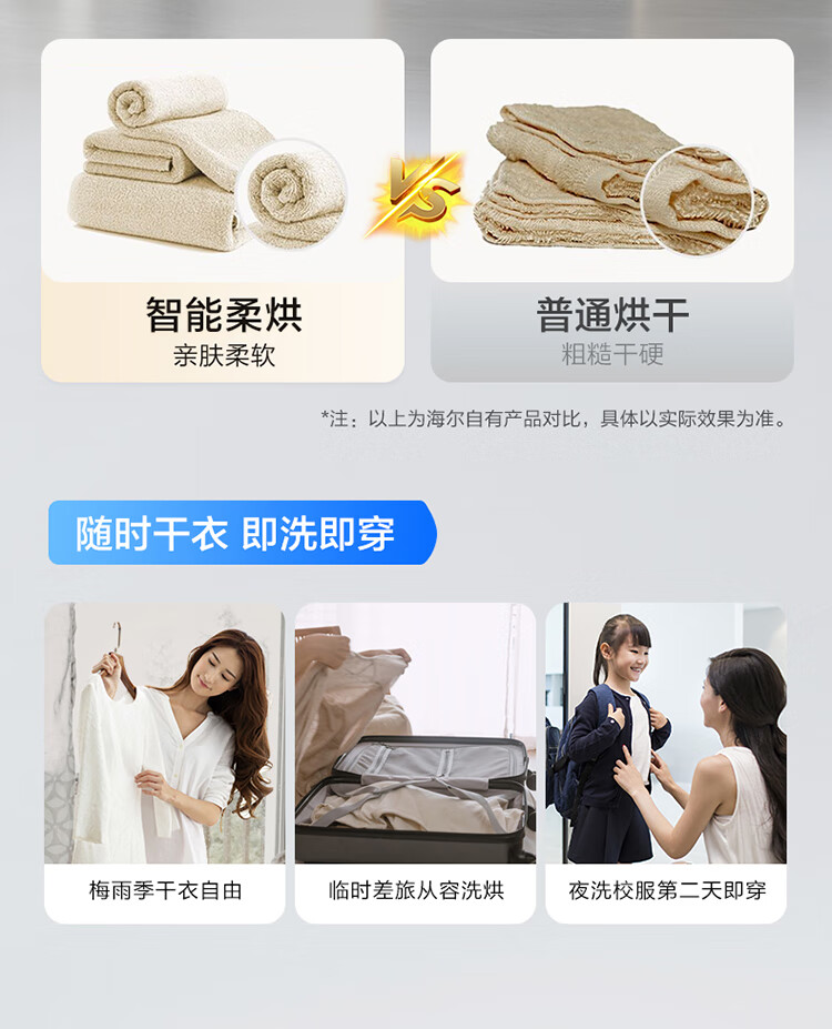 海尔(Haier)10kg滚筒洗衣机 全自动 洗烘一体机 带烘干 智能柔烘 超薄家用 EG100HMATE28S