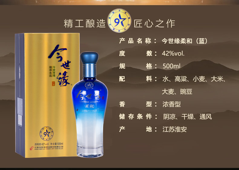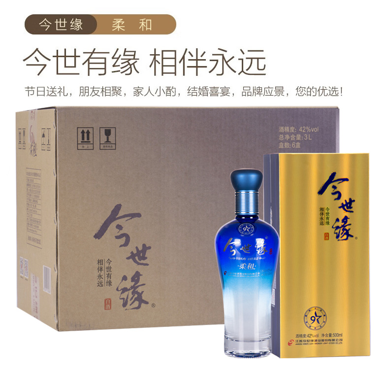 【酒厂直营】42度今世缘柔和蓝 整箱6瓶装