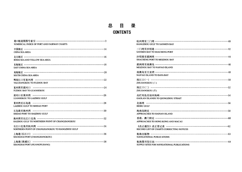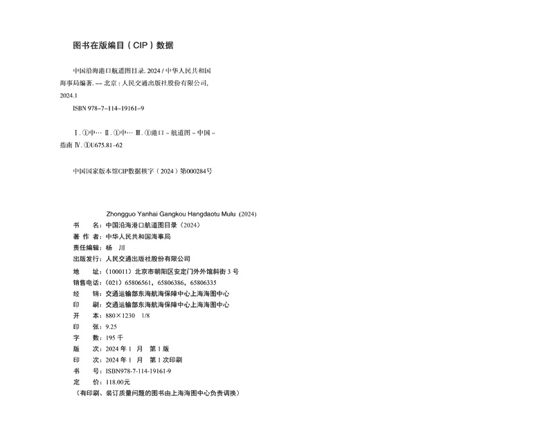 书名:中国沿海港口航道图目录2024