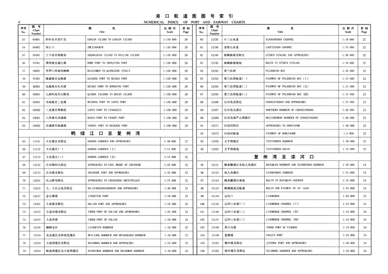 中国沿海港口航道图目录2024