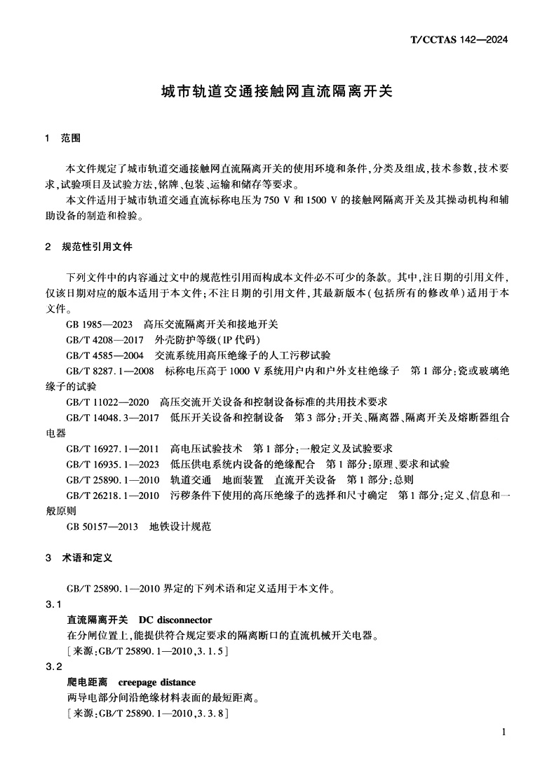 书名:城市轨道交通接触网直流隔离开关T/CCTAS 142—2024