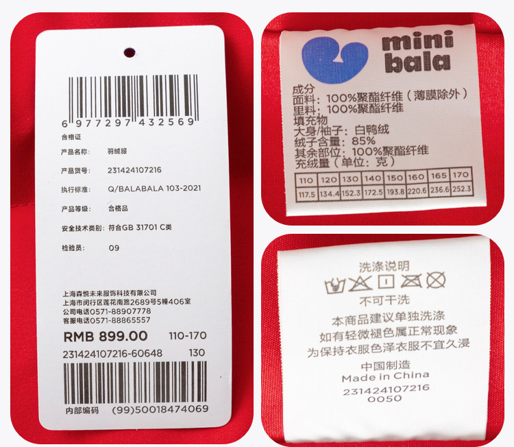 【防水透湿】迷你巴拉巴拉男女童防风保暖亲子羽绒服三防羽绒外套