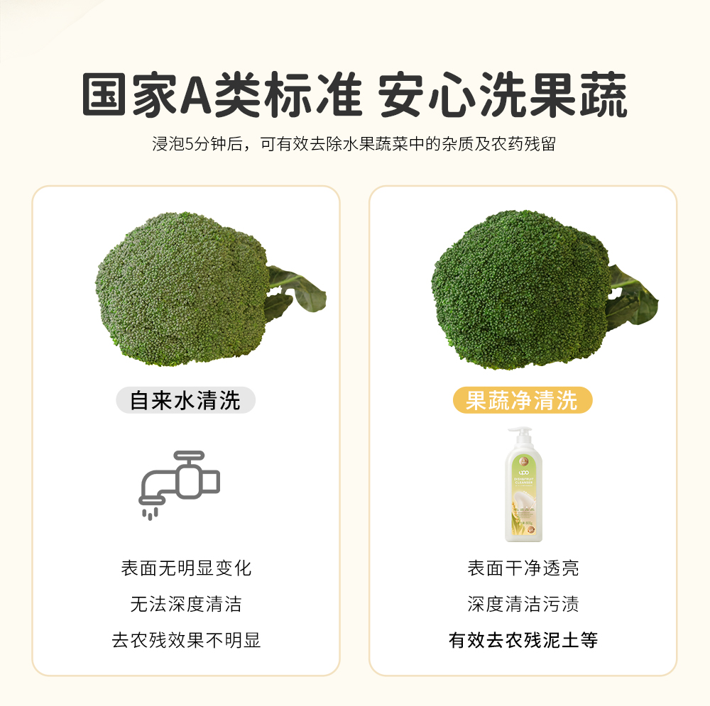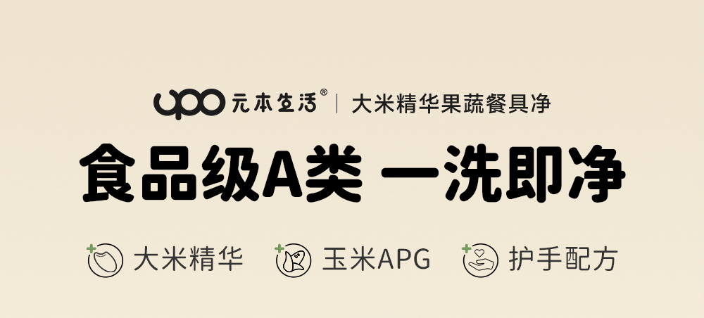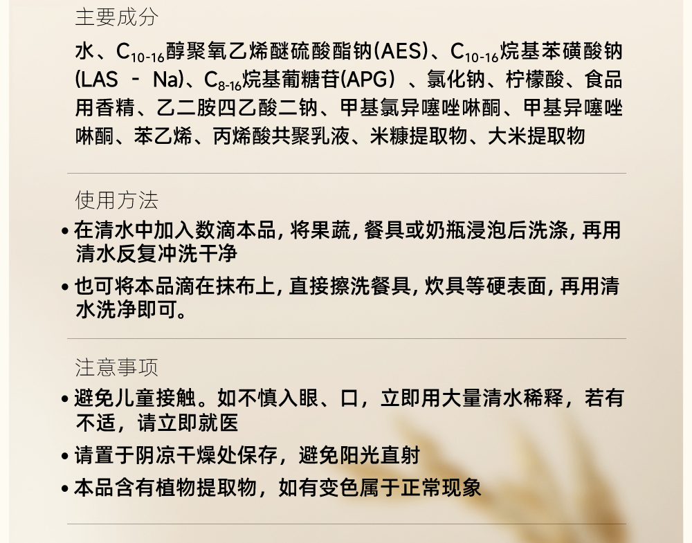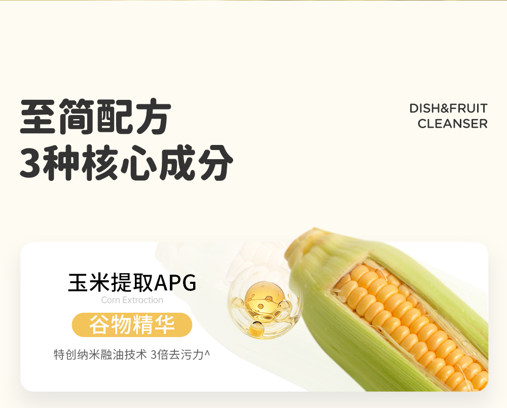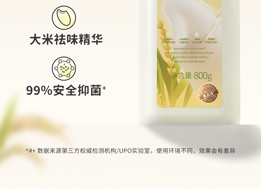 【食品级清洁剂】元本生活 大米精华果蔬净800g*3瓶 食品级A类,3倍去油污去农残;大米精华,天然去腥;米糠氨基酸成分,温和不伤手