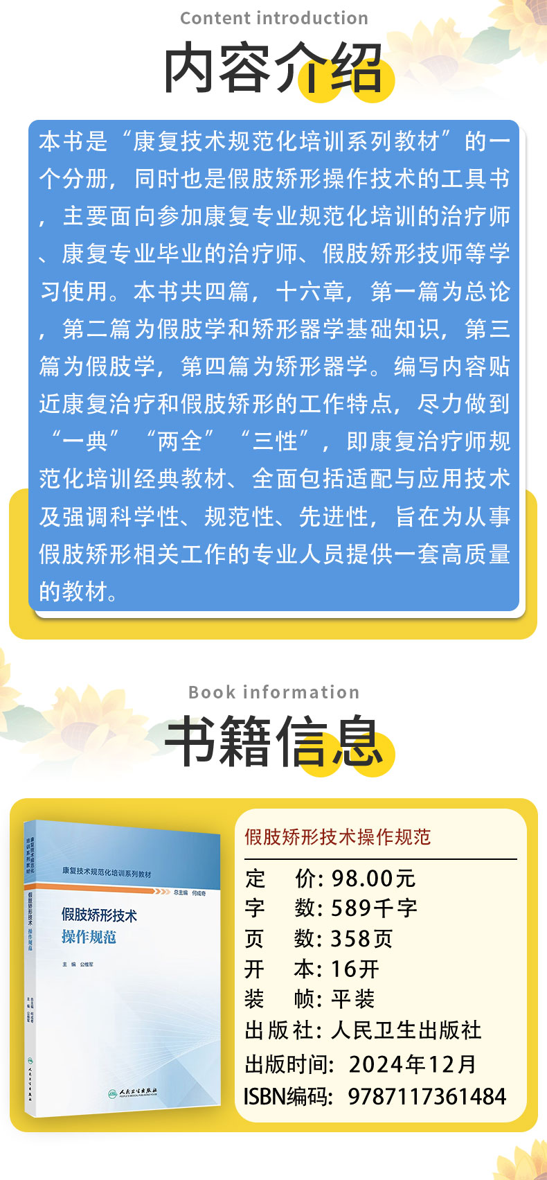 书名:假肢矫形技术操作规范(康复技术规范化培训系列教材)(包销2000)