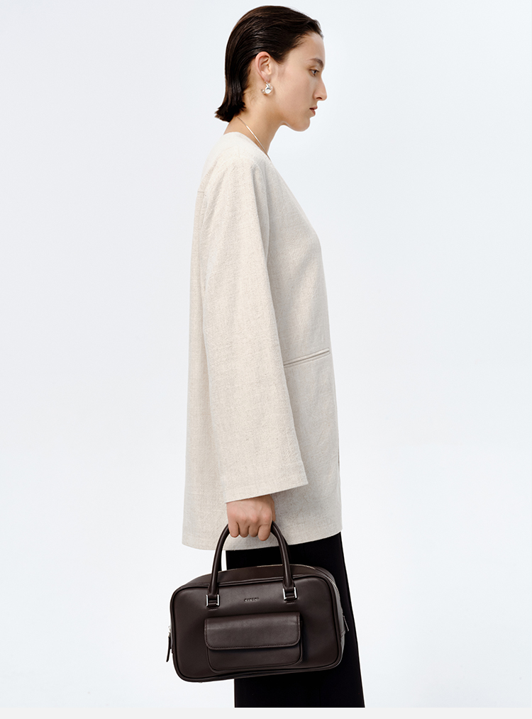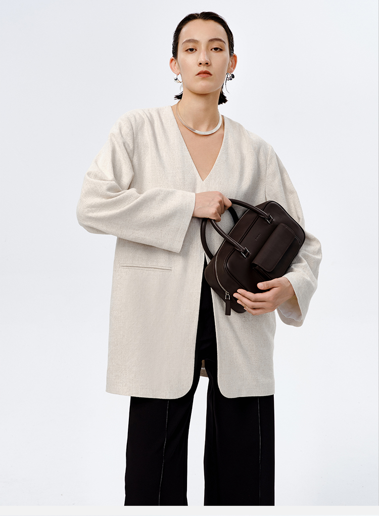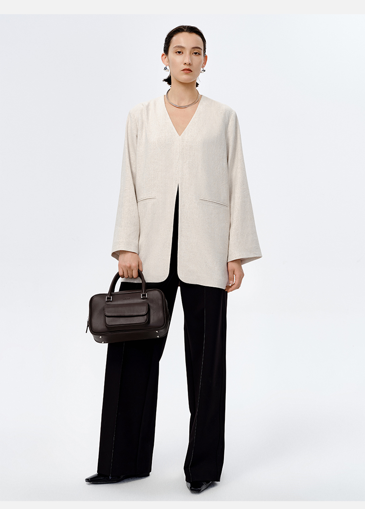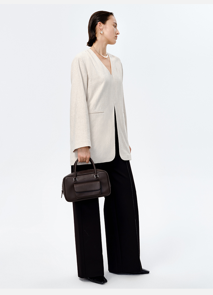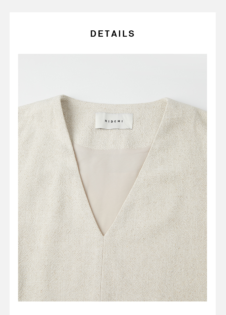 HIDEMI 水洗亚麻自然原色V领西装极简口袋开衩设计感西装式上衣