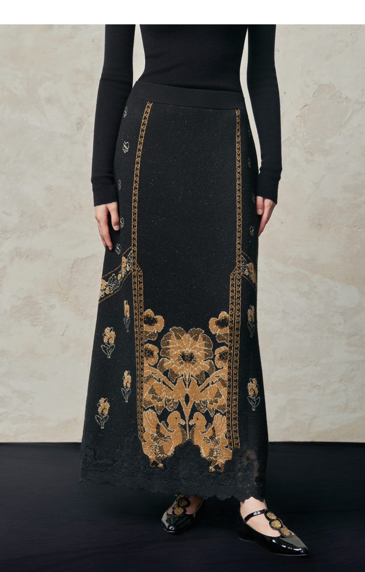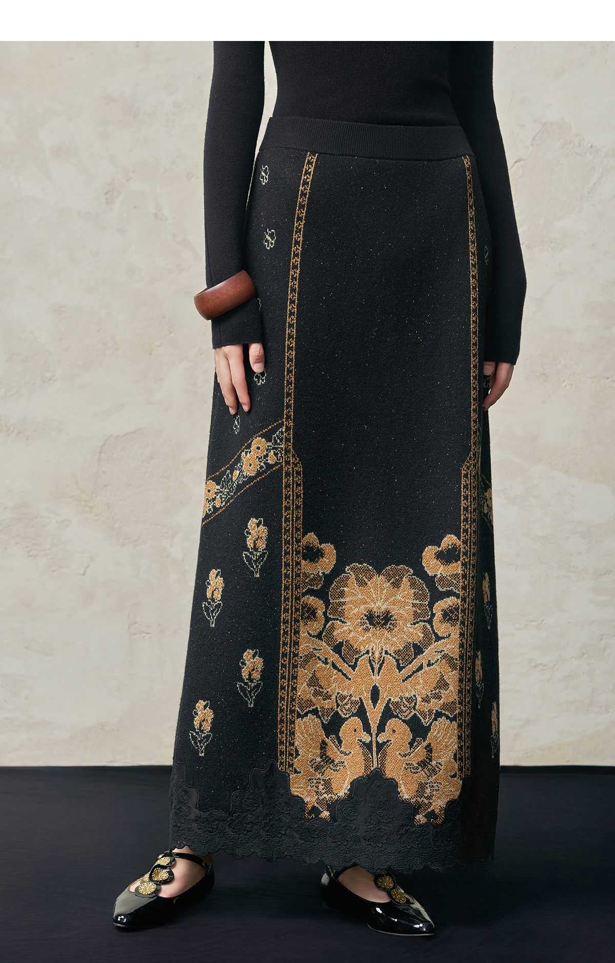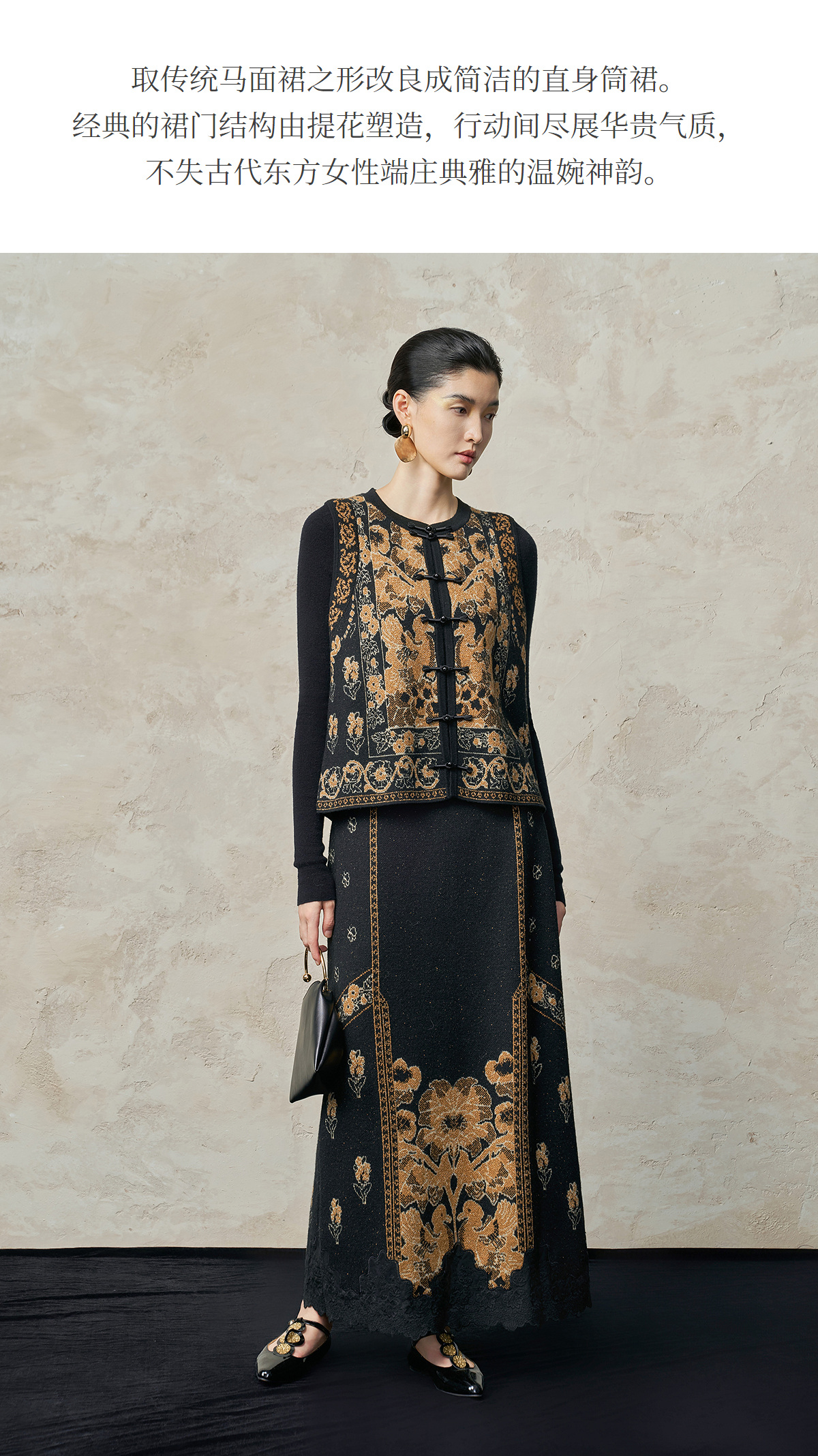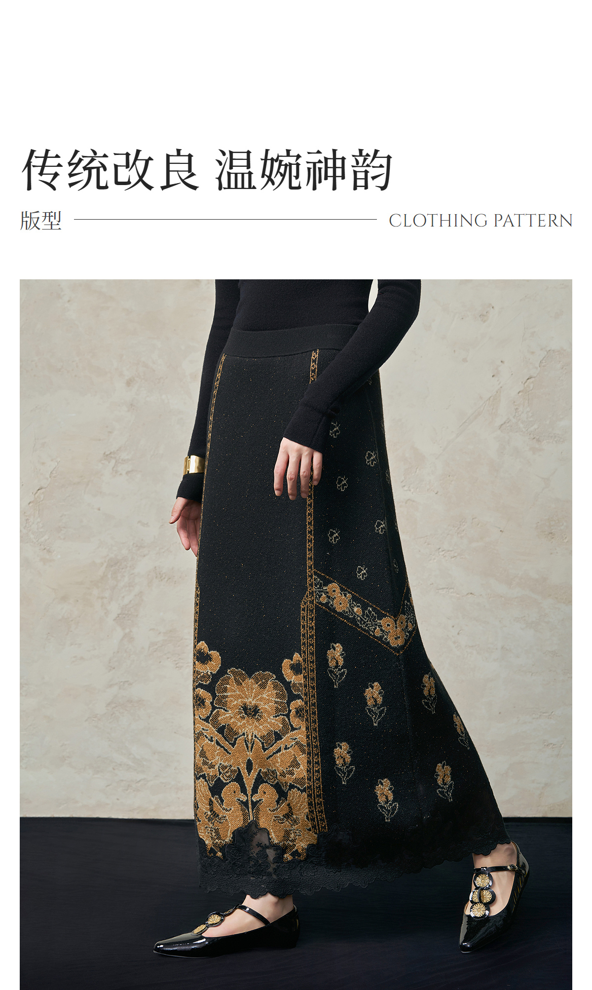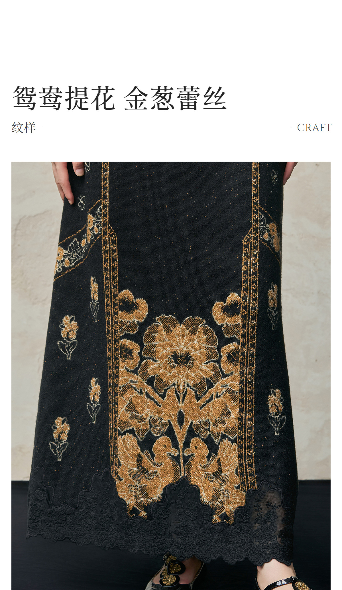 【林栖设计小店】毛织蕾丝半身裙金葱提花古典新中式气质2025秋冬新款马面裙女1954074