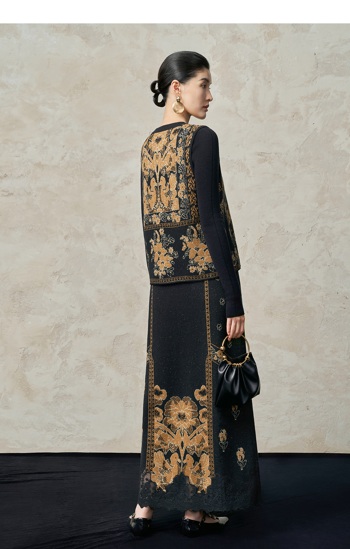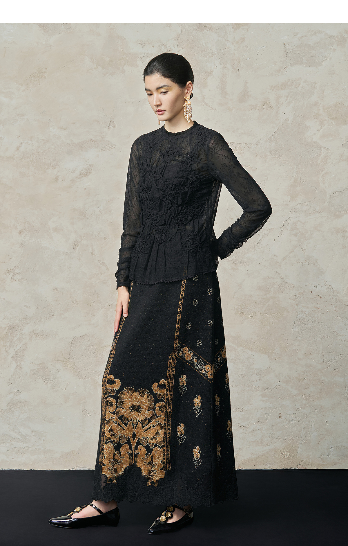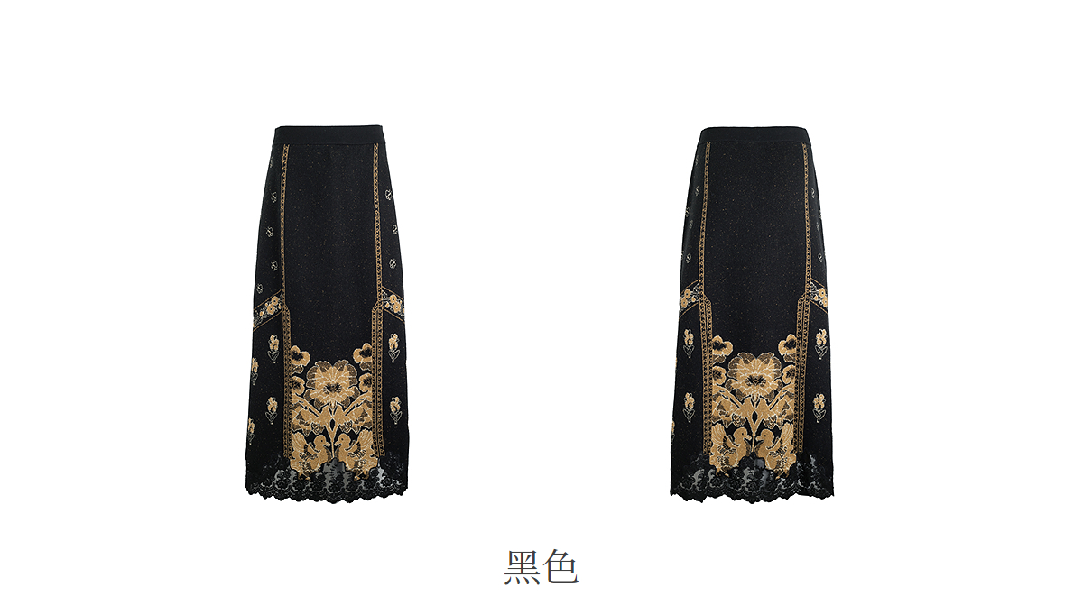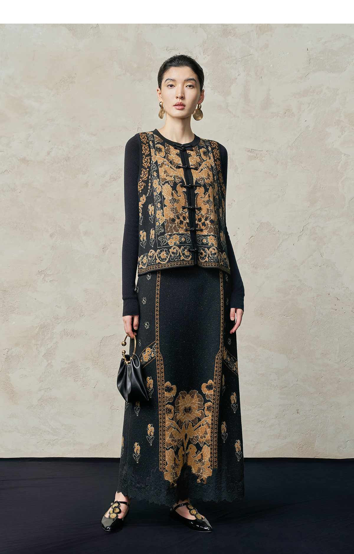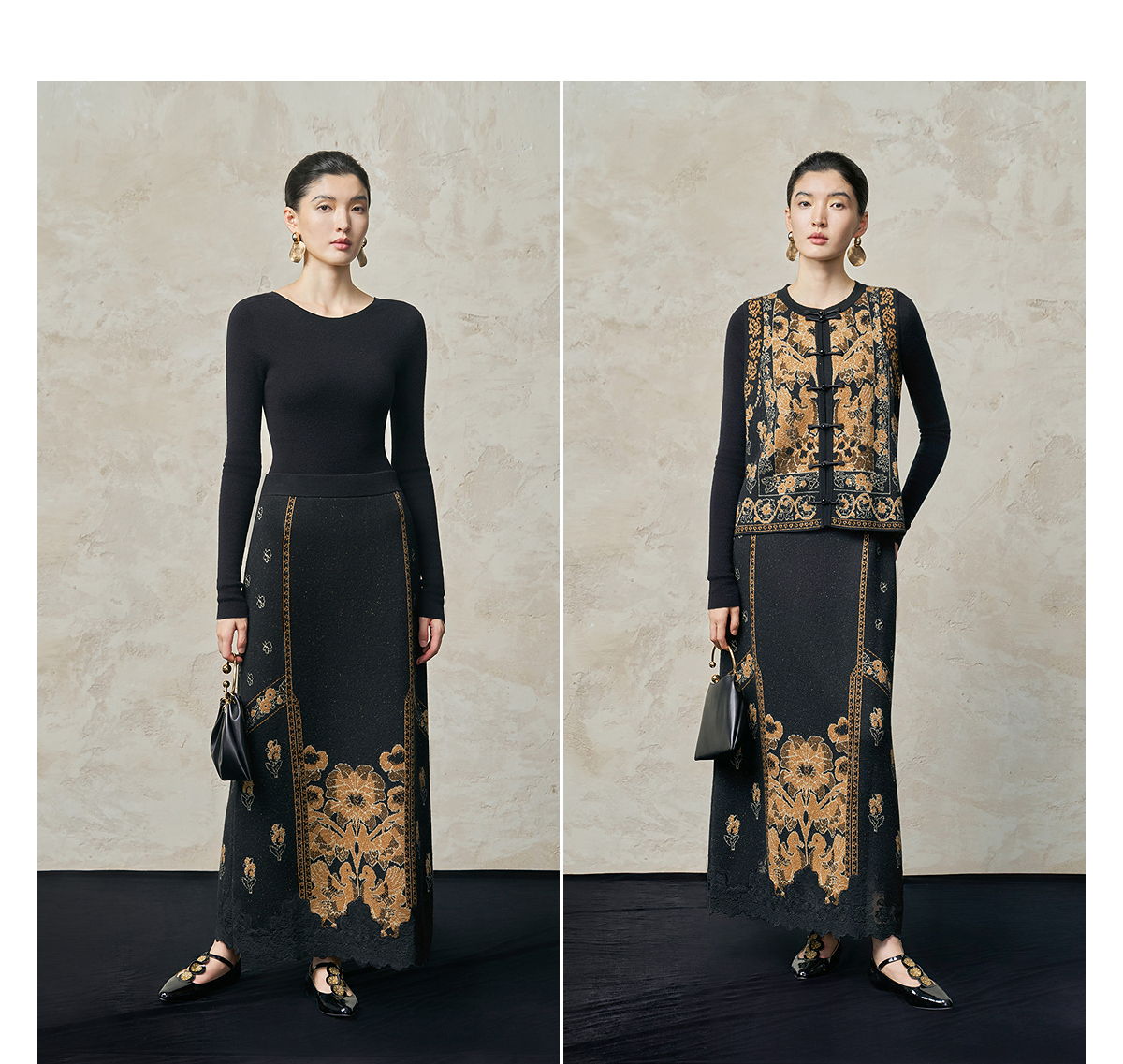 【林栖设计小店】毛织蕾丝半身裙金葱提花古典新中式气质2025秋冬新款马面裙女1954074