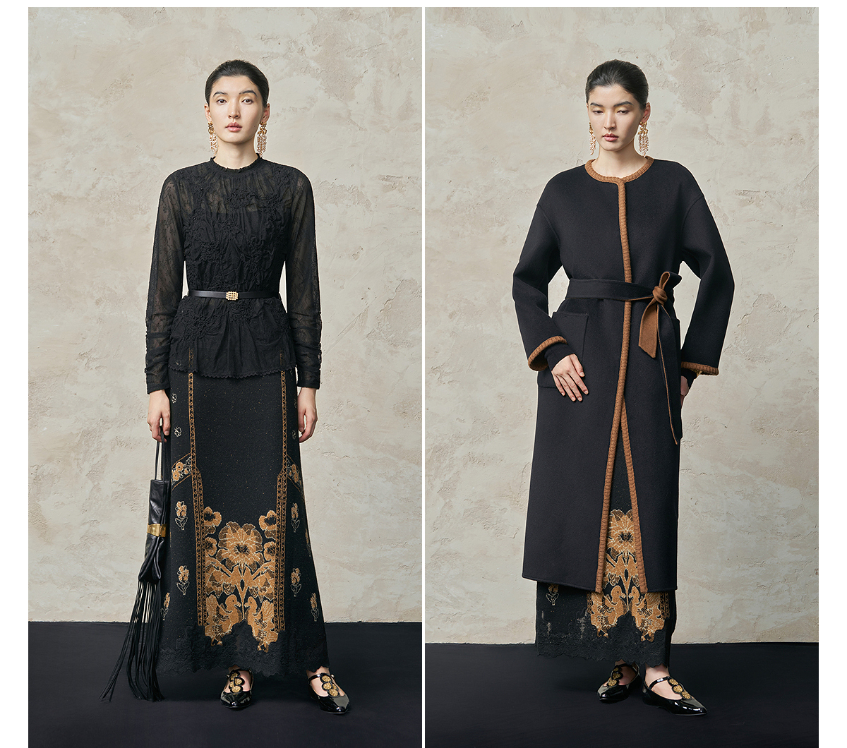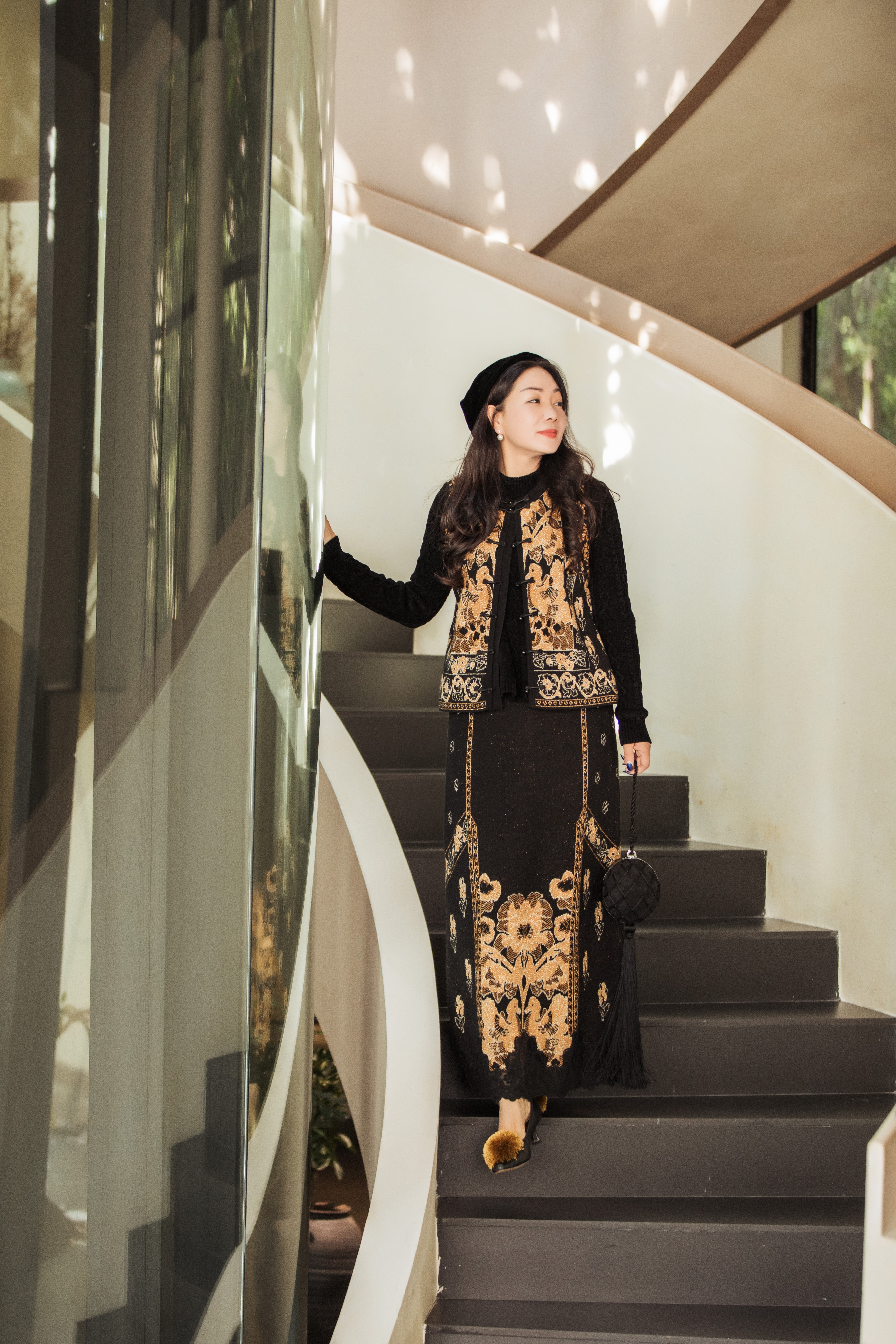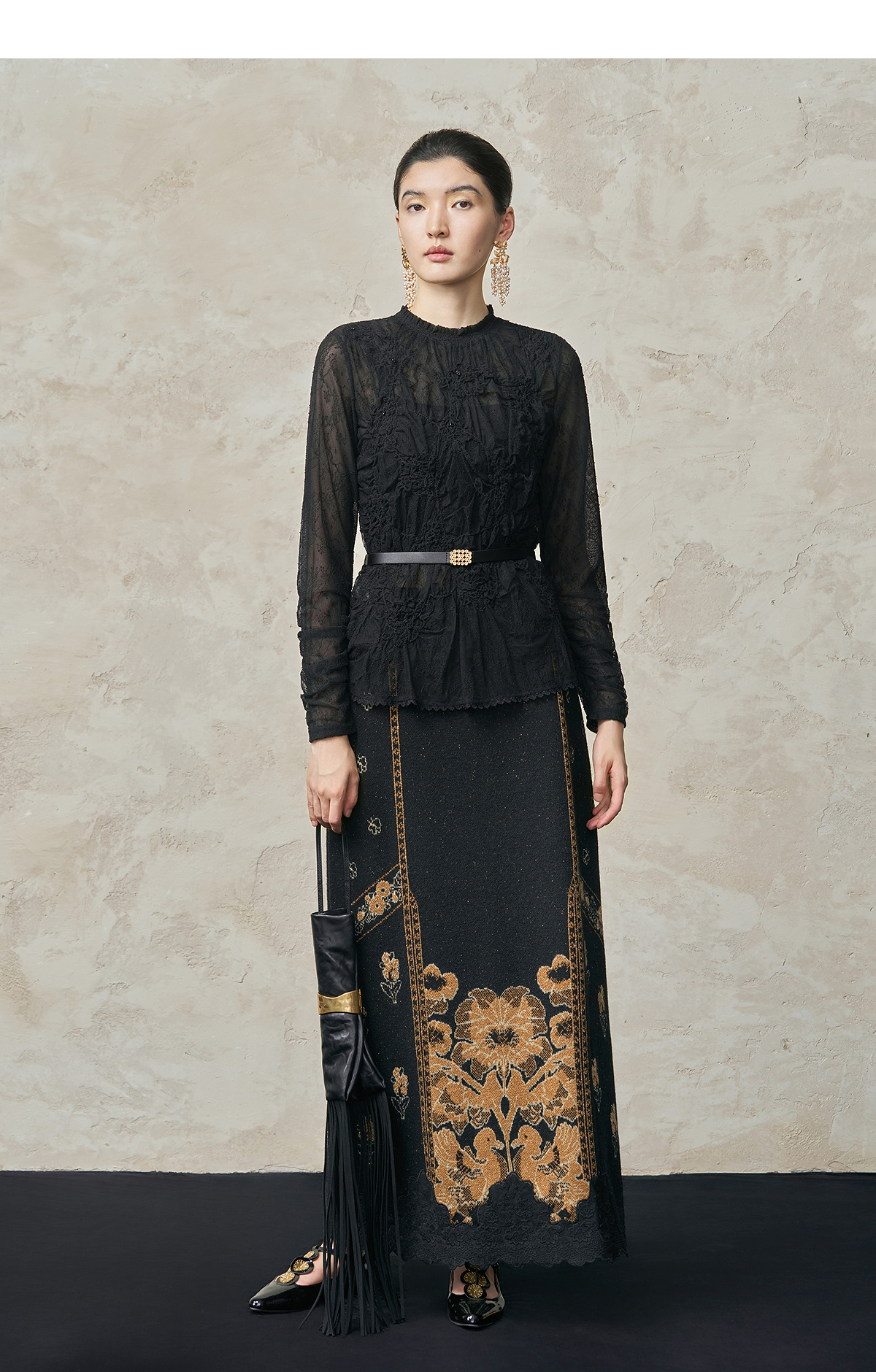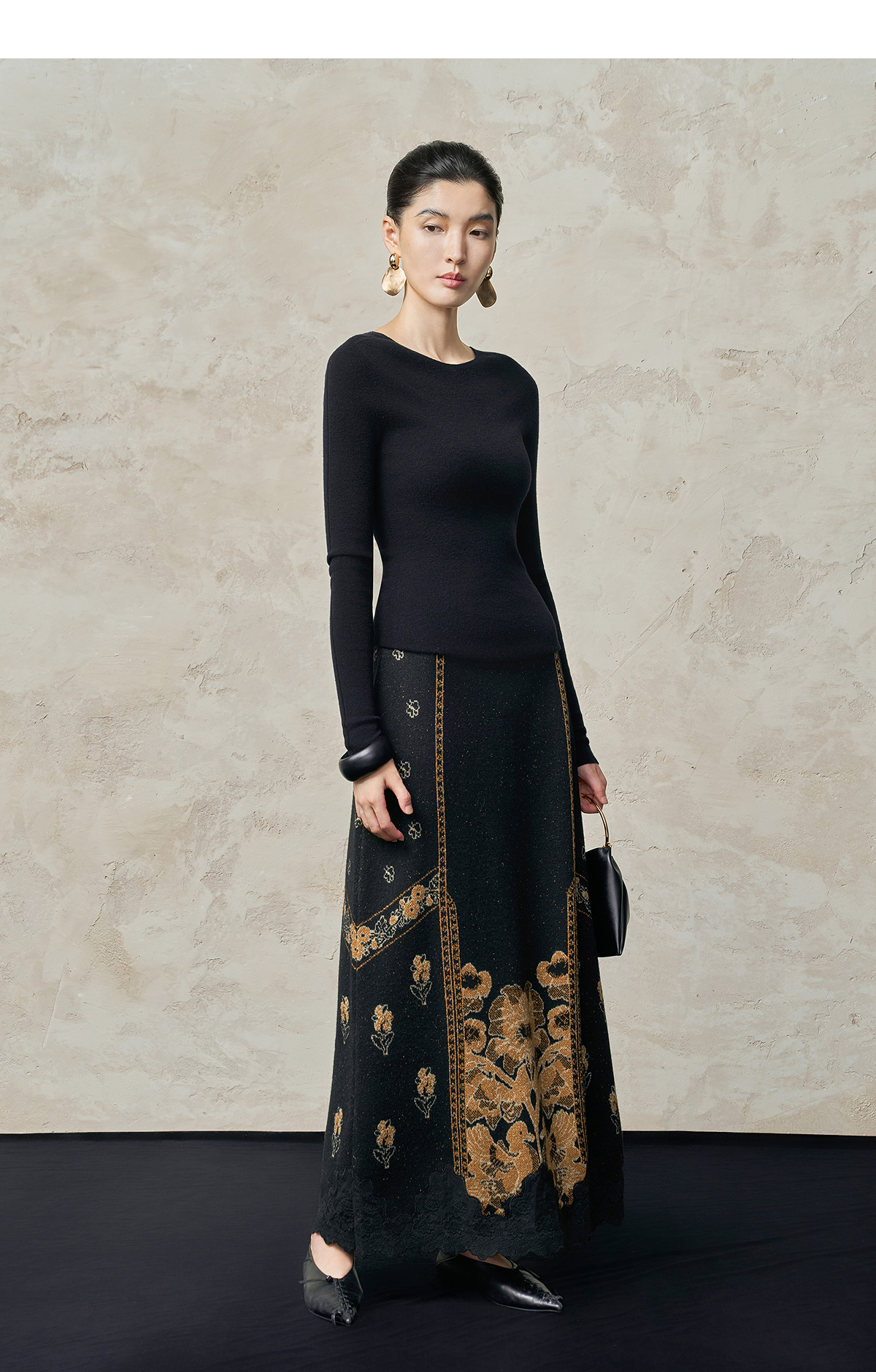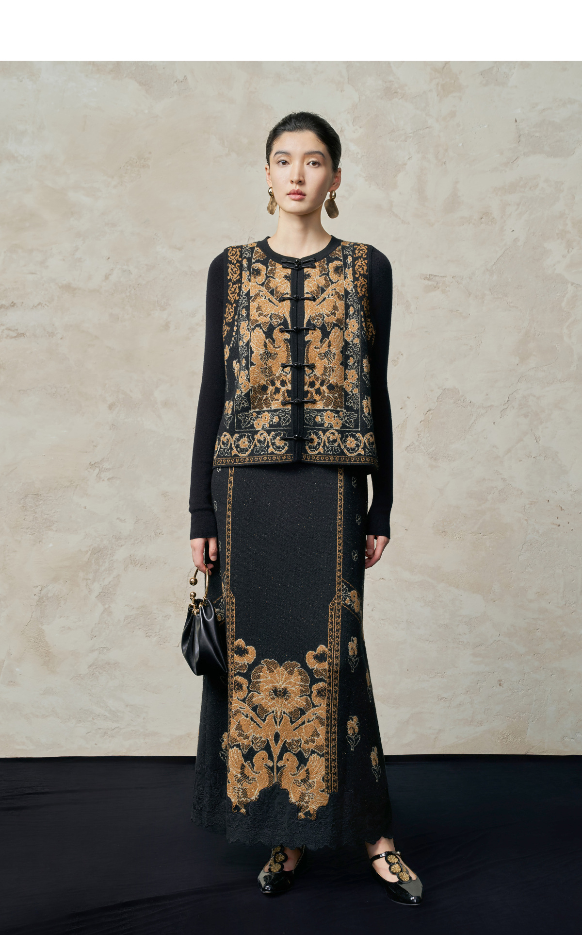 【林栖设计小店】毛织蕾丝半身裙金葱提花古典新中式气质2025秋冬新款马面裙女1954074