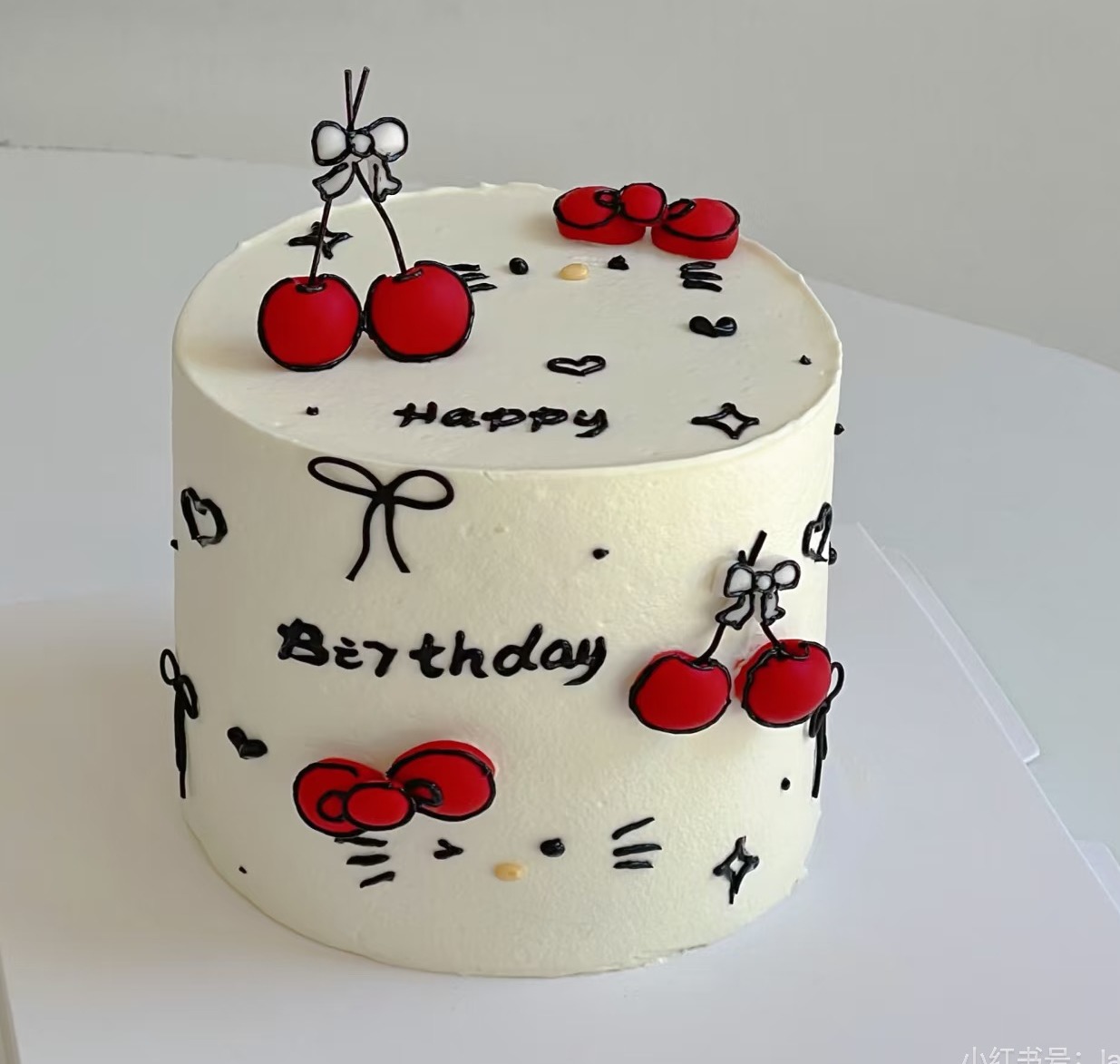 优品--【二次元手绘简约KT猫】KT猫卡通主题蛋糕