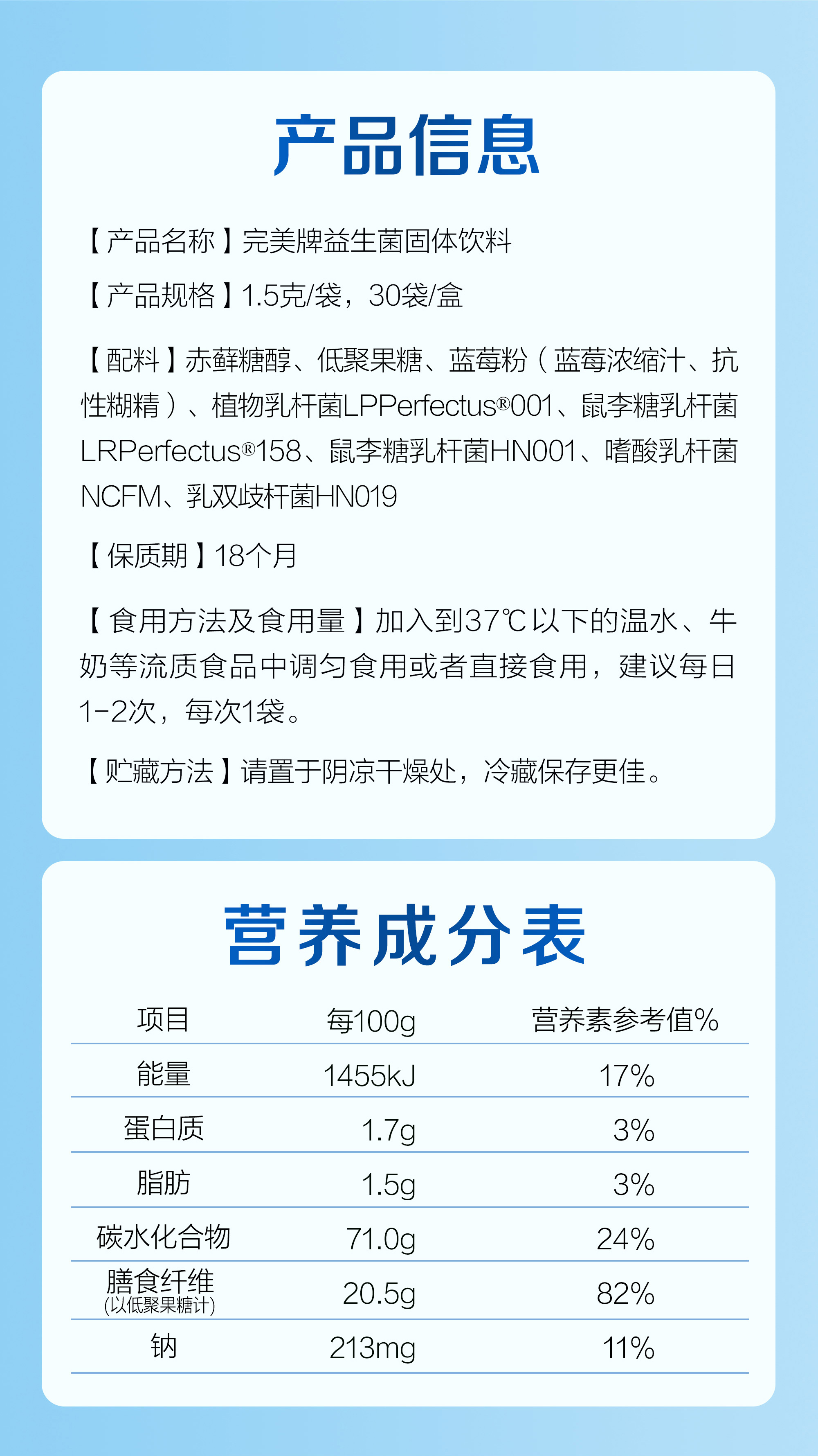 【预售 急单慎拍】完美牌益生菌固体饮料 1.5G*30袋 原价249元