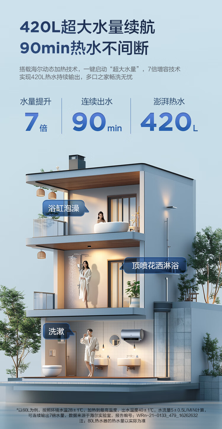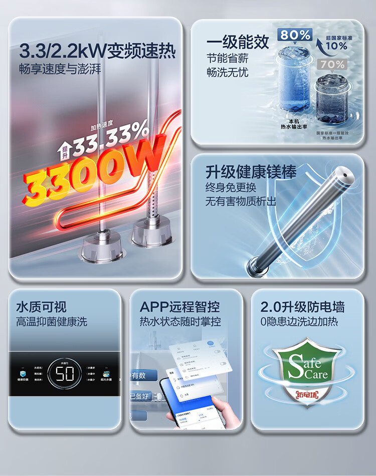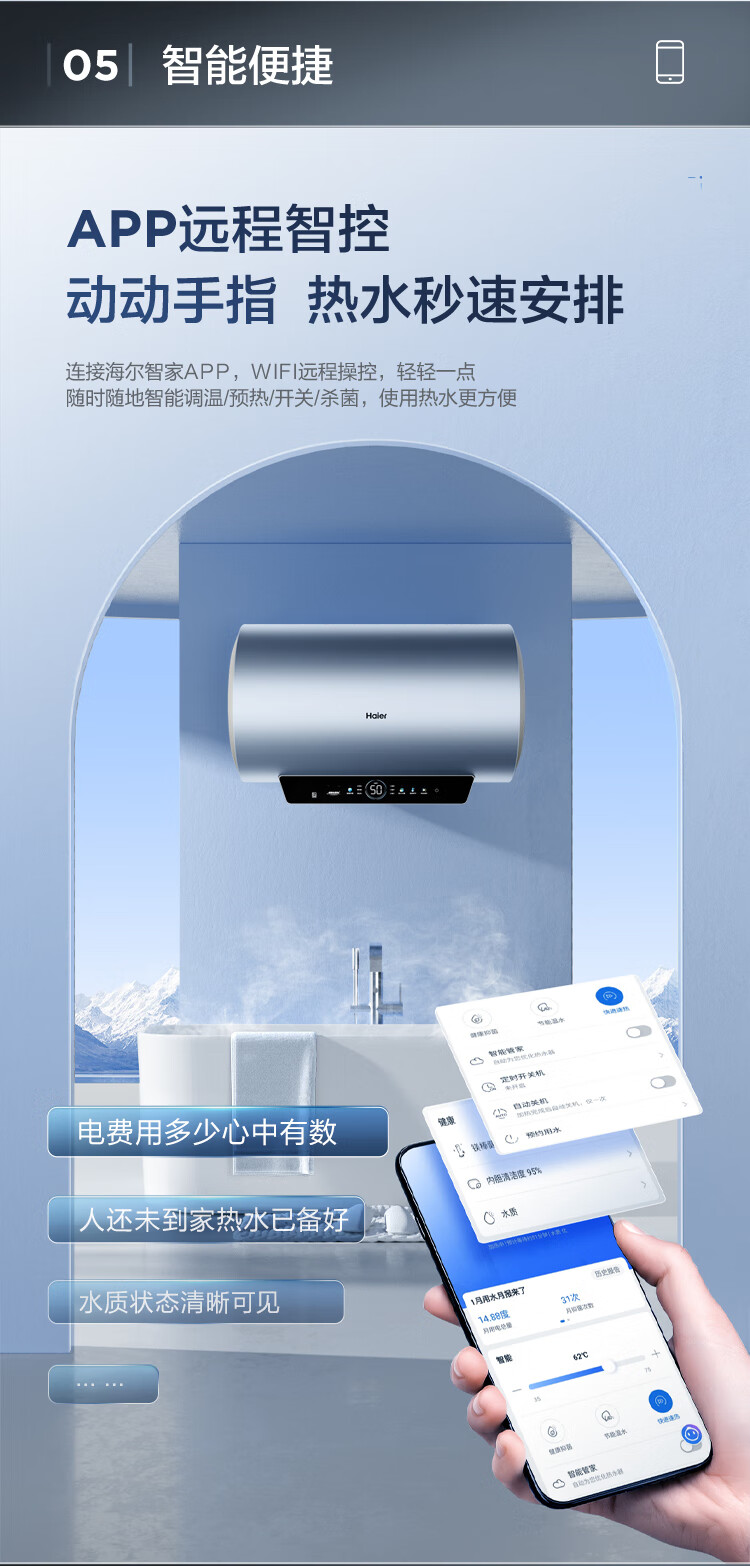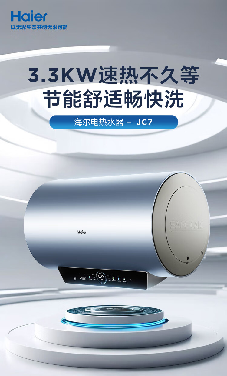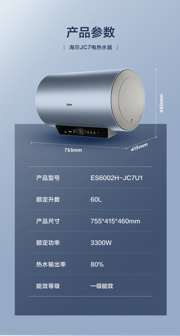 海尔(Haier)【60JC7】60升电热水器 3.3KW变频 水质可视 镁棒免更换 一级能效 水量可视 ES6002H-JC7U1*