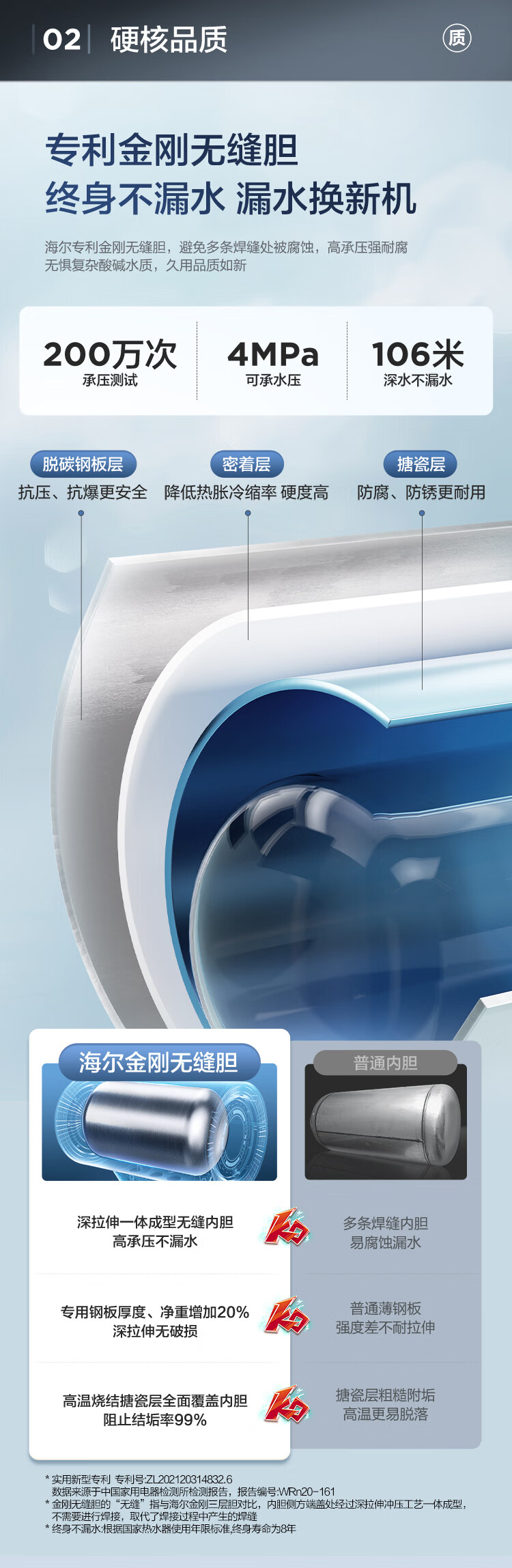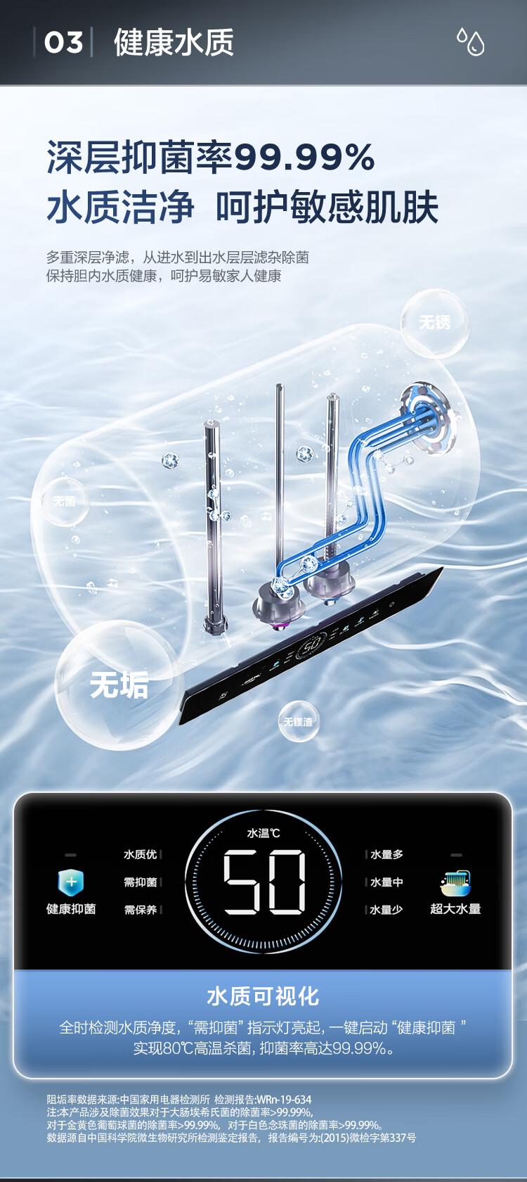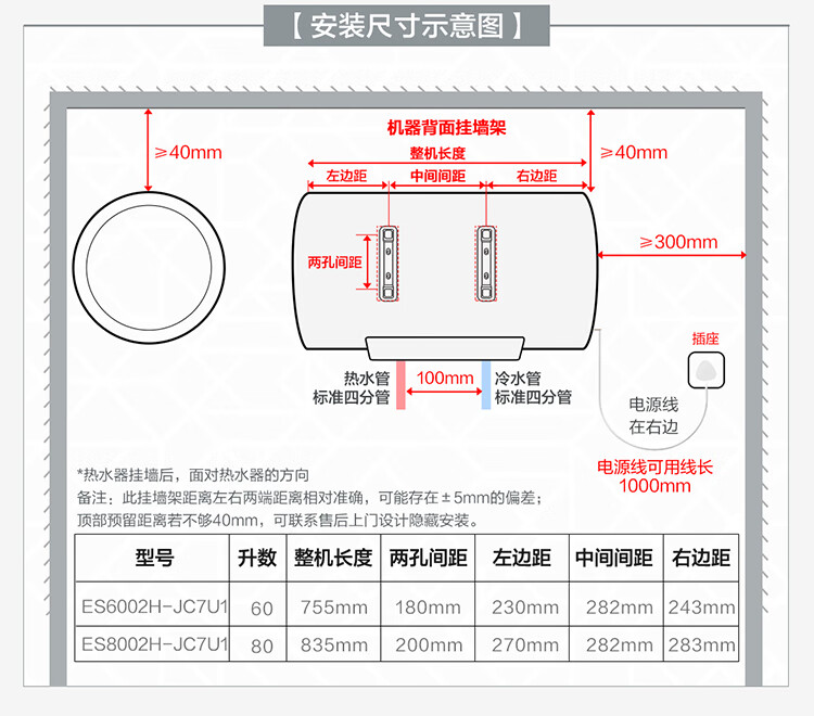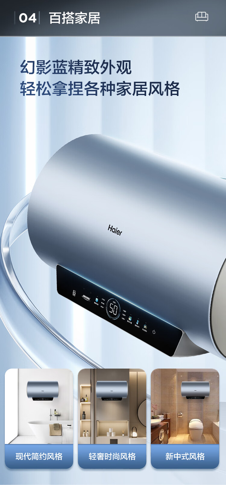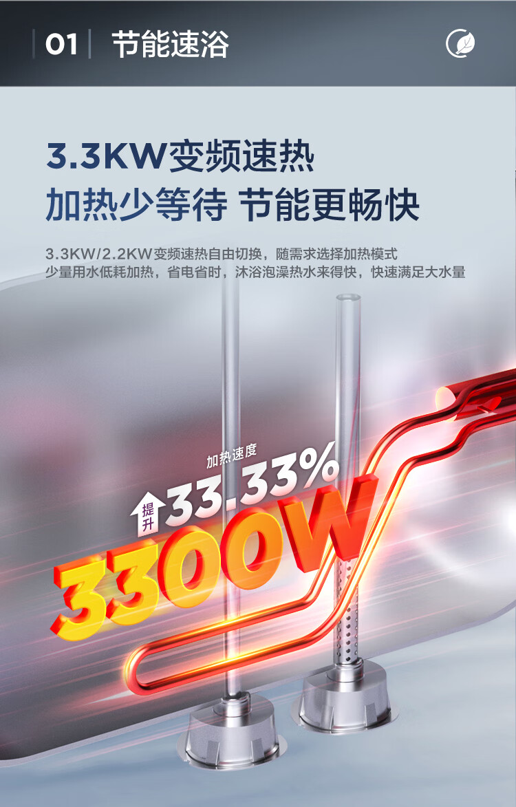 海尔(Haier)【60JC7】60升电热水器 3.3KW变频 水质可视 镁棒免更换 一级能效 水量可视 ES6002H-JC7U1*