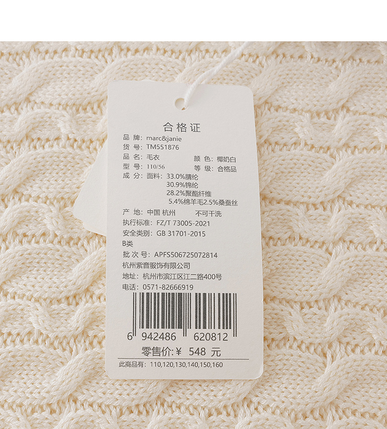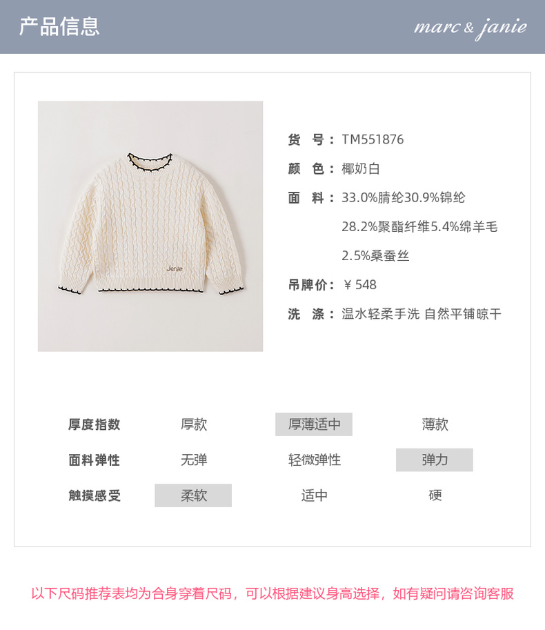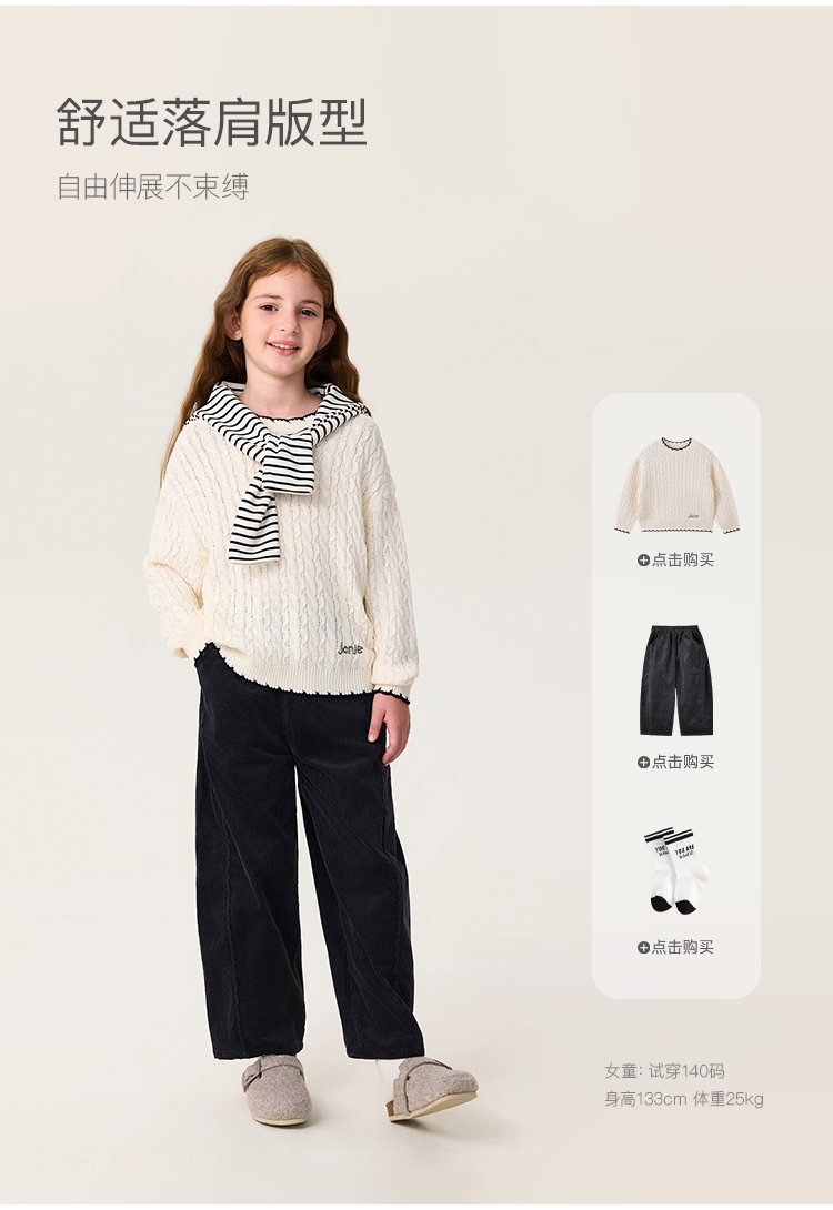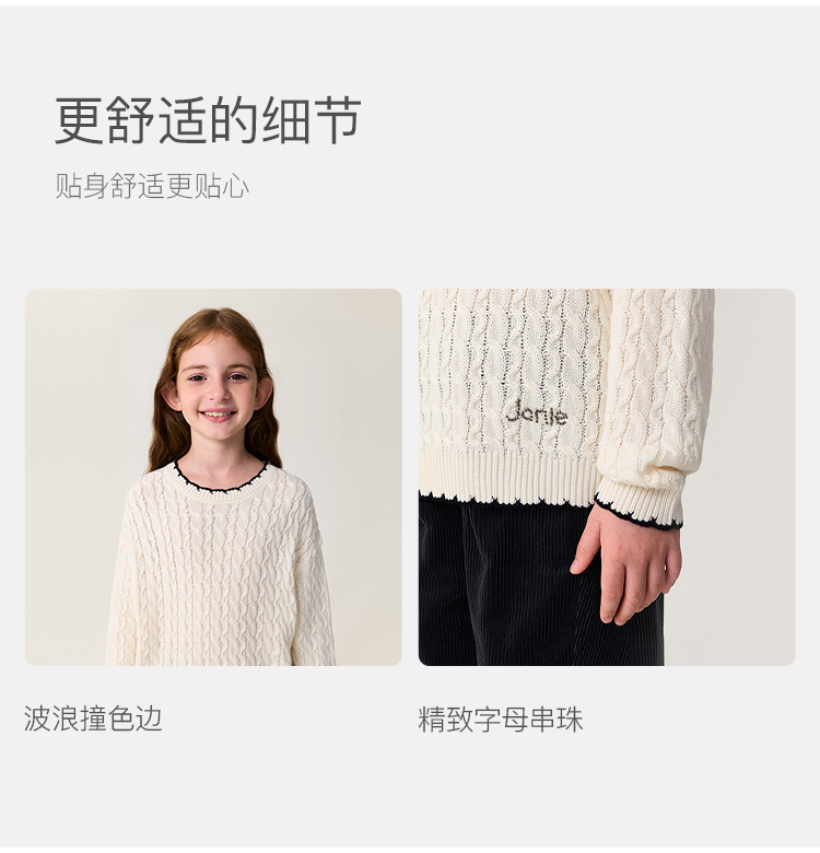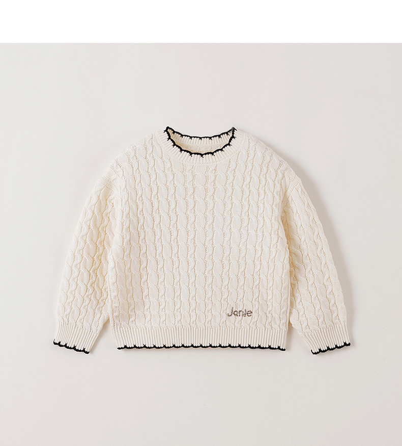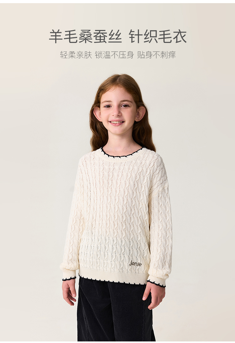 马克珍妮男女童撞色边绵羊毛针织毛衣2025年秋冬新款551876