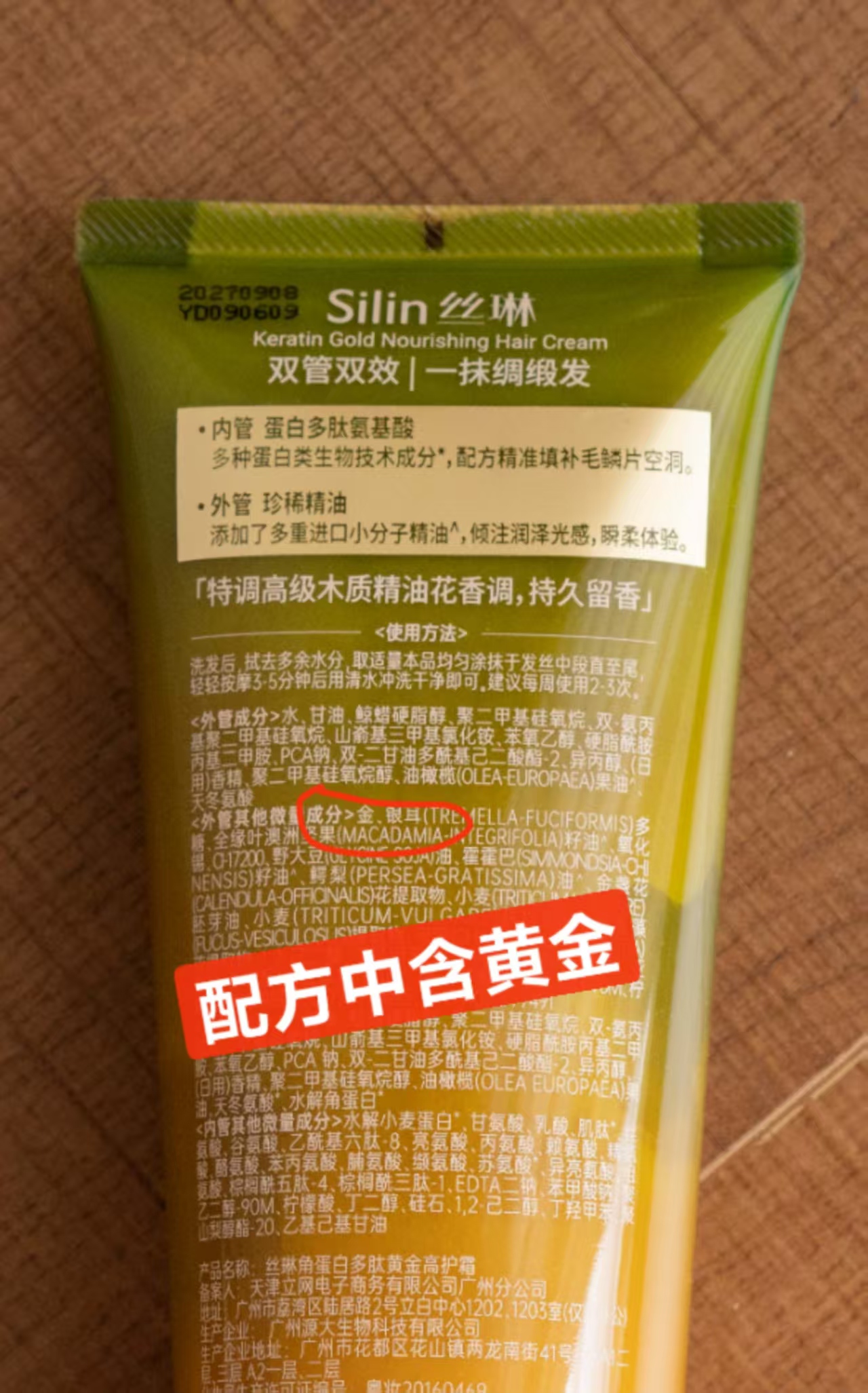 发膜 【丝琳角蛋白黄金双管发膜】官旗 ⚠️化学博士+哈佛、麻省教授+GUCCI调香师爱徒联合研制 🔺独特双管——打开和锁住头发吸收通道 🔺专利24K纳米金,光泽度➕12.7%
