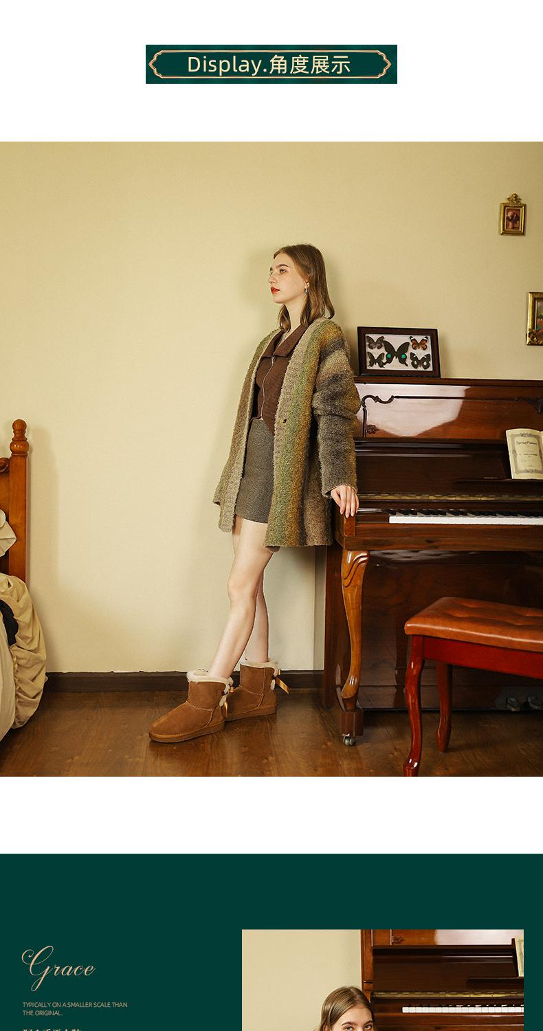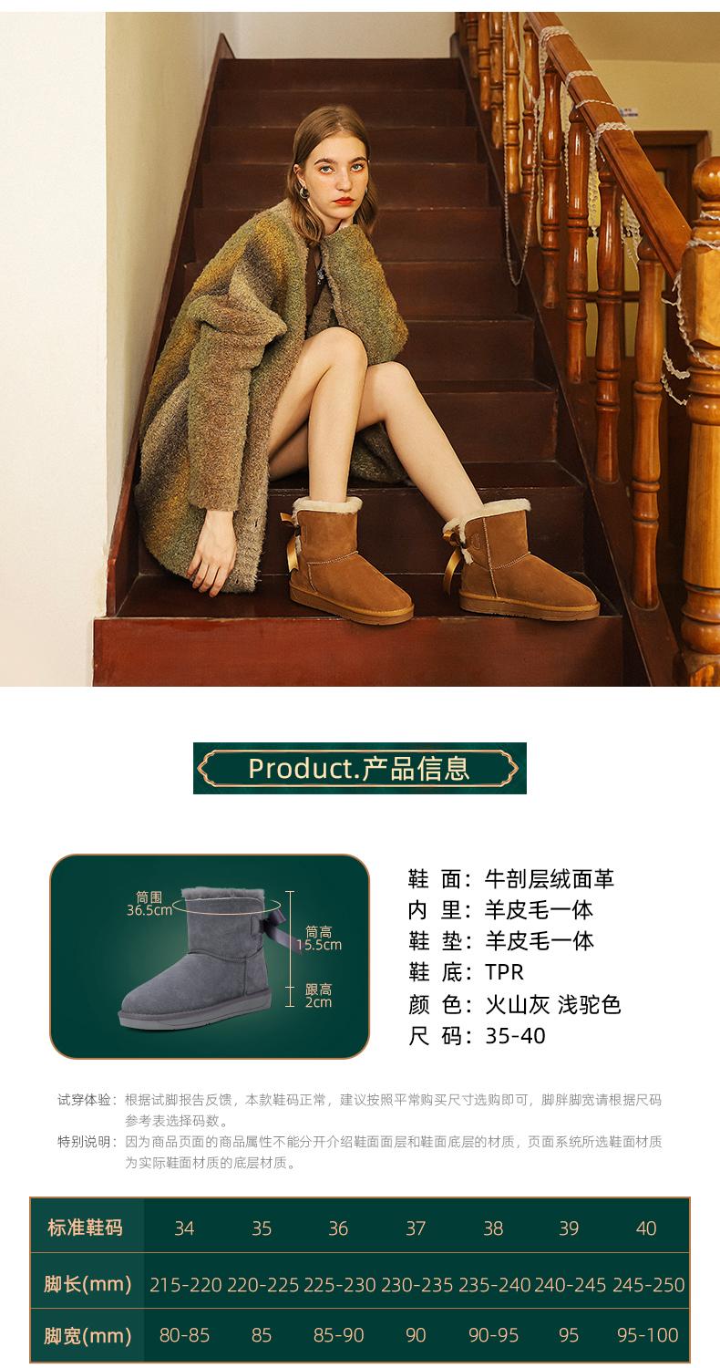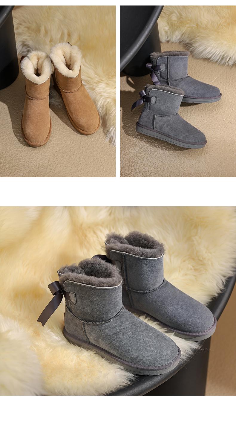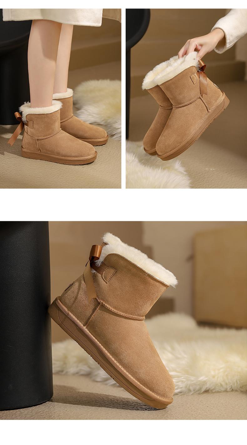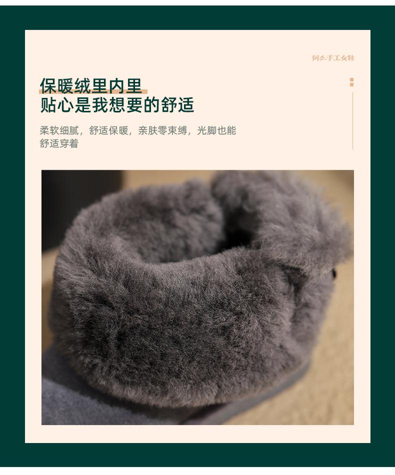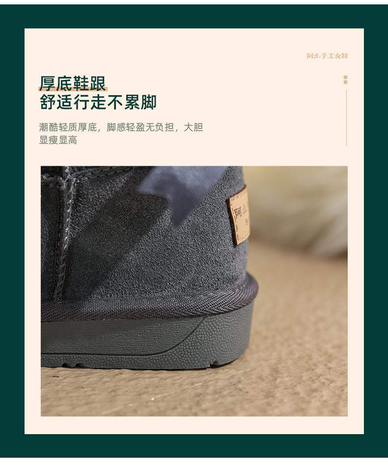 阿么手工女鞋秋冬时尚雪地靴真皮保暖2024新款百搭2CM厚底短靴女