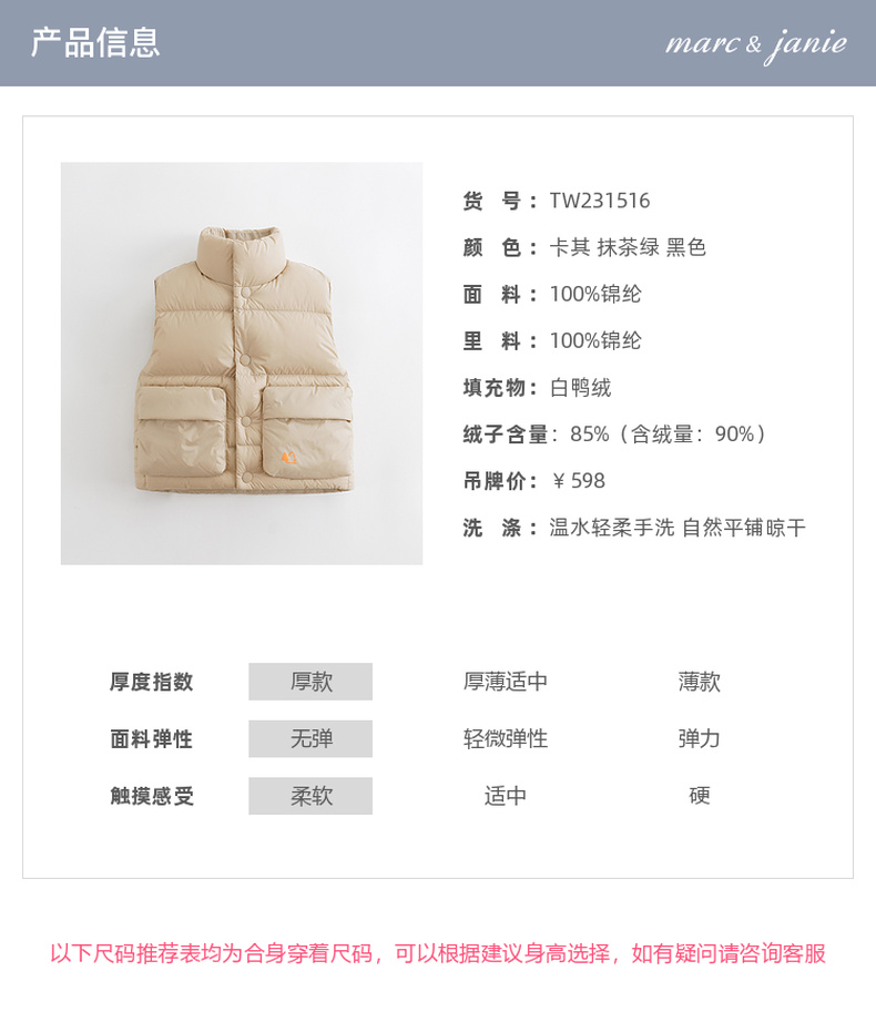 【三防】马克珍妮冬装新款男童山系户外超轻加厚羽绒服马甲231516
