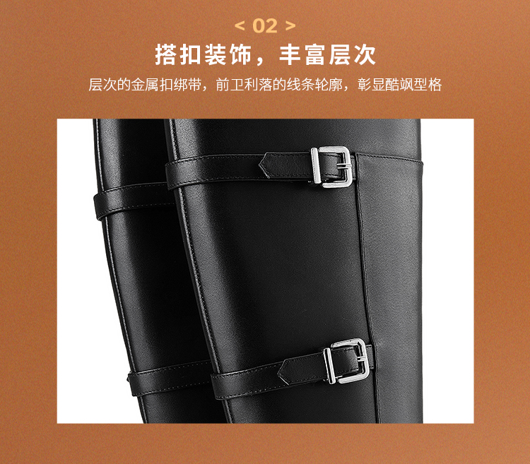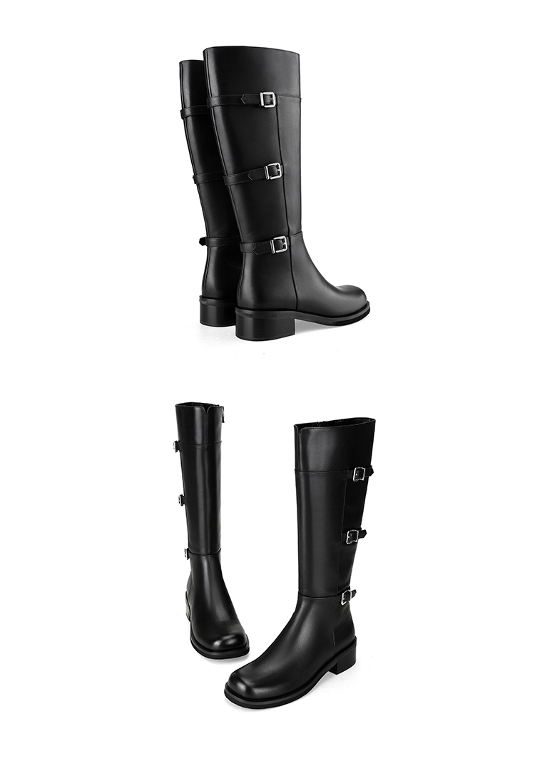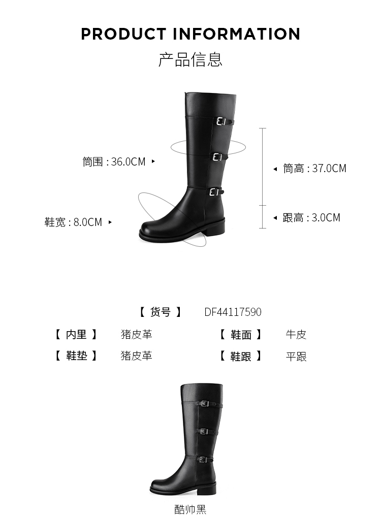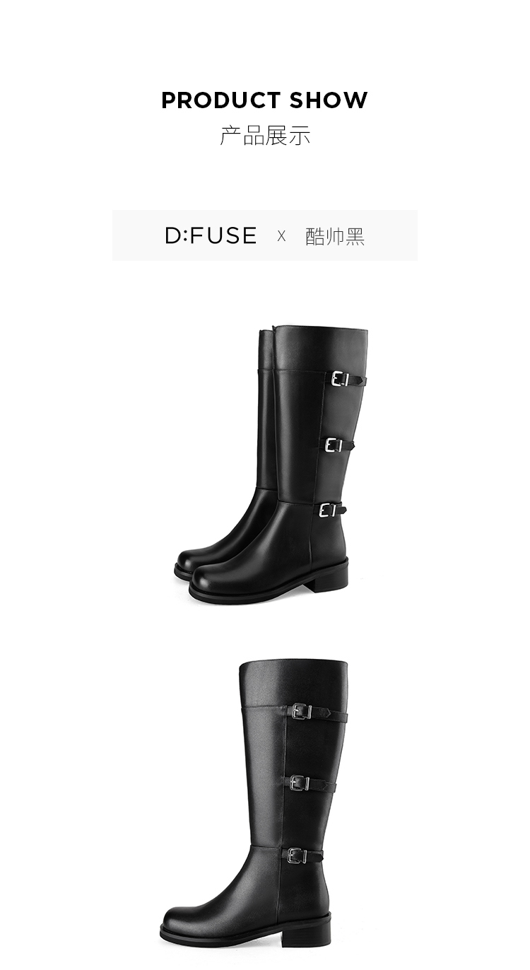 Dfuse迪芙斯2024冬季新款黑色酷飒金属扣骑士靴多条带长靴DF44117590