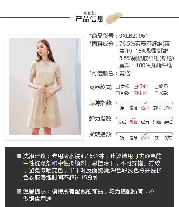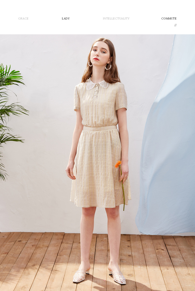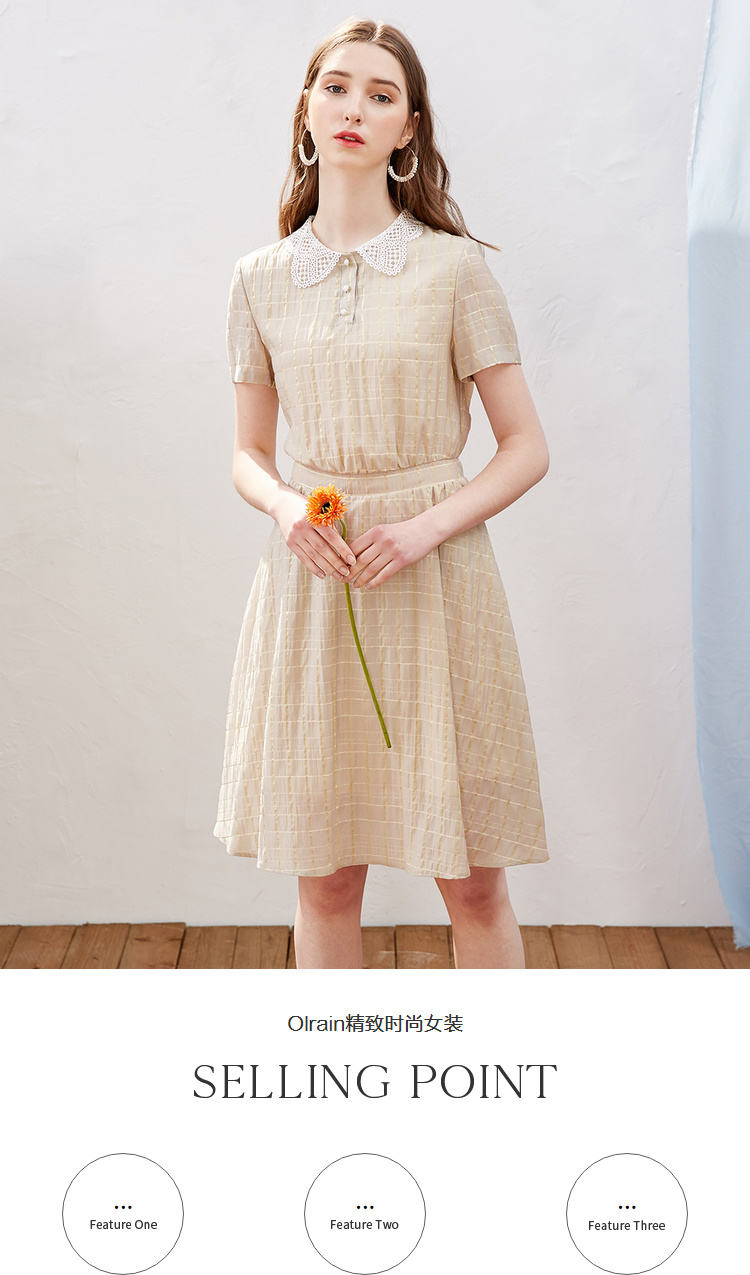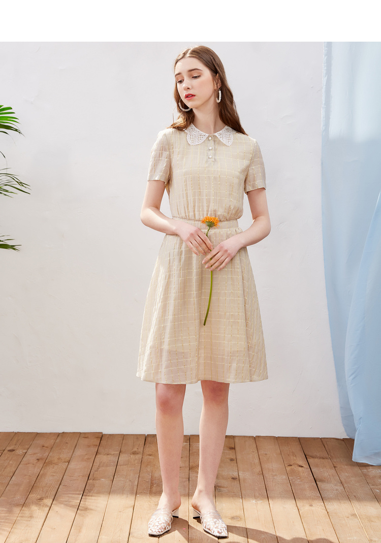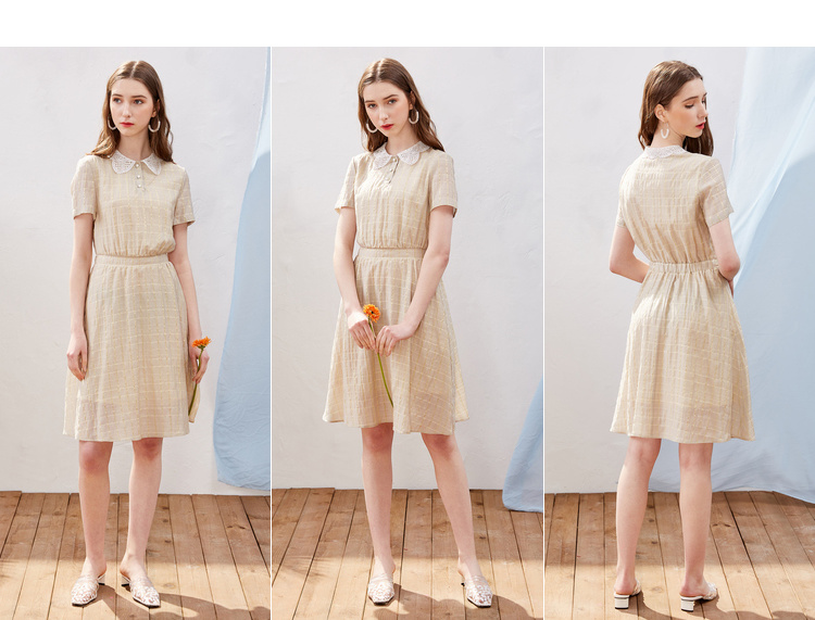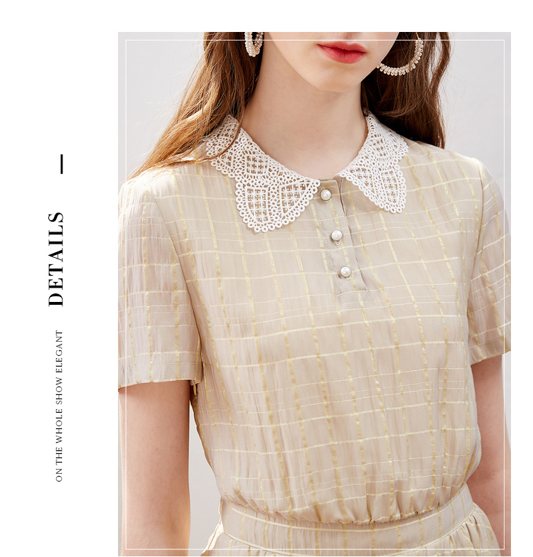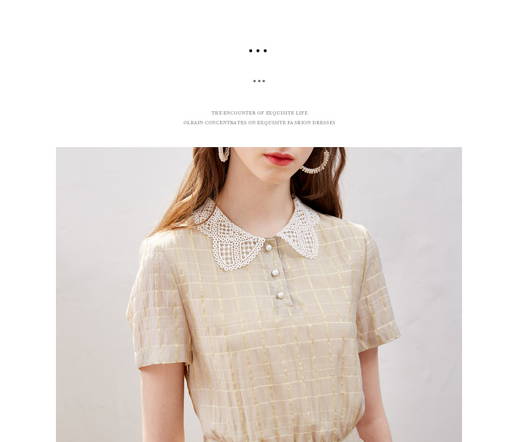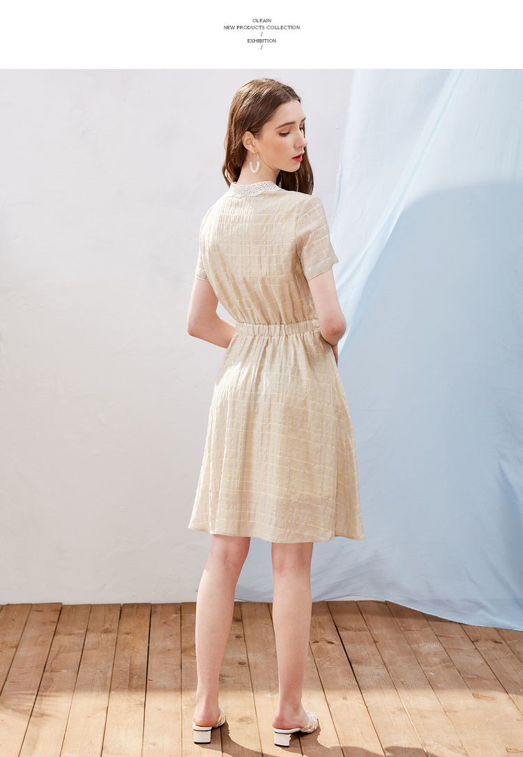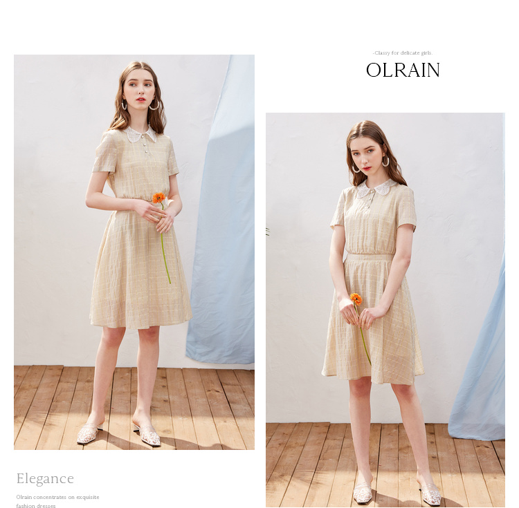 欧芮儿2019新款女装夏装polo领格子连衣裙女中长款收腰显瘦女裙子