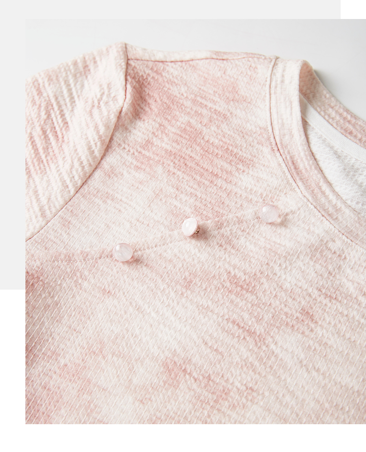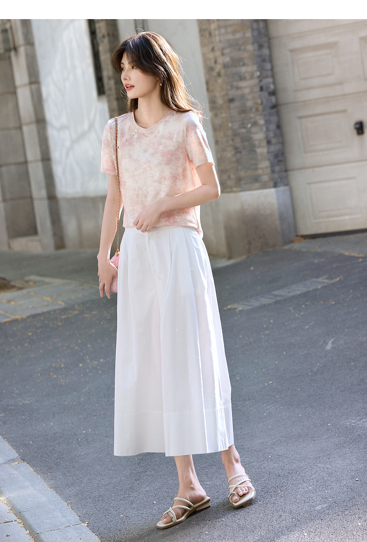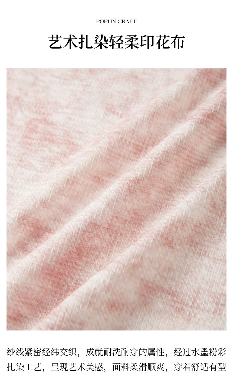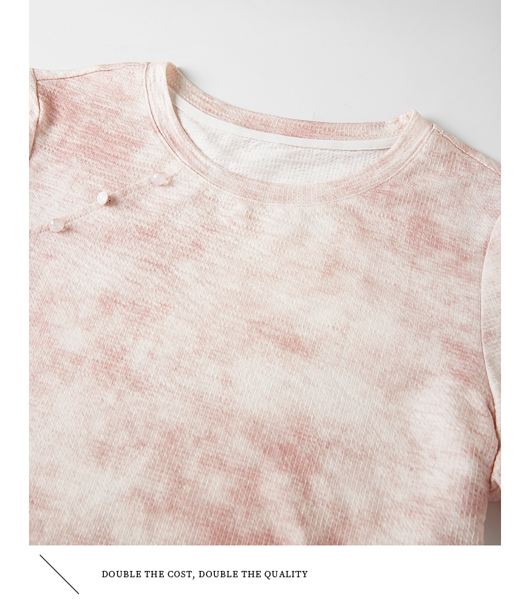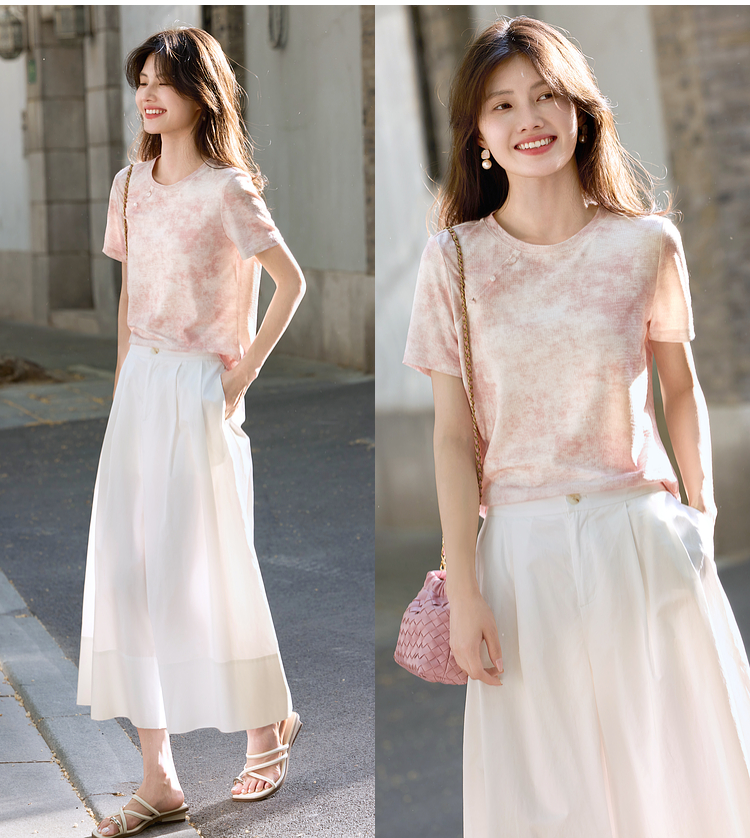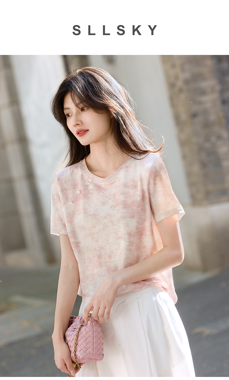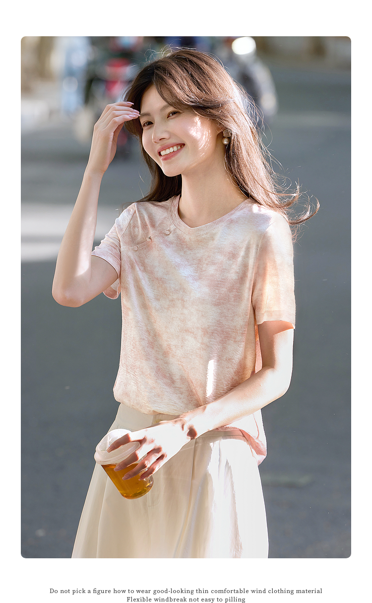 【专属特价】熙世界轻国风扎染晕染T恤女短袖2025夏新款宽松圆领独特粉色上衣