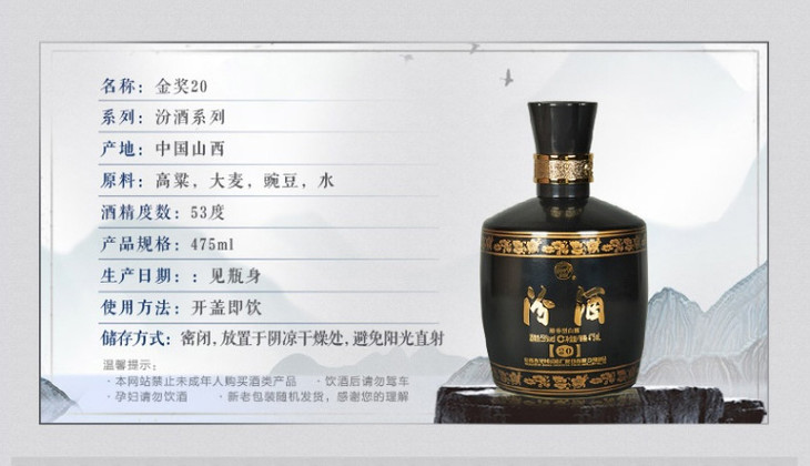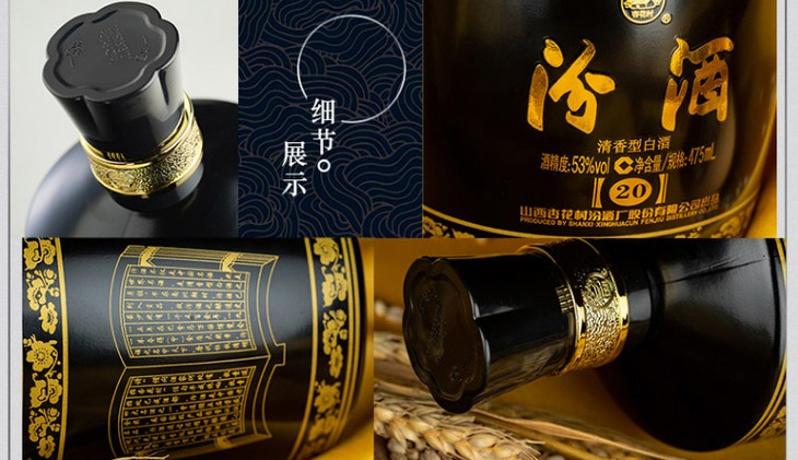 汾酒金奖(20)黑坛清香型白酒53度475ml/1瓶/2瓶