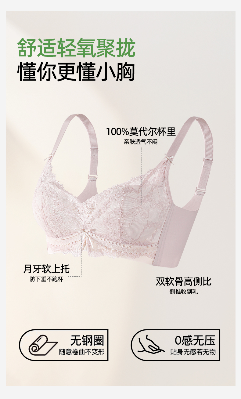 熳洁儿 洛可可蕾丝小胸聚拢文胸中薄杯莫代尔养护杯26261517