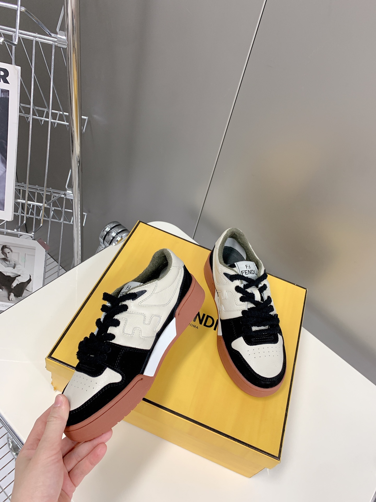 【独家开模】FENDI 芬迪Match 低帮休闲板鞋 直击心脏 ! 鞋型设计非常简约,休闲感十足,柔和的颜色可以让穿搭融合更协调,绒面皮革更复古,看上去很柔软,舒适度超高,也超级百搭
