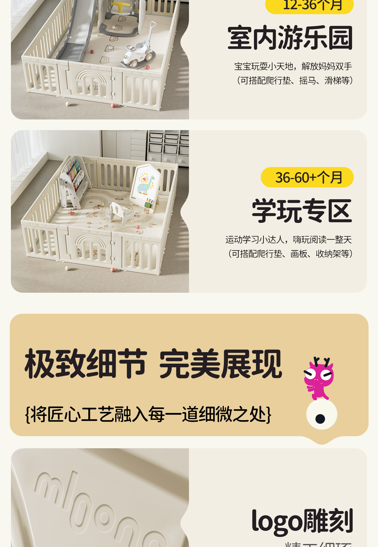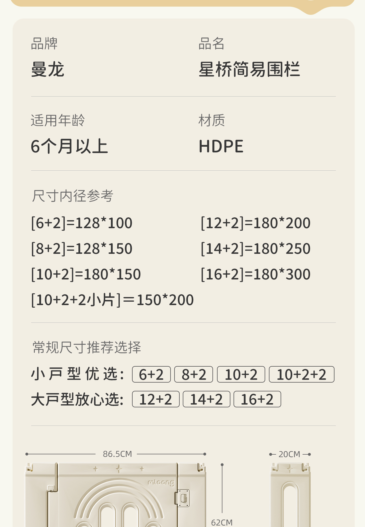 *【曼龙】mloong星桥简易游戏围栏宝宝防护栏客厅爬爬垫婴儿童地上爬行垫室内【部分链接随机赠送海洋球40个左右】