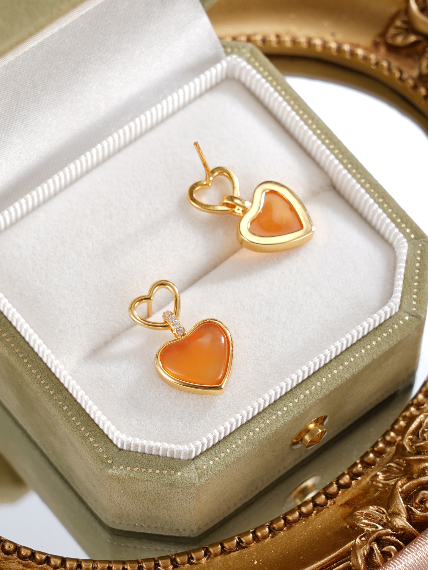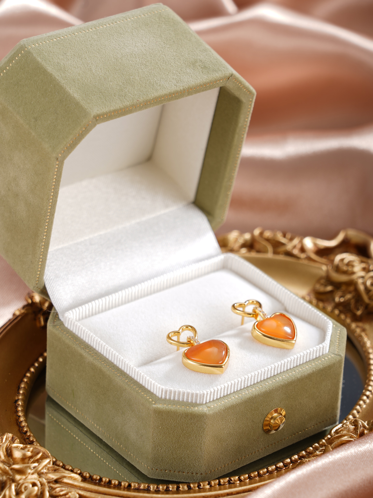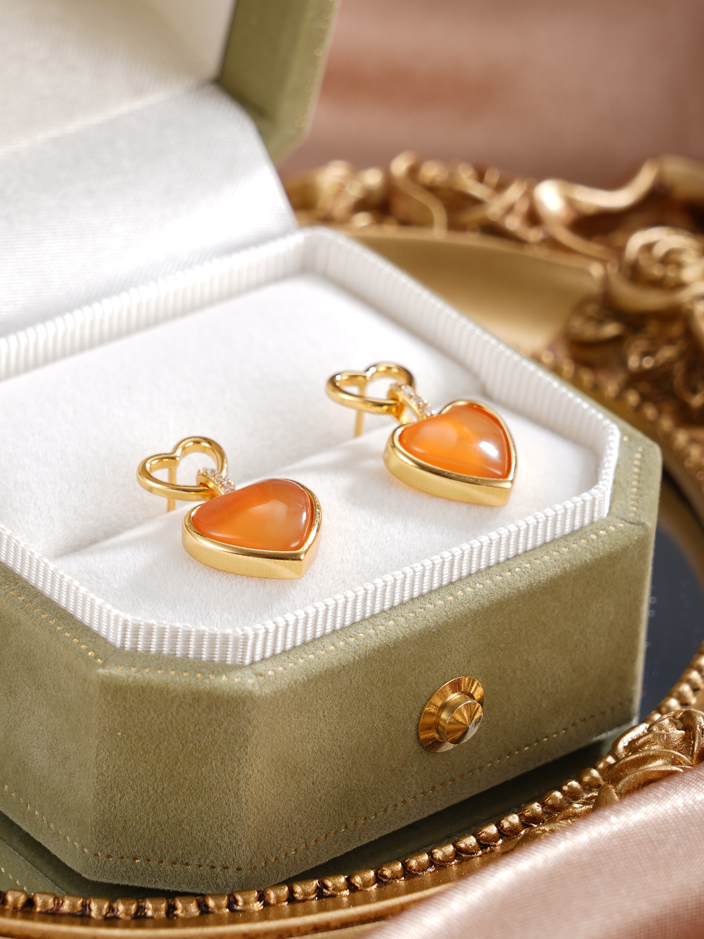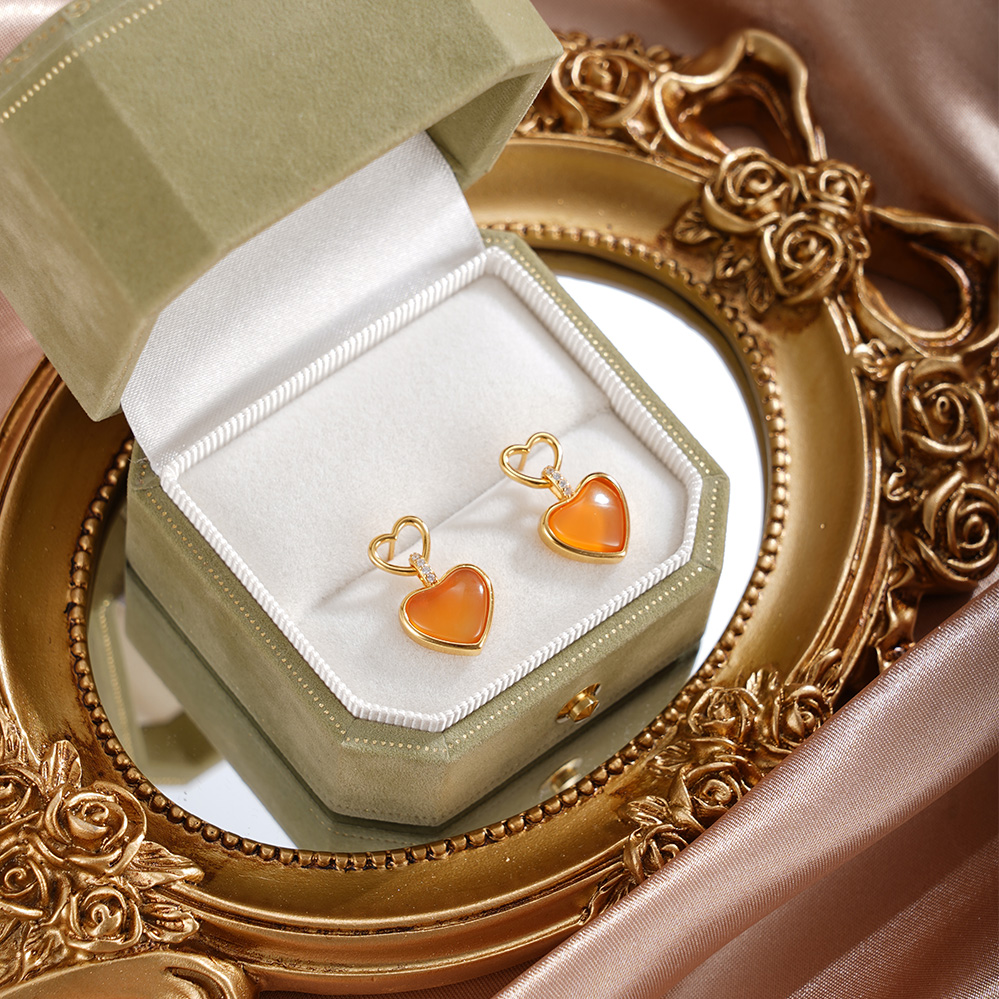 子佩集【灵珀牵缘】银S925玛瑙耳钉【SGE0595002】11.8mm爱心镀金2601