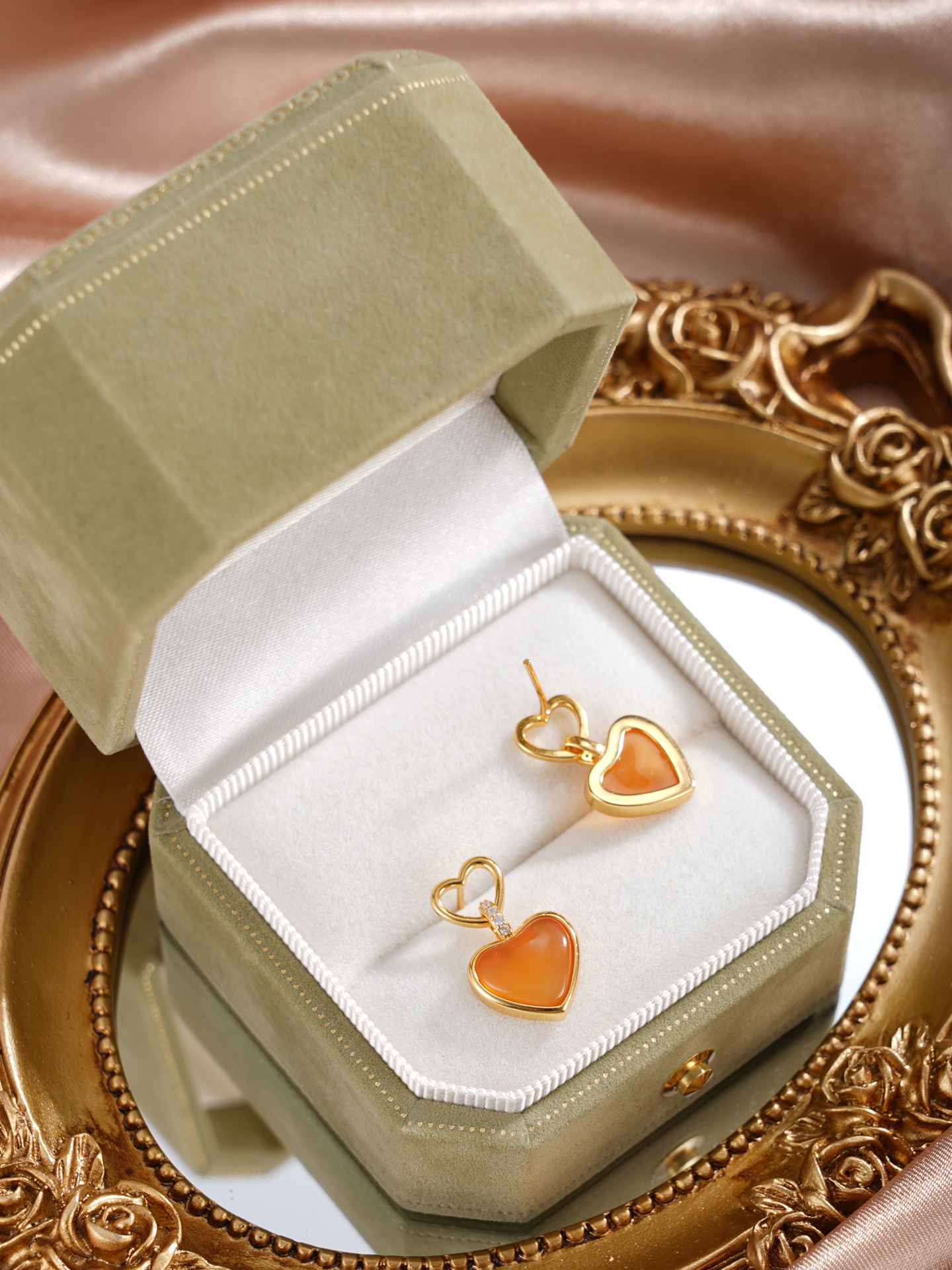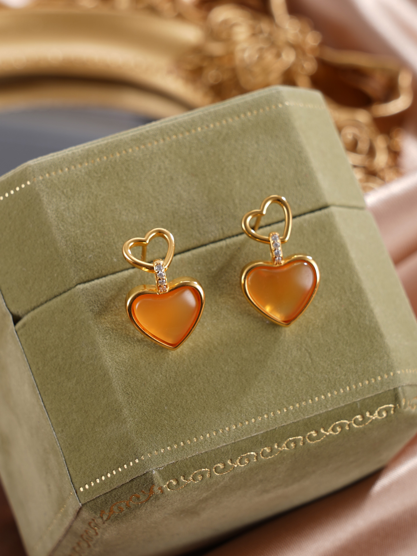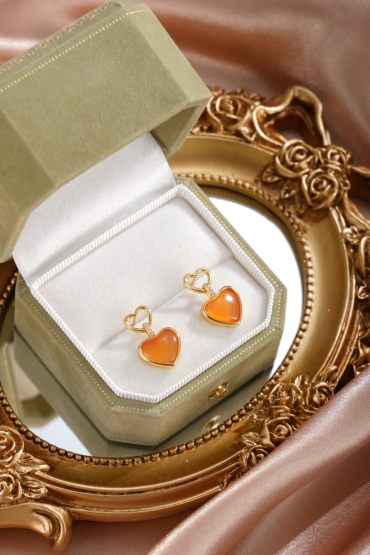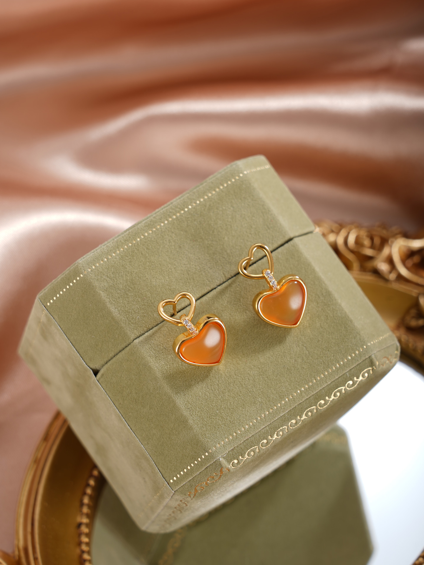 子佩集【灵珀牵缘】银S925玛瑙耳钉【SGE0595002】11.8mm爱心镀金2601