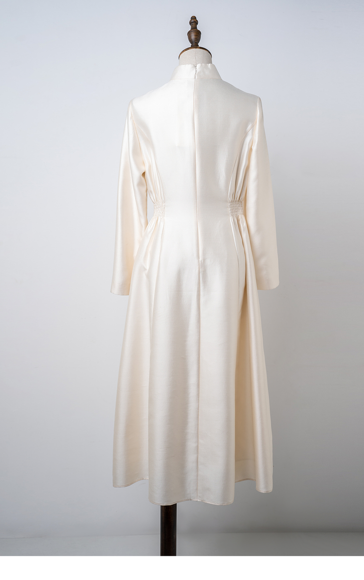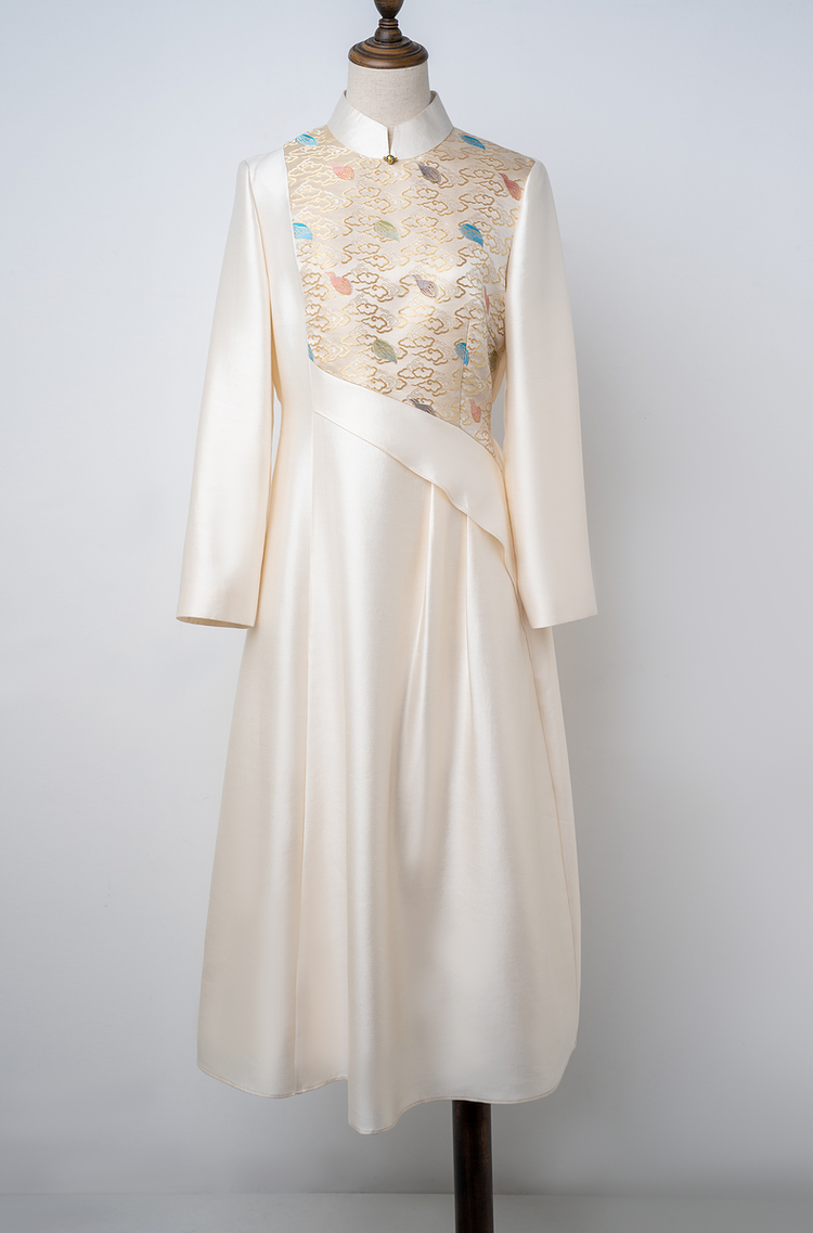 吉祥衣家新中式国风2025新款白色气质修身璇玑云佩真丝连衣裙