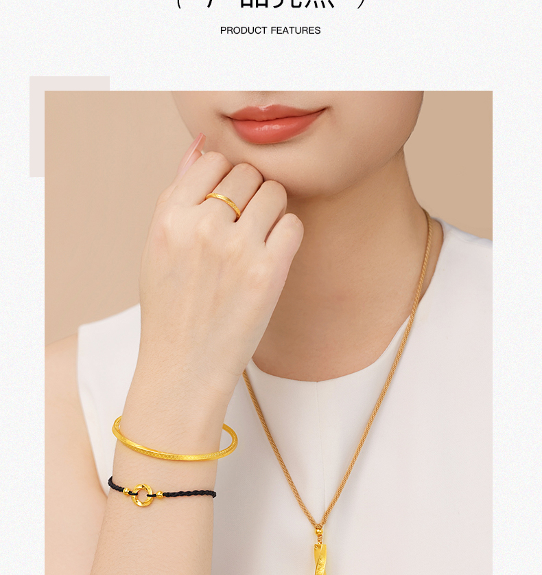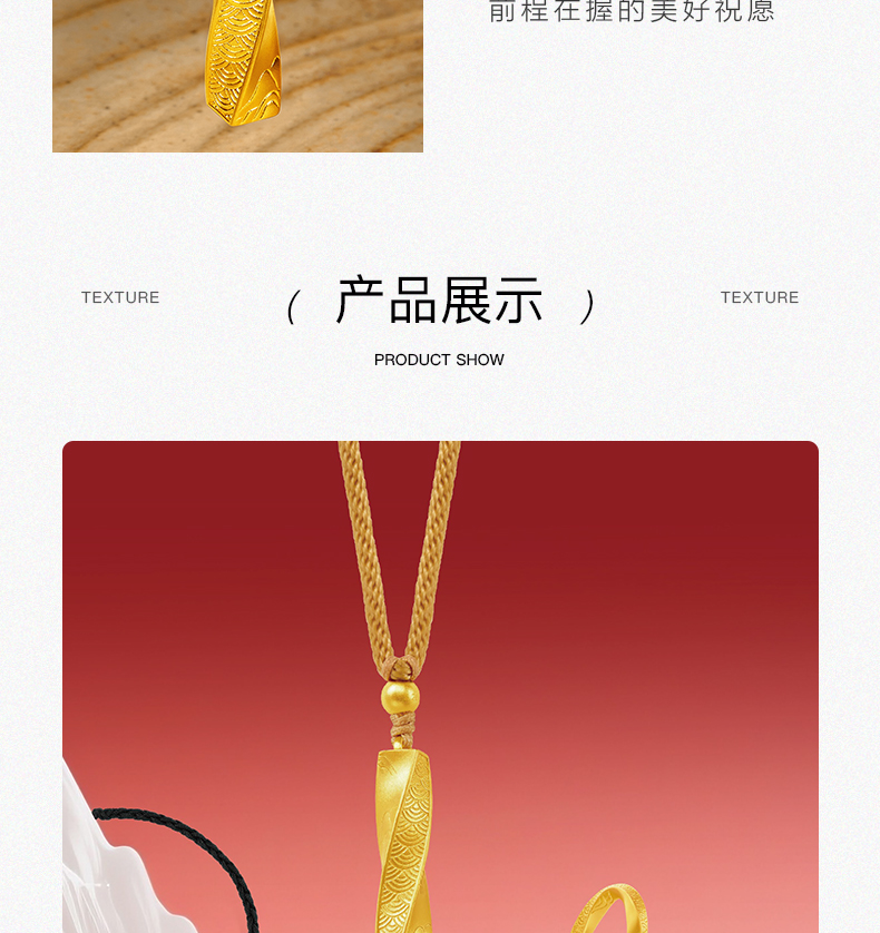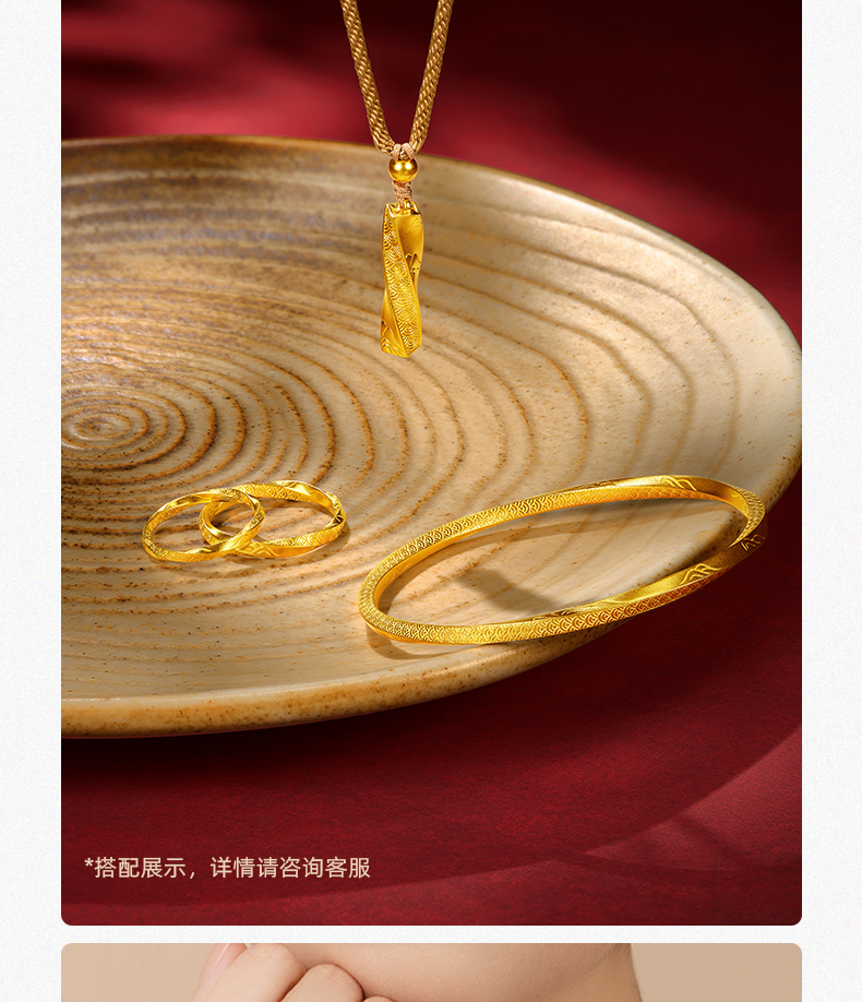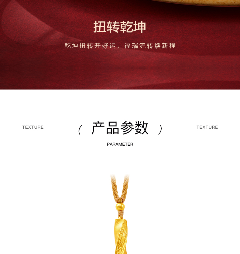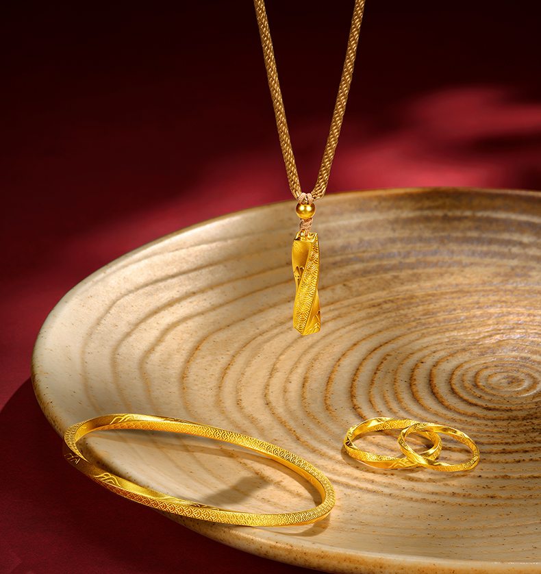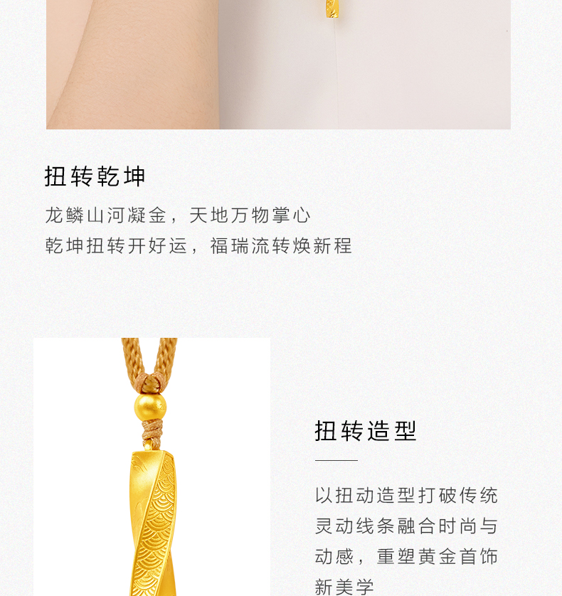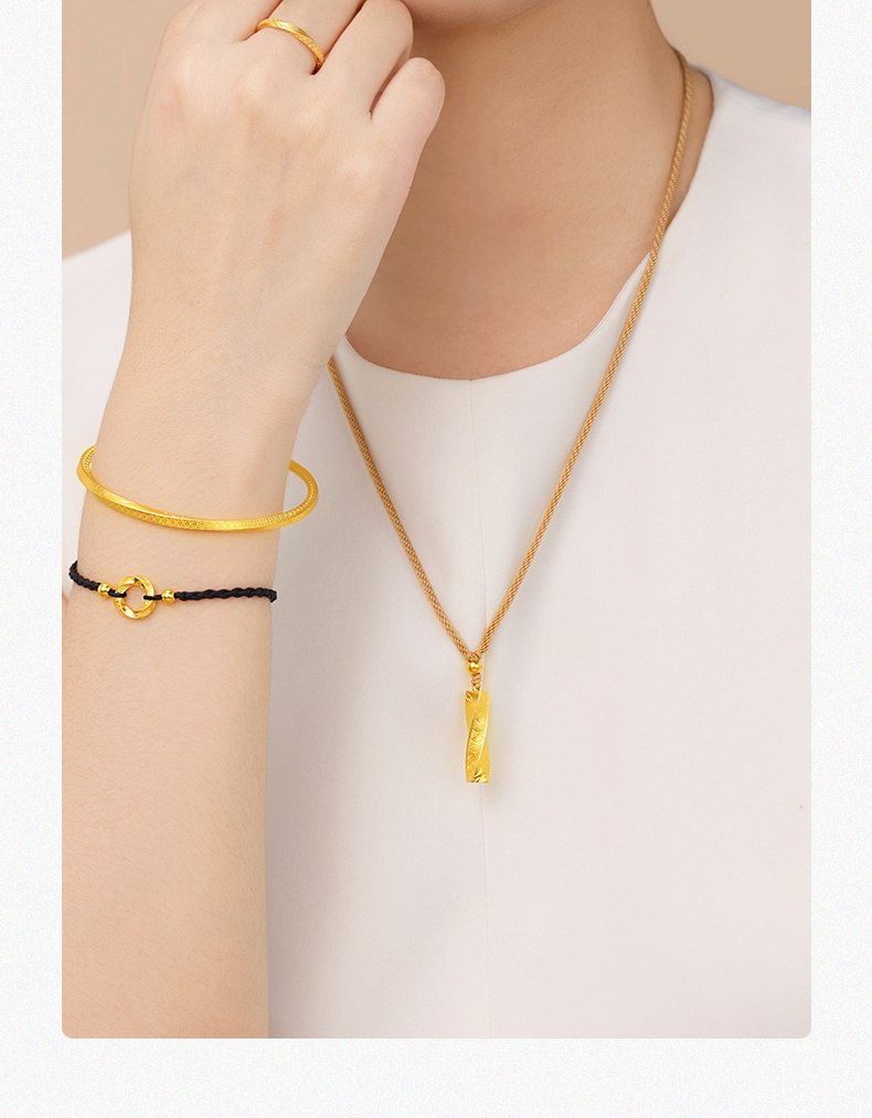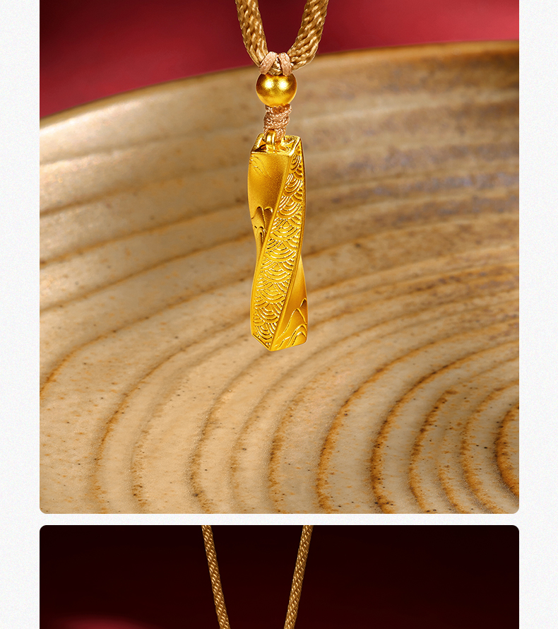 「扭转乾坤」黄金挂坠 莫比乌斯吊坠足金编绳柱子项链