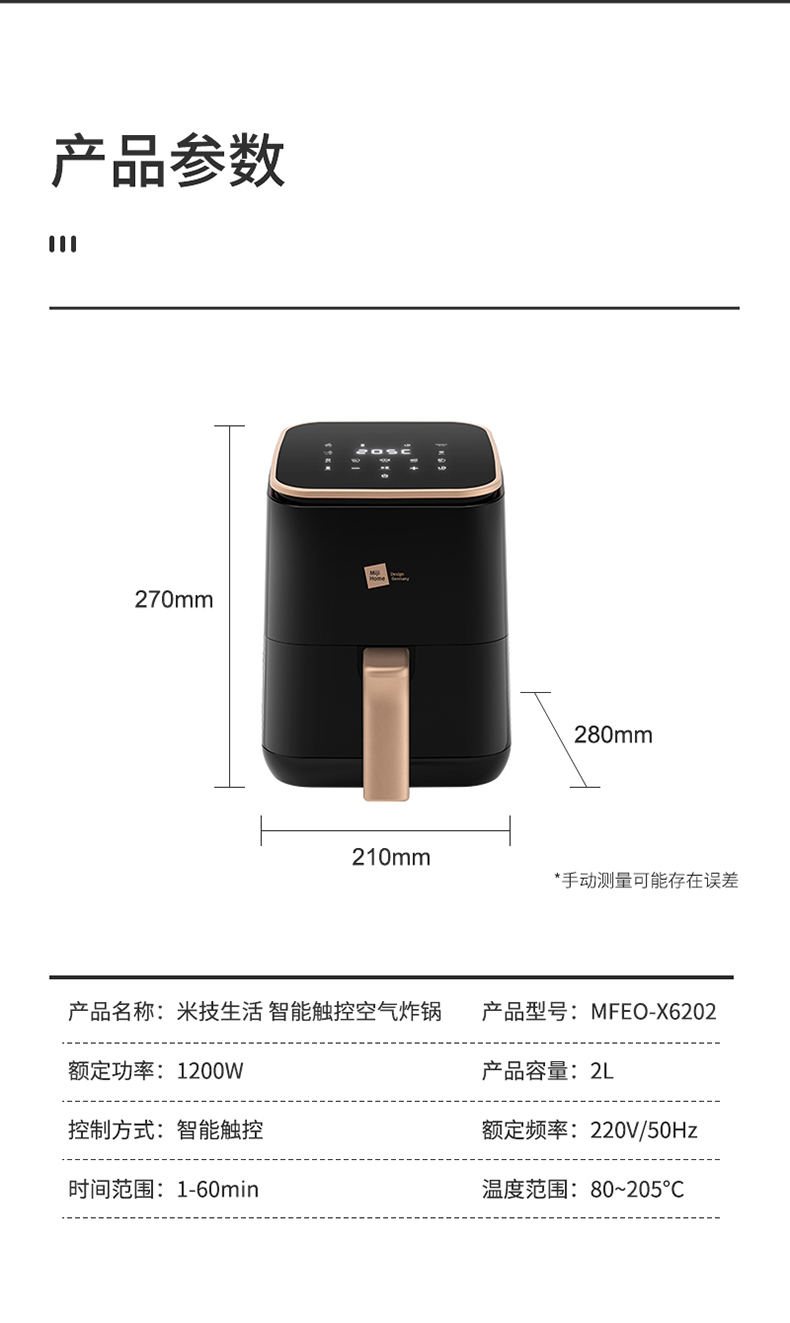 Miji德国米技官方旗舰店MFEO-X6202触摸屏空气炸锅
