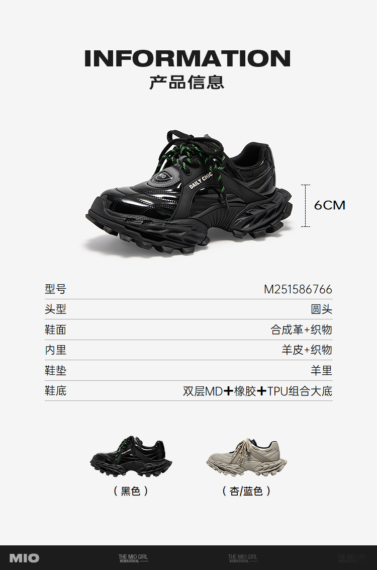MIO米奥老爹鞋女春季新款机甲怪兽厚底增高漆皮时尚休闲单鞋M251586766