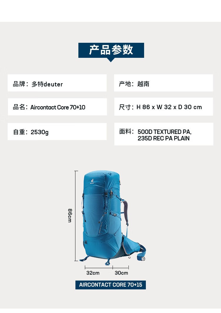 德国多特deuter征途Aircontact core多日徒步露营登山重装双肩包