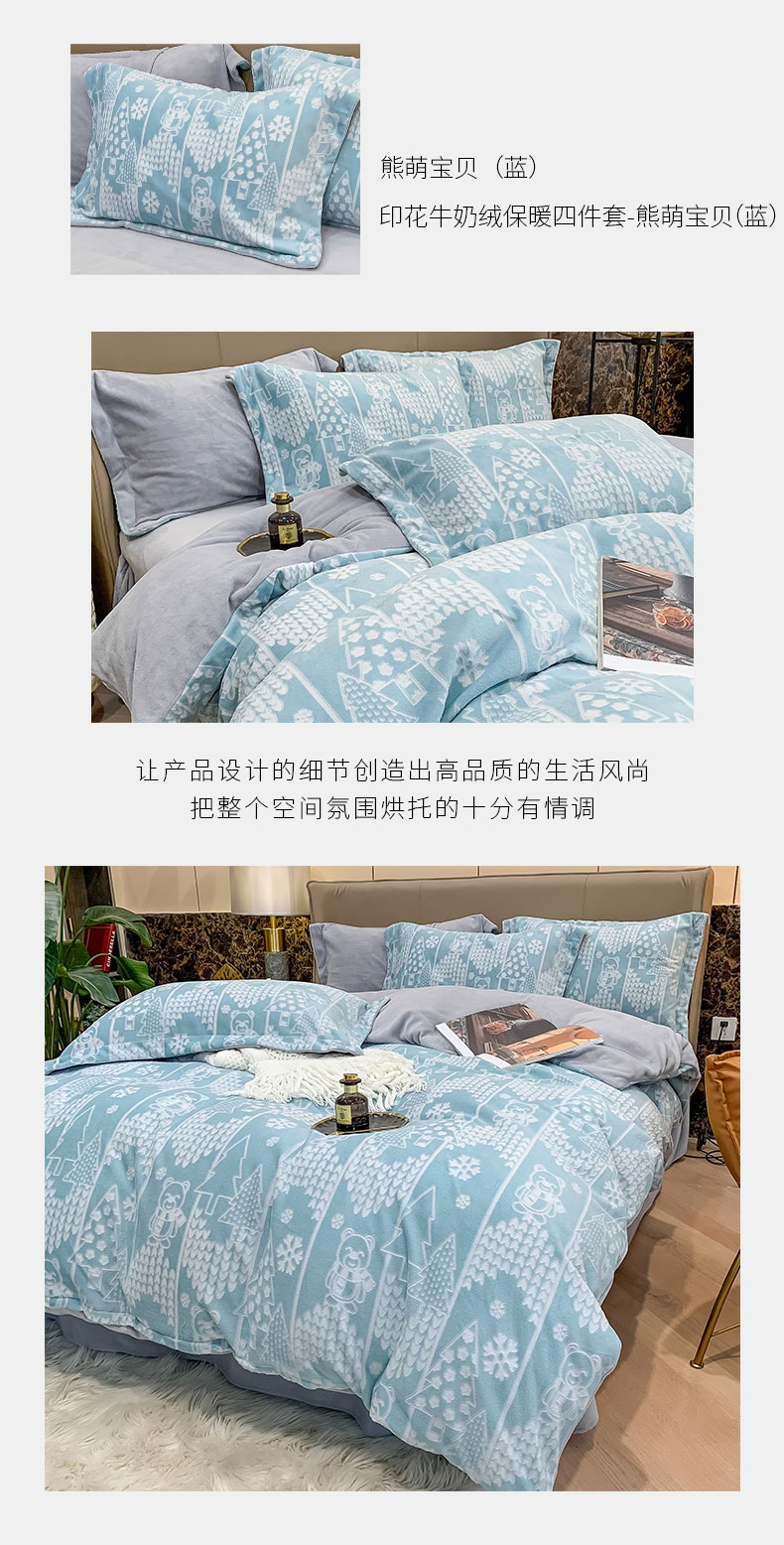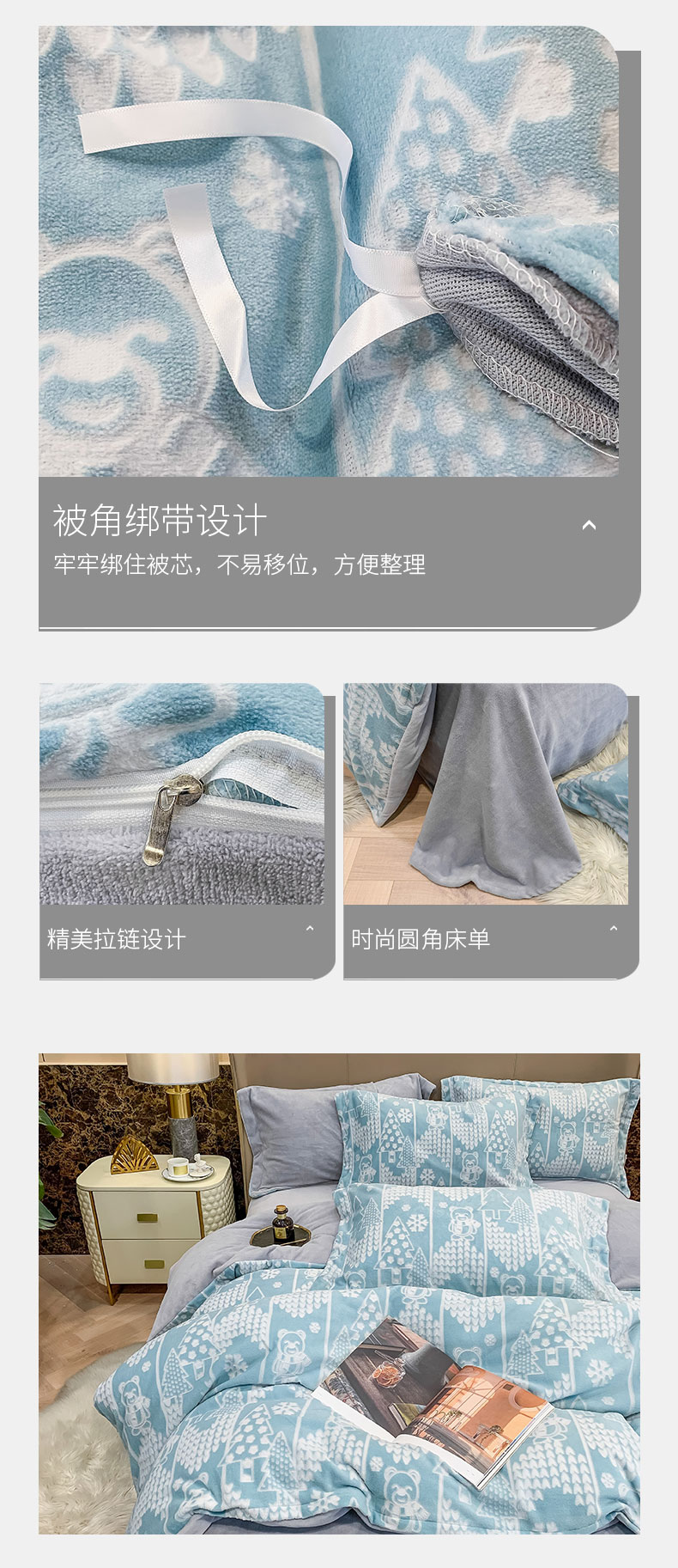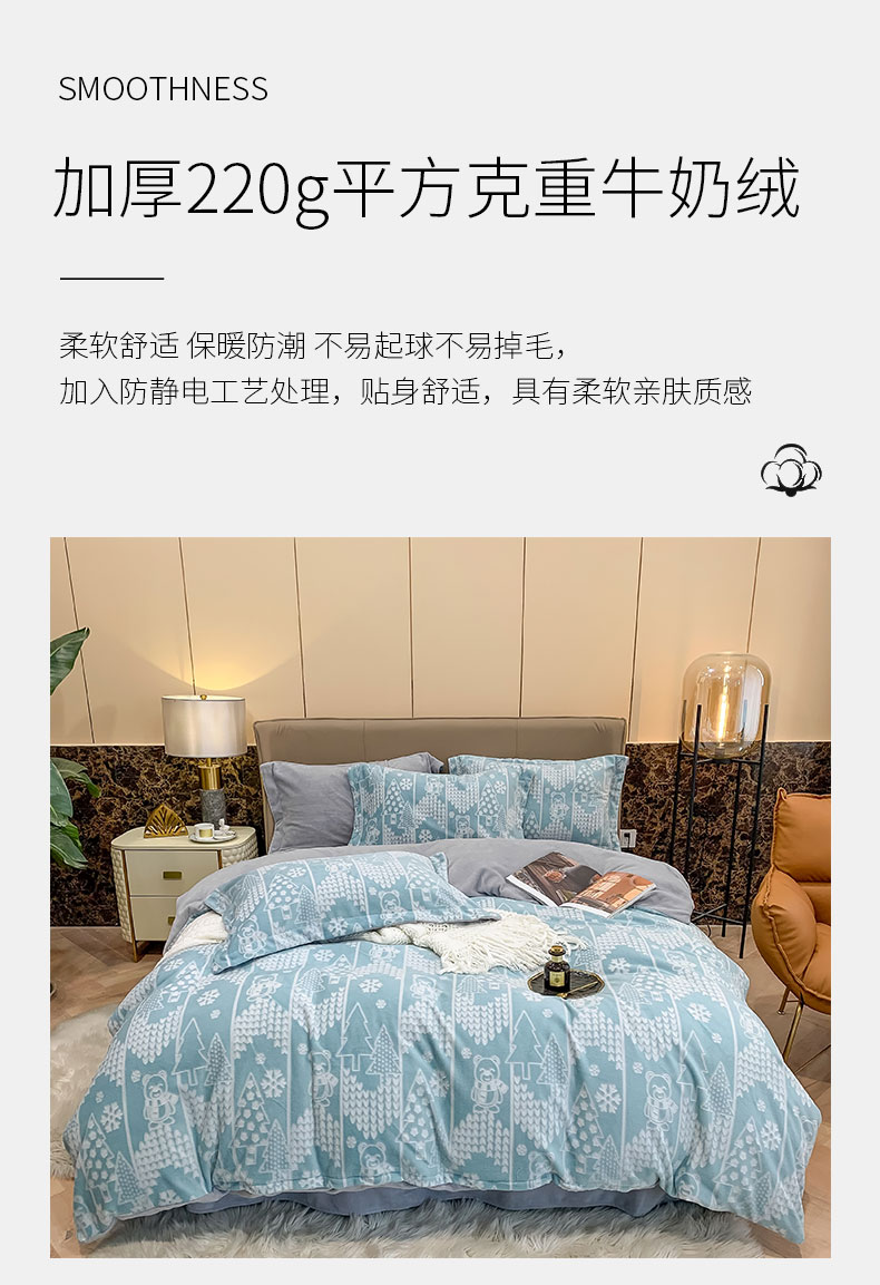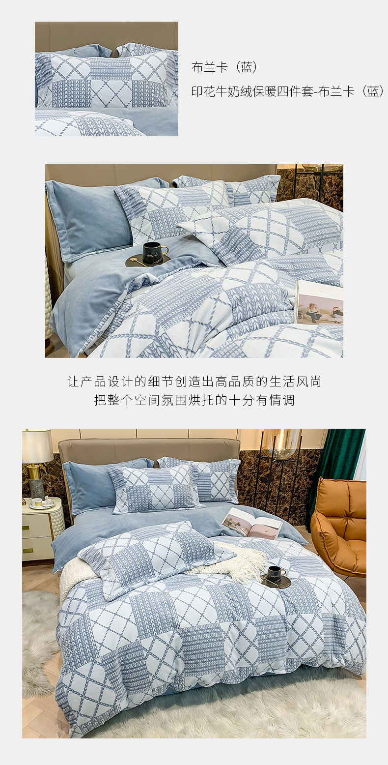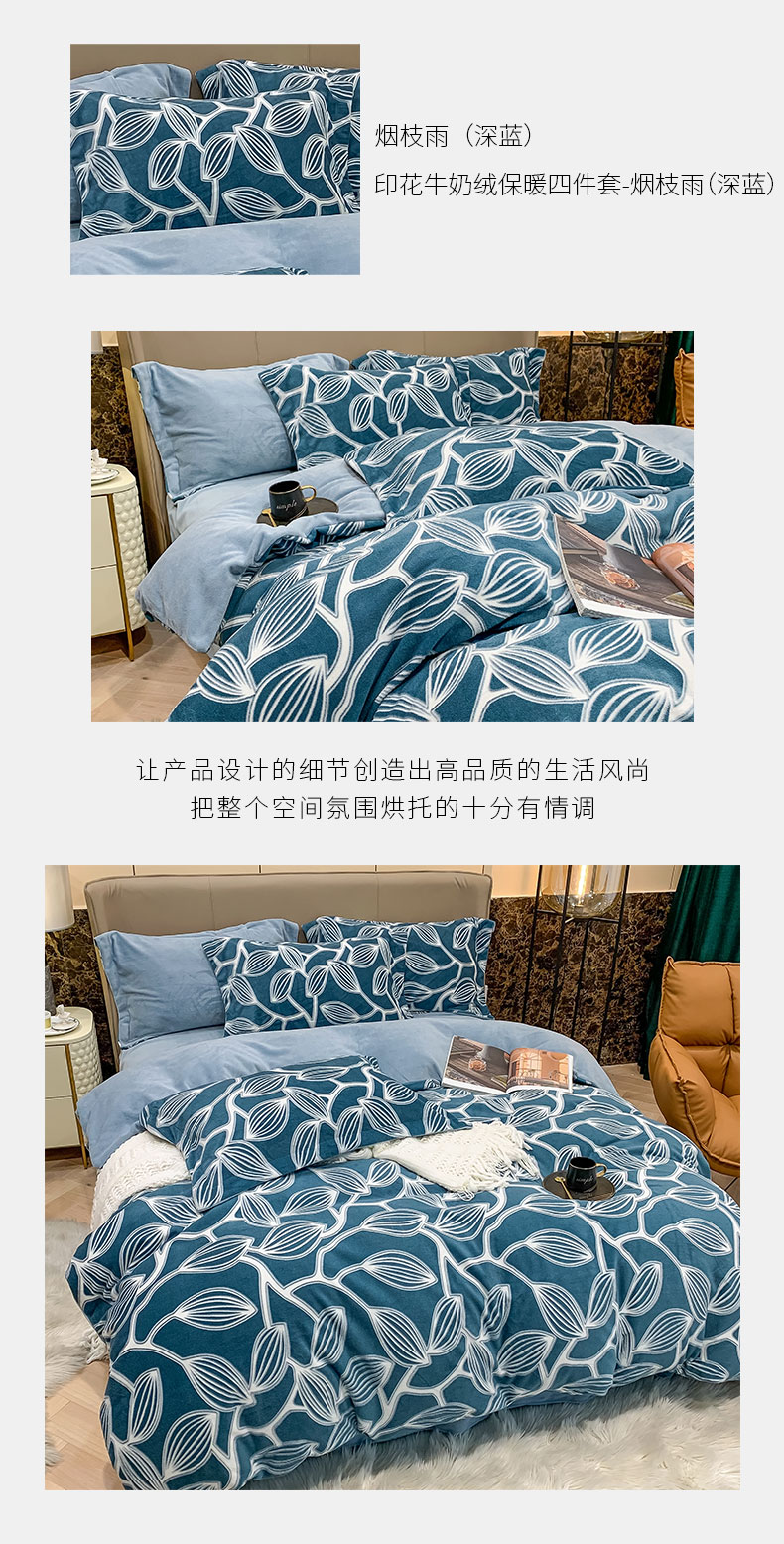 秋冬印花牛奶绒保暖四件套 加厚防静电工艺处理 保暖绒被套床单