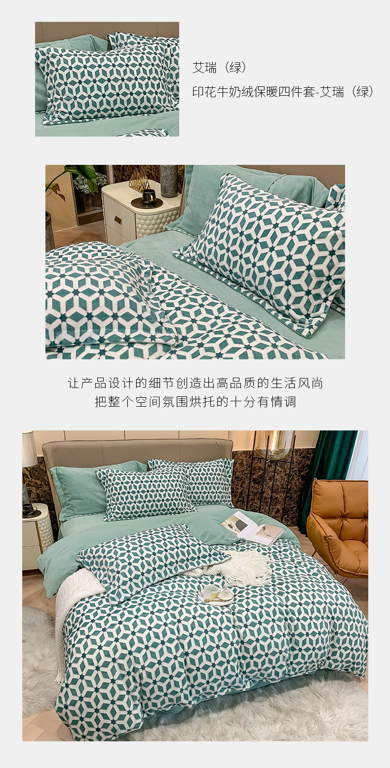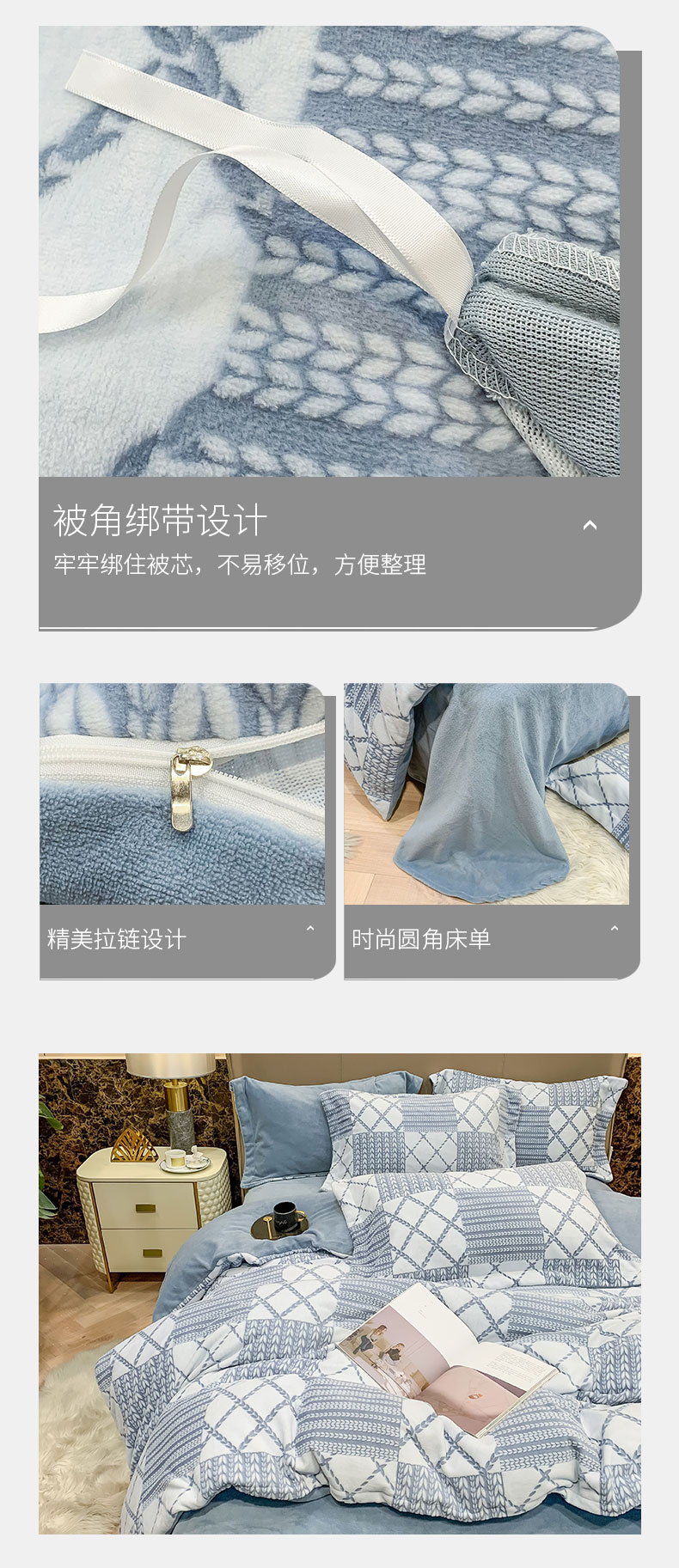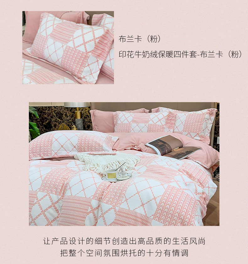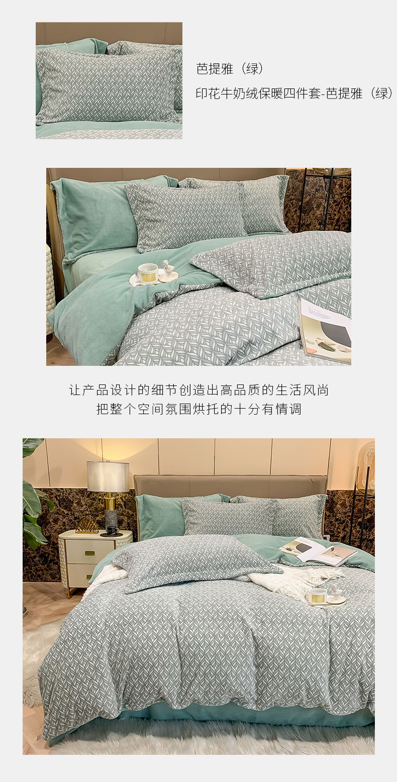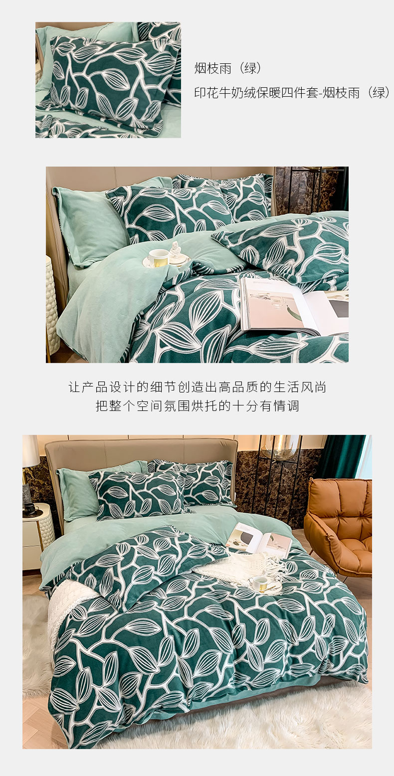 秋冬印花牛奶绒保暖四件套 加厚防静电工艺处理 保暖绒被套床单