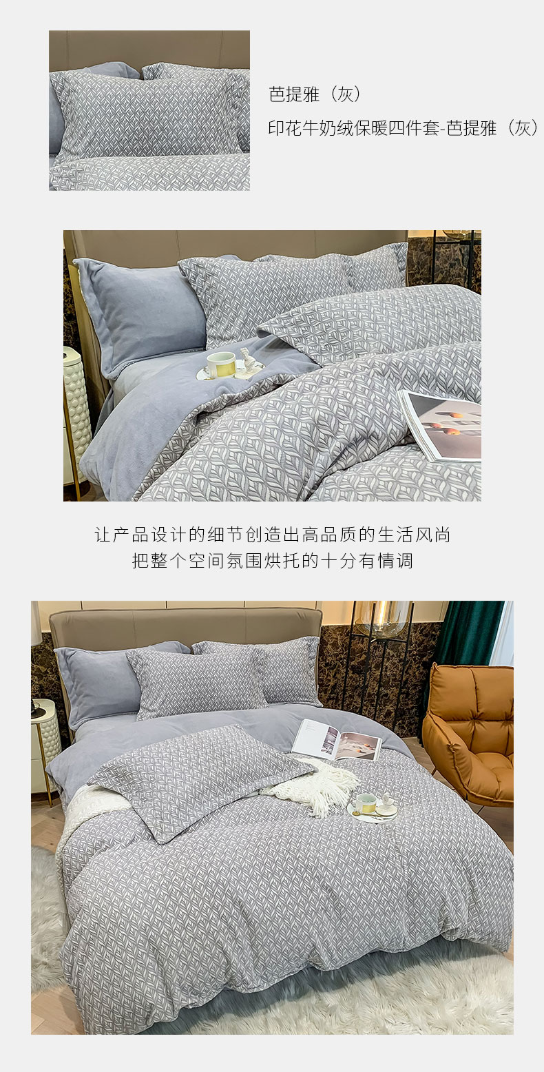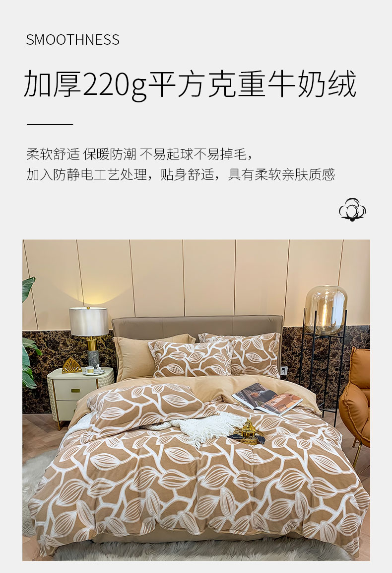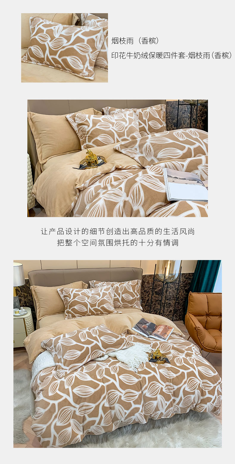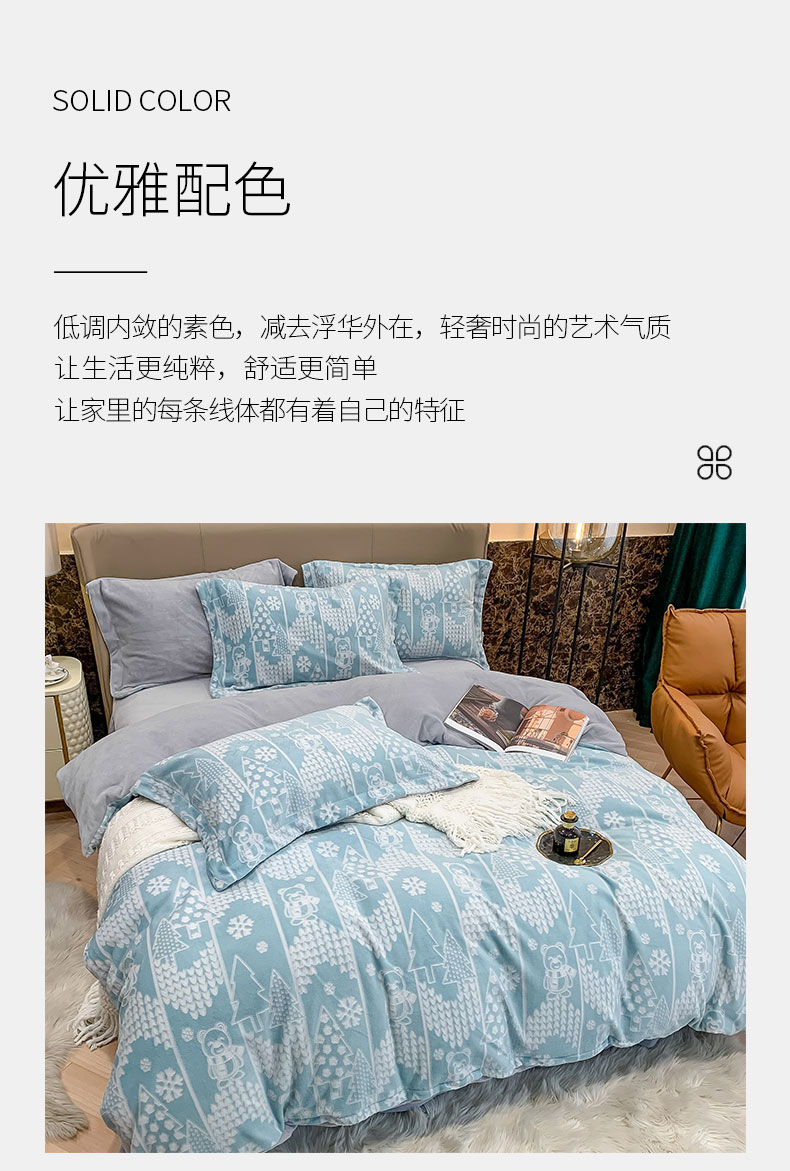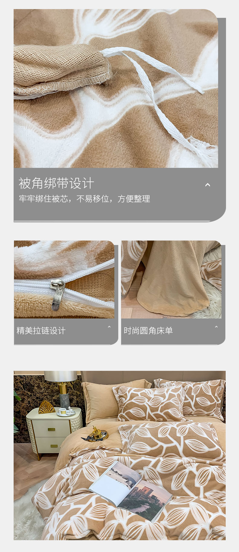 秋冬印花牛奶绒保暖四件套 加厚防静电工艺处理 保暖绒被套床单